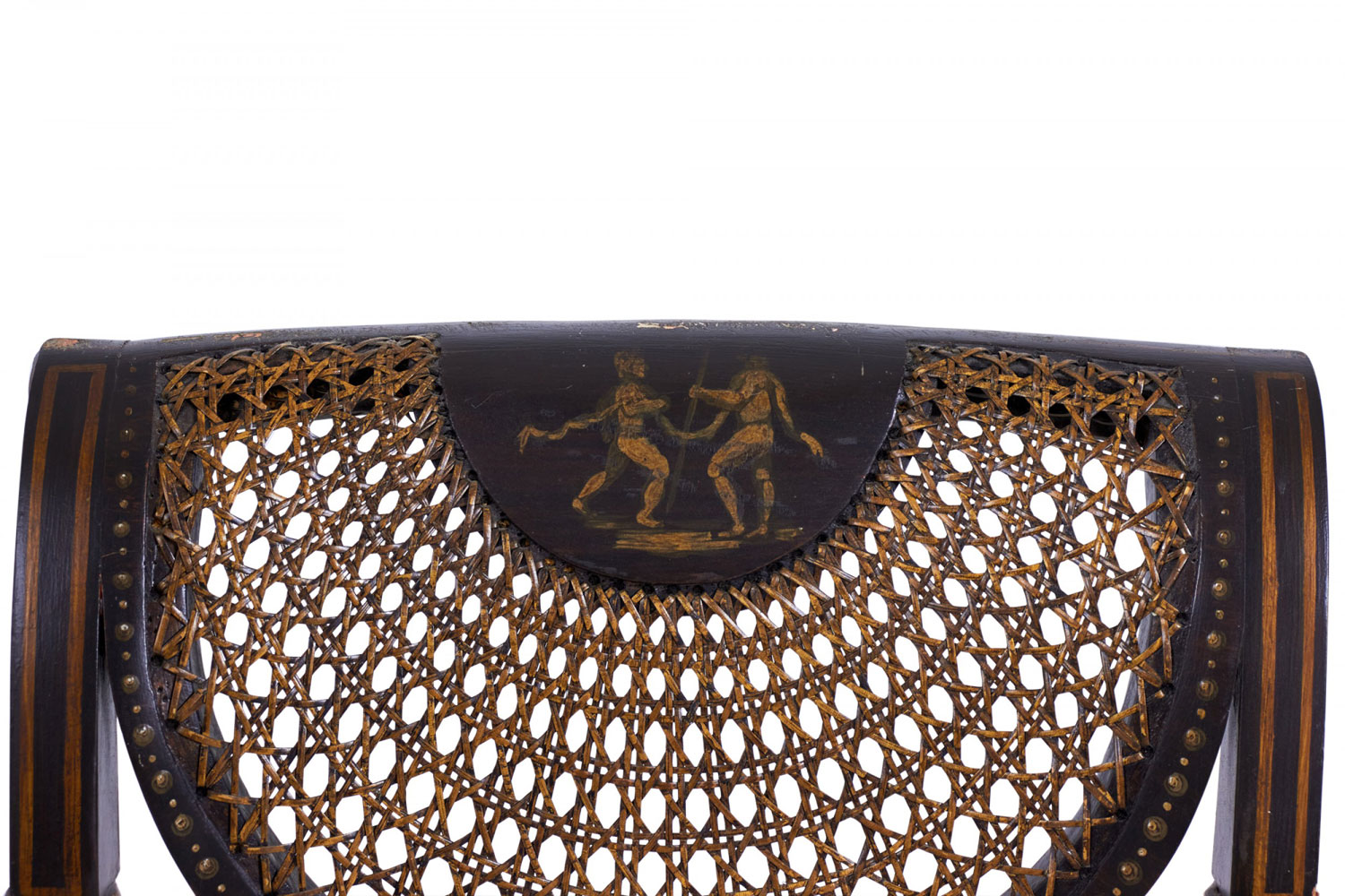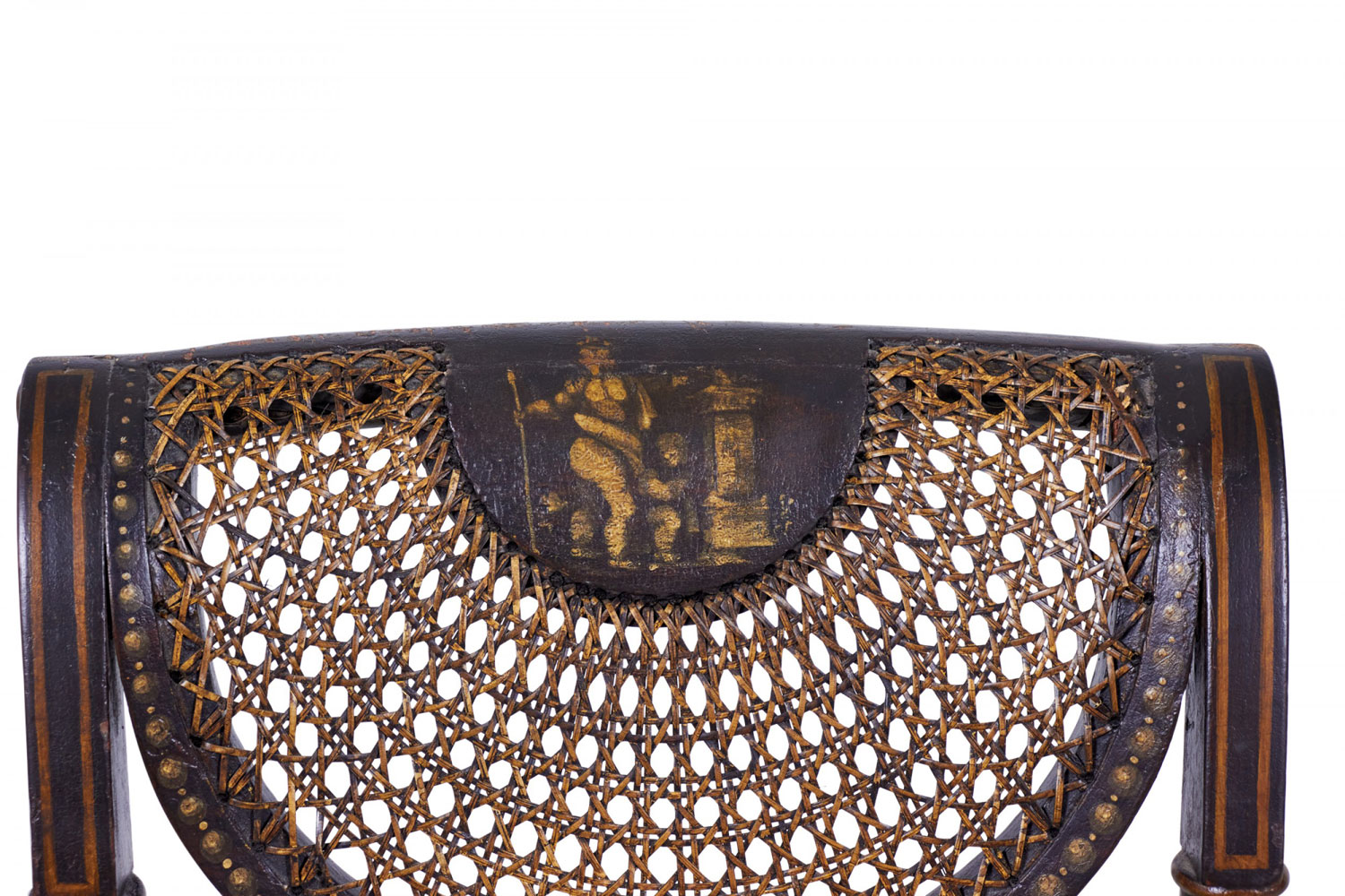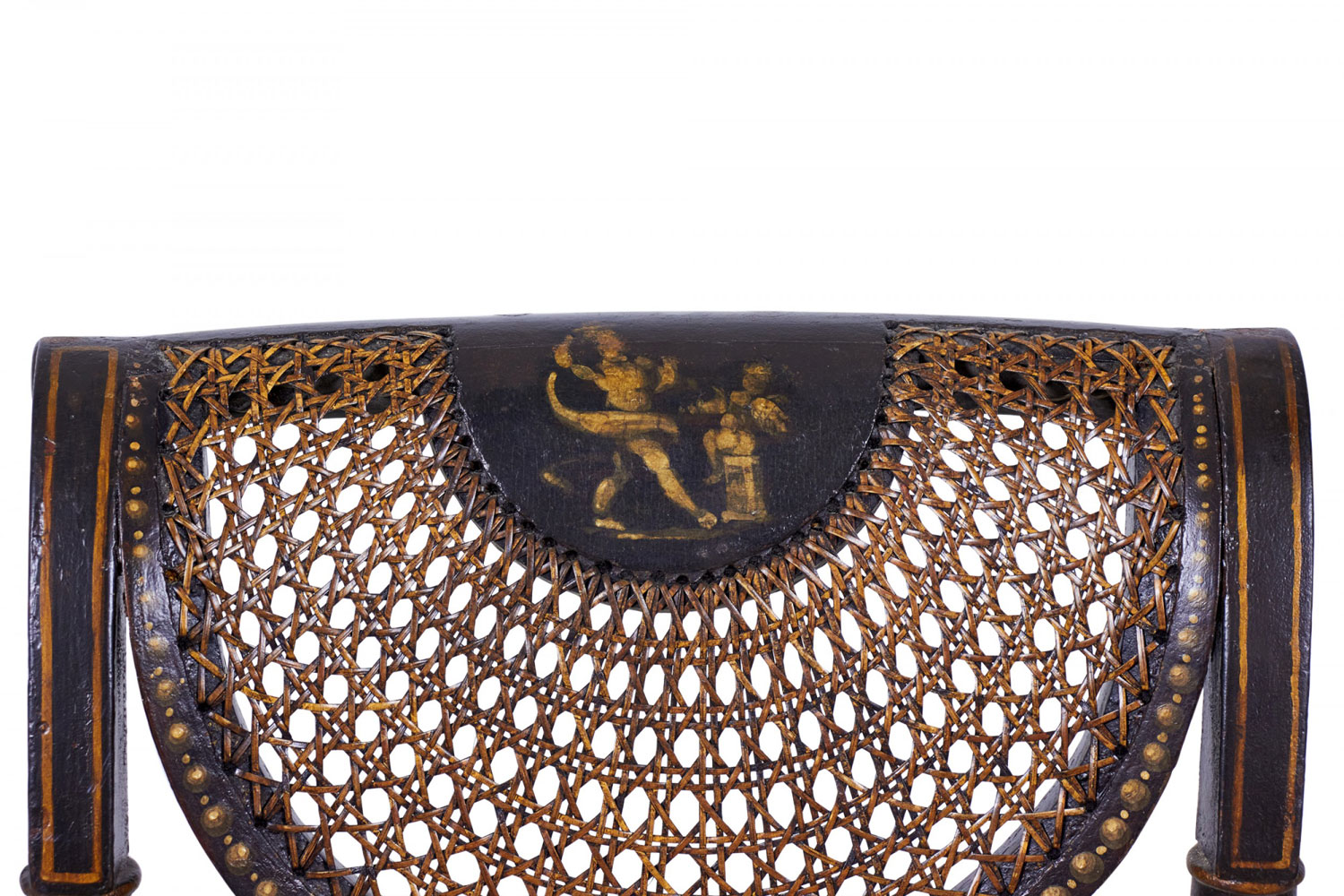 Style: English Materials & Techniques: Caning, painted, wood Category: Seating Good; Wear consistent with age and use