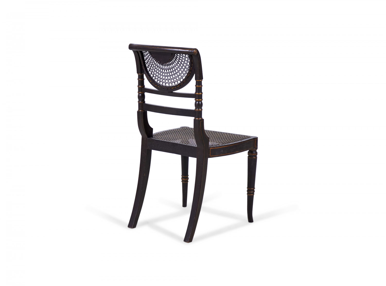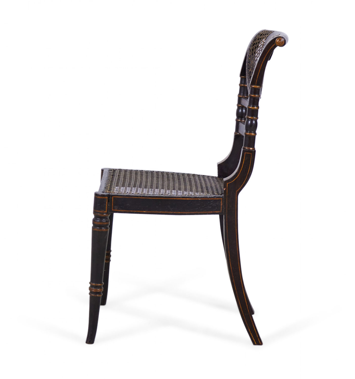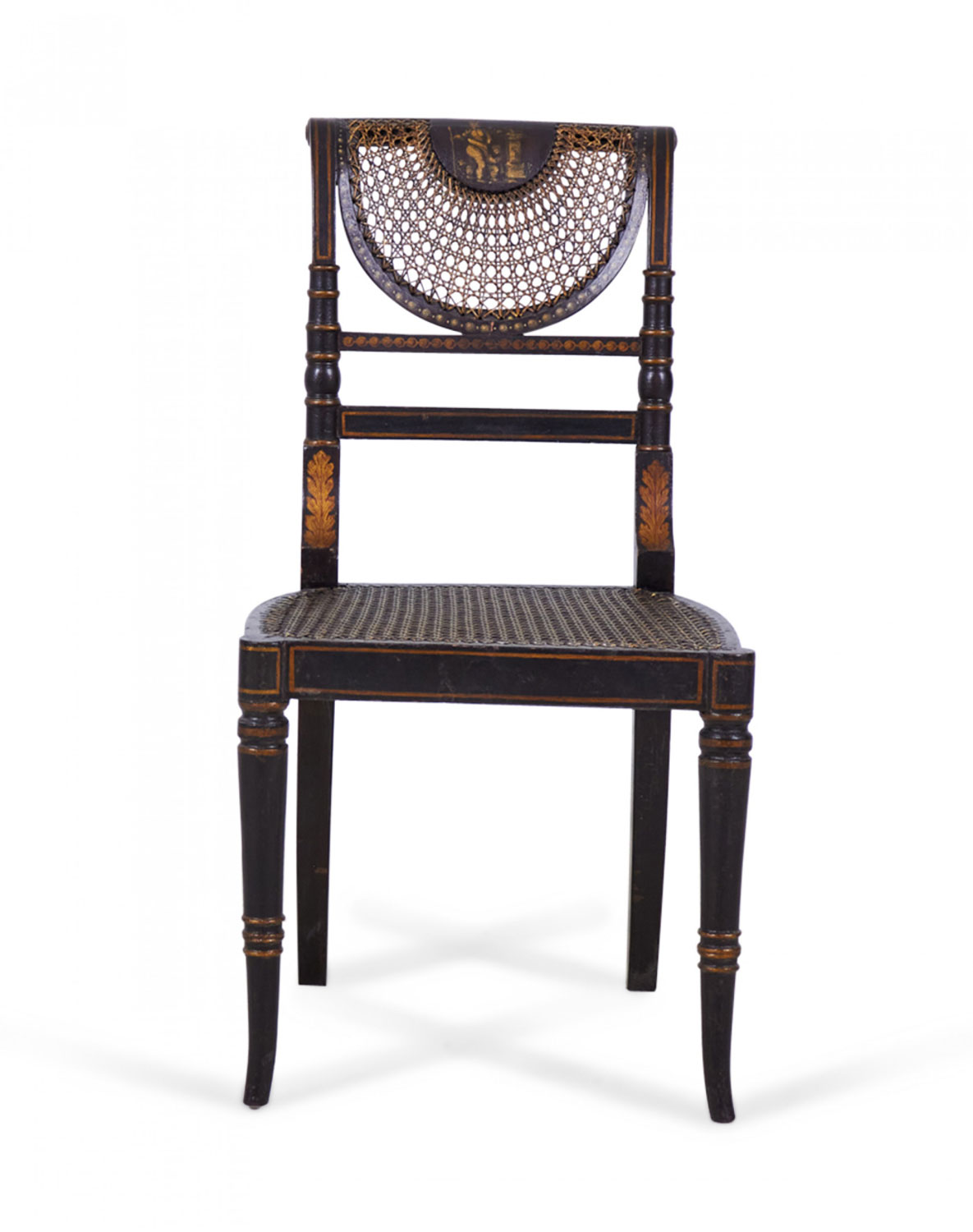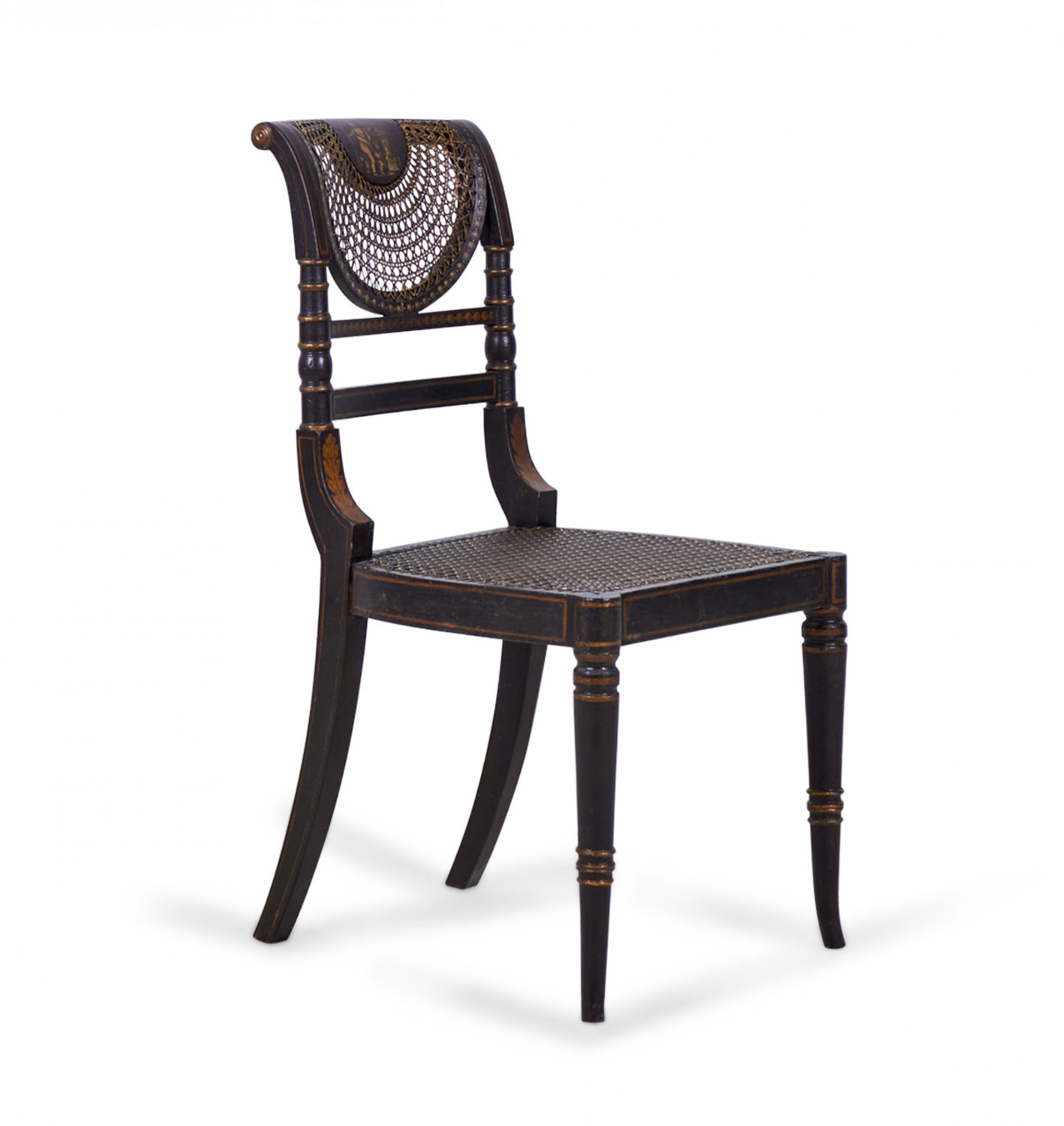 Set of 4 English Regency Style Black and Gold Painted Cane Seat Side Chairs