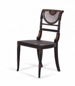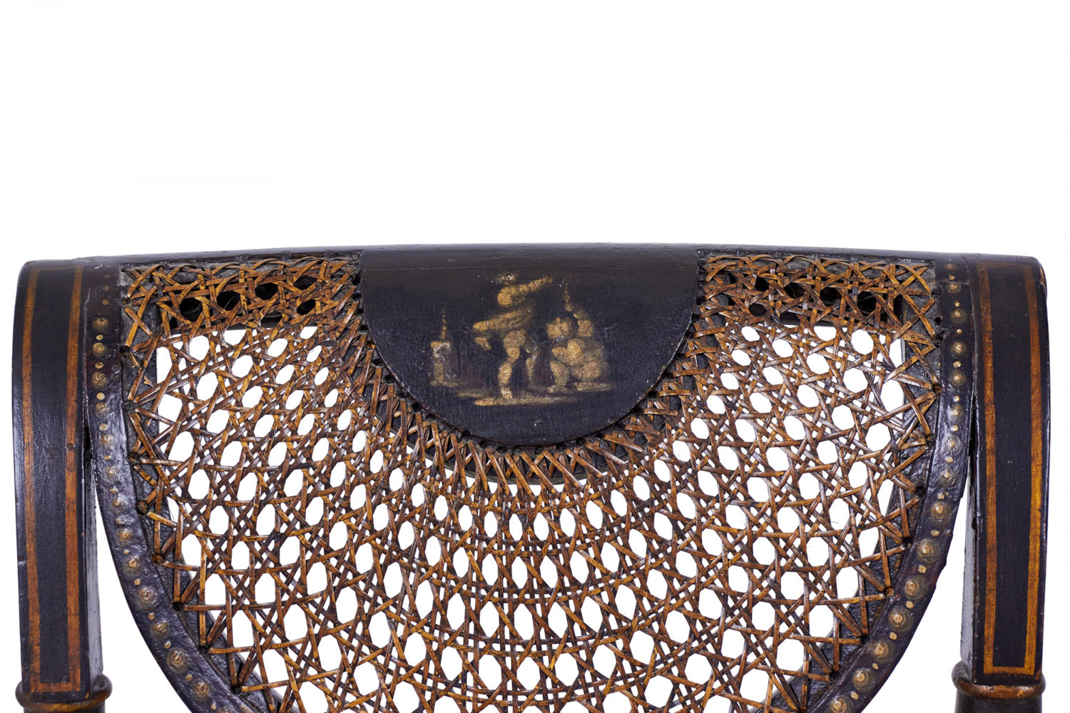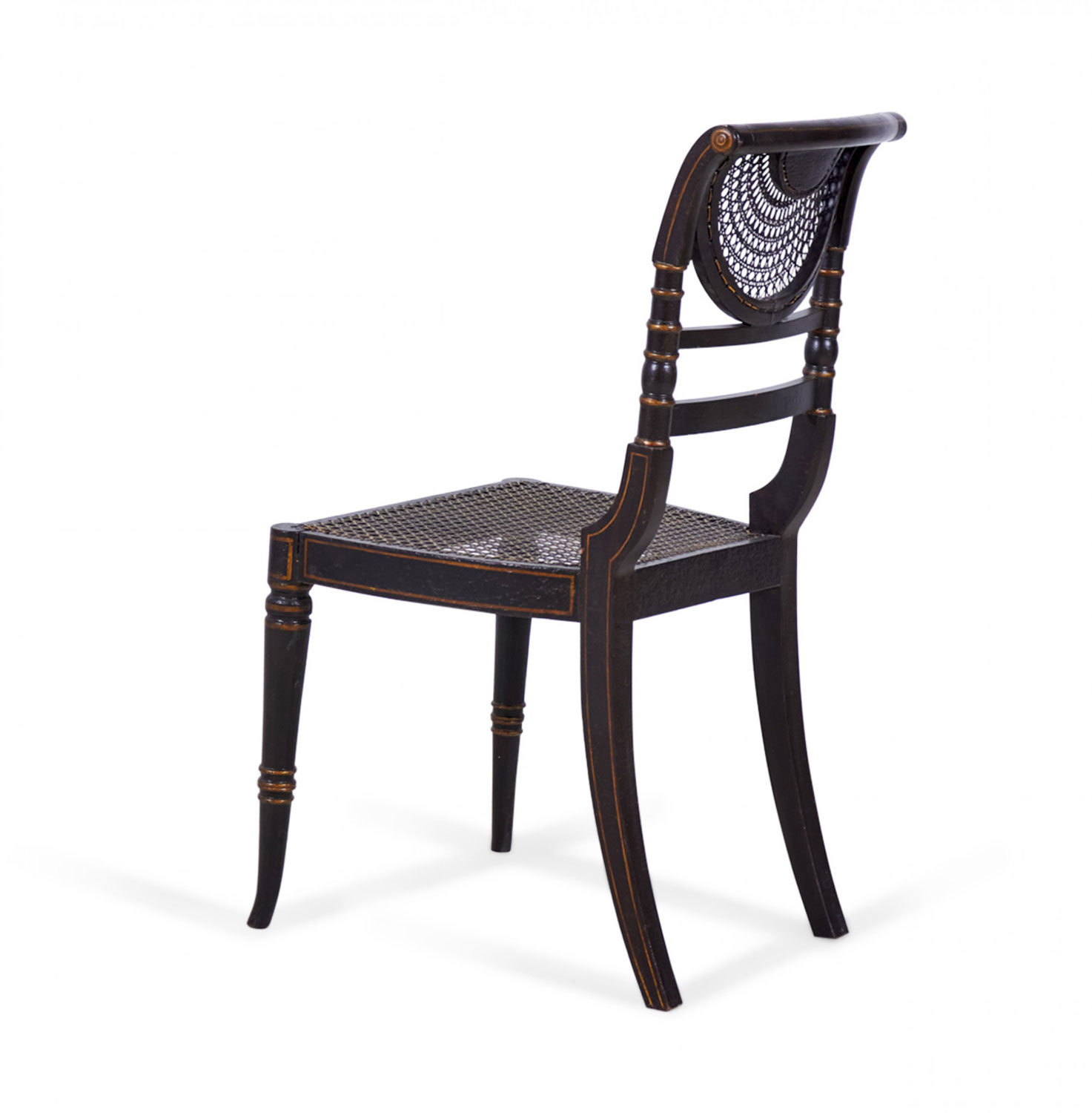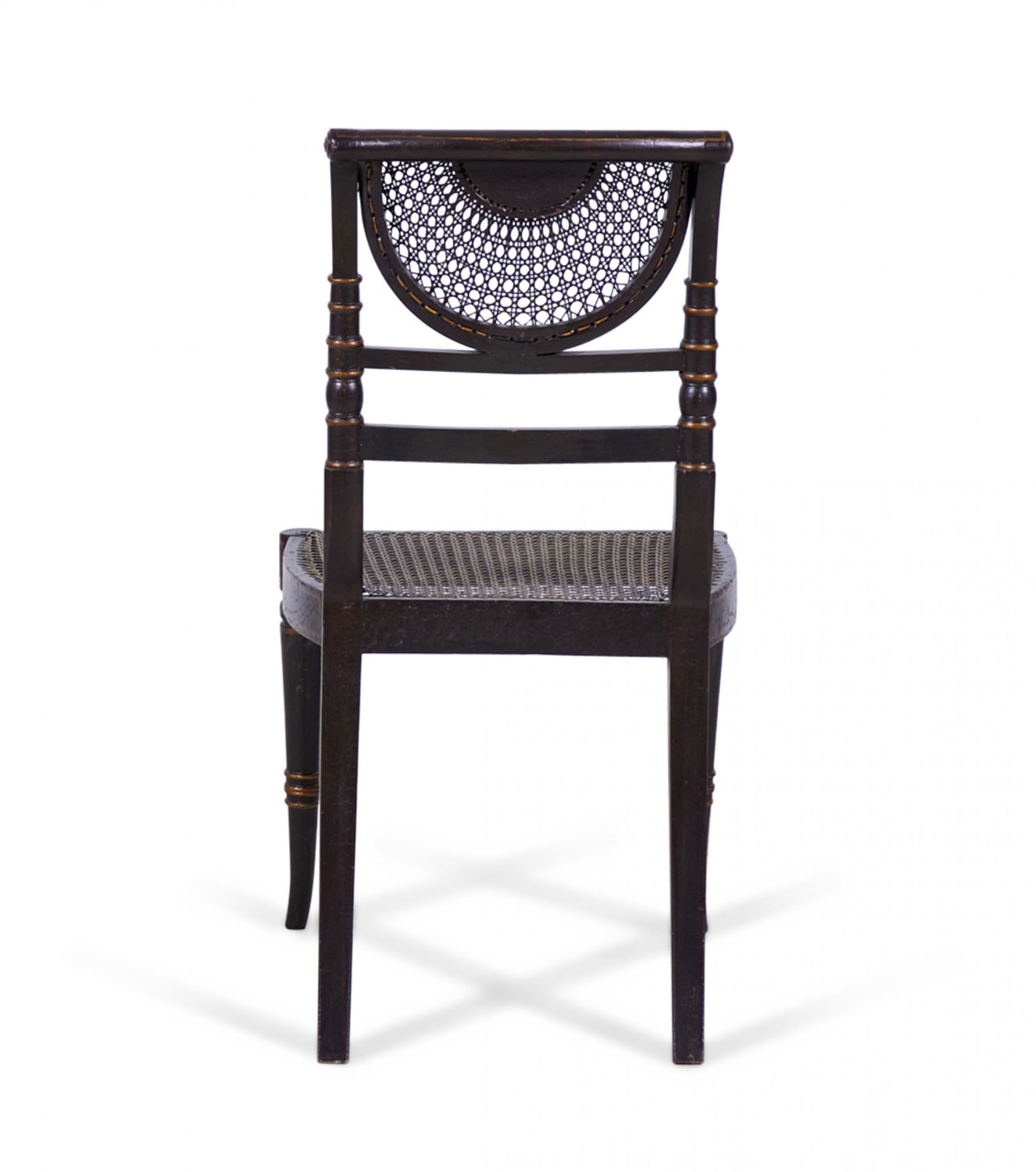 Set of 4 English Regency Style Black and Gold Painted Cane Seat Side Chairs