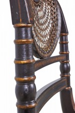 SET of 4 English Regency-style (19th Century) side chairs with turned painted black and gold frames with caned seats and fan-shaped back panels. (PRICED AS SET).