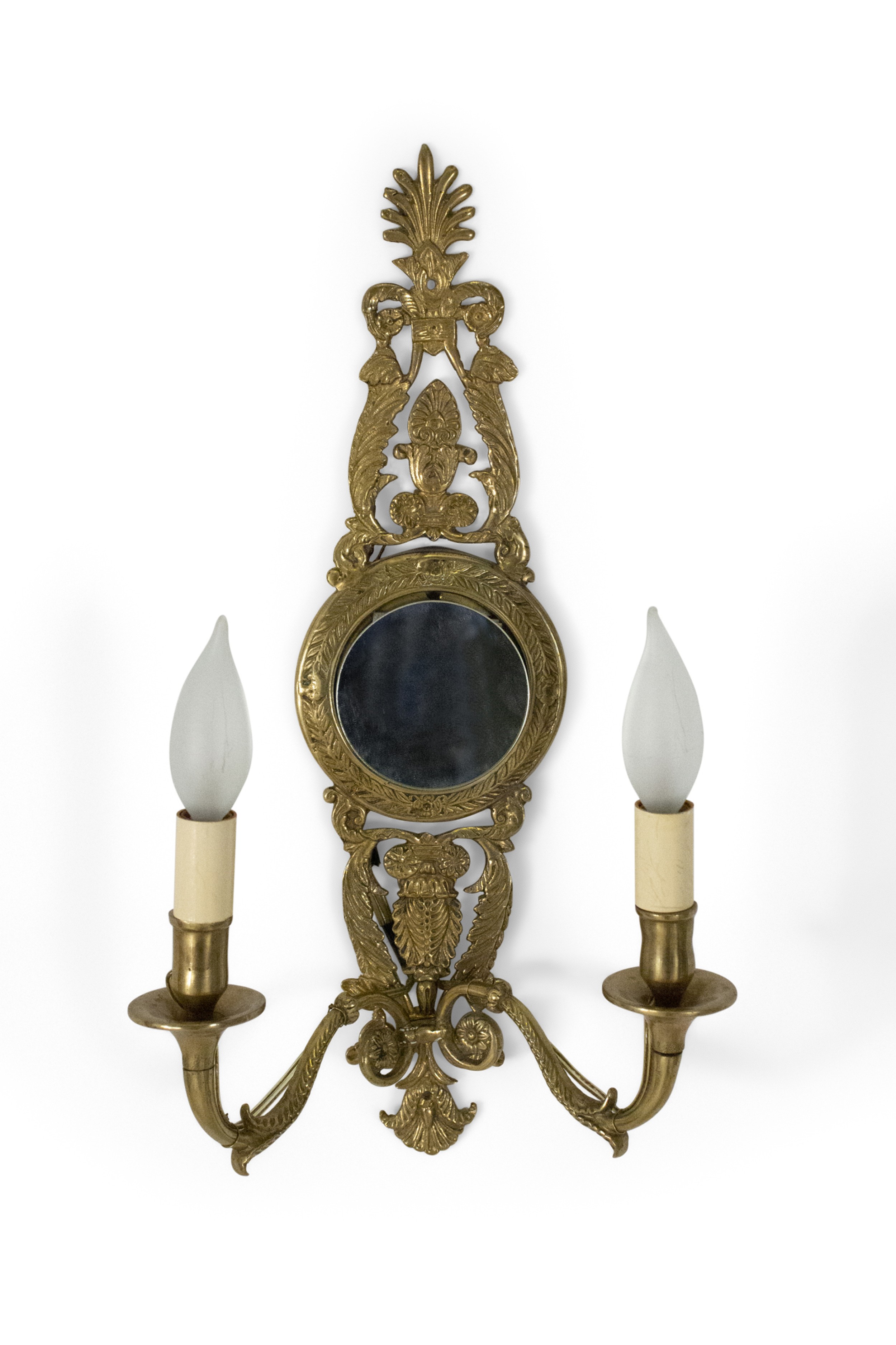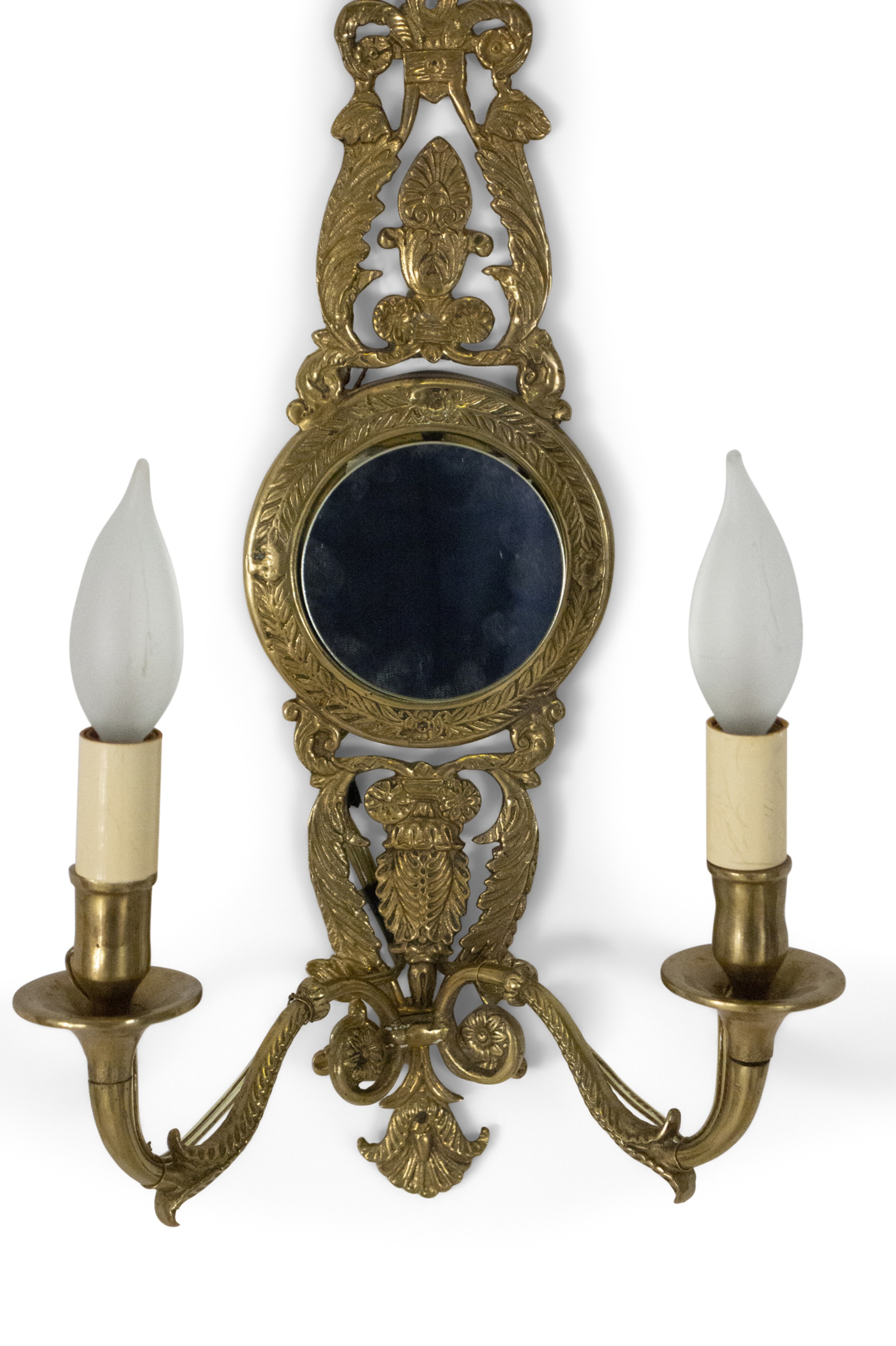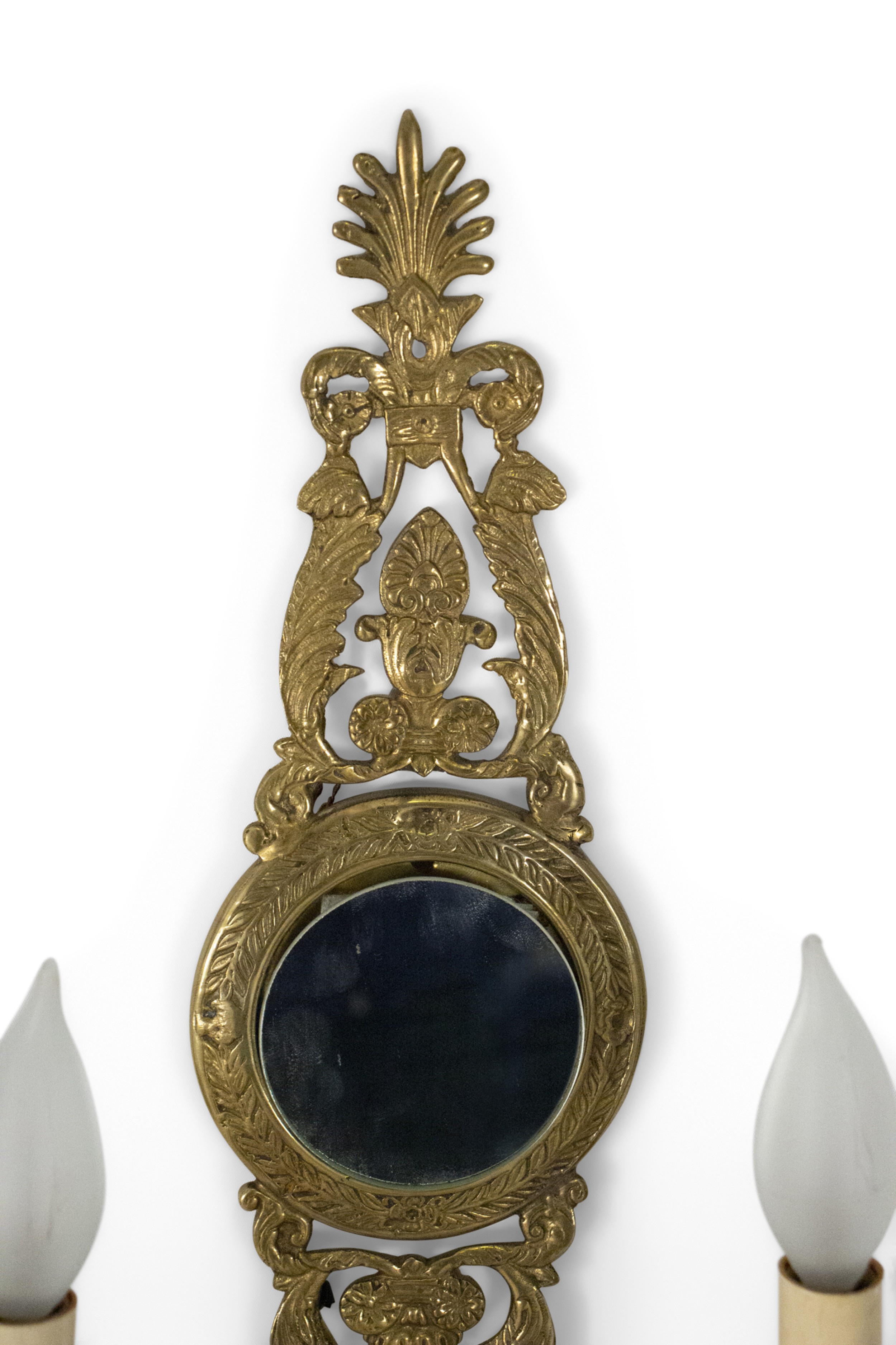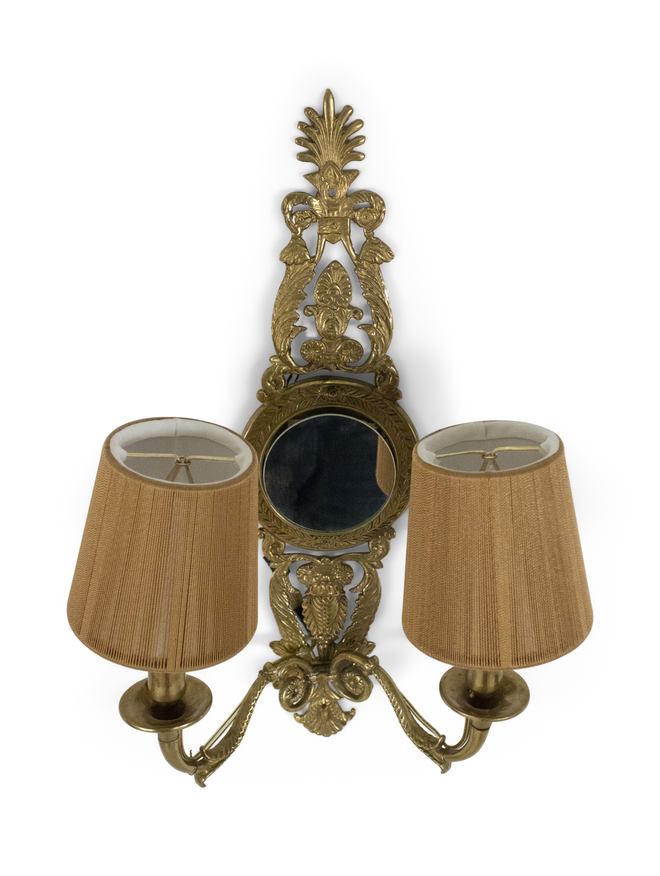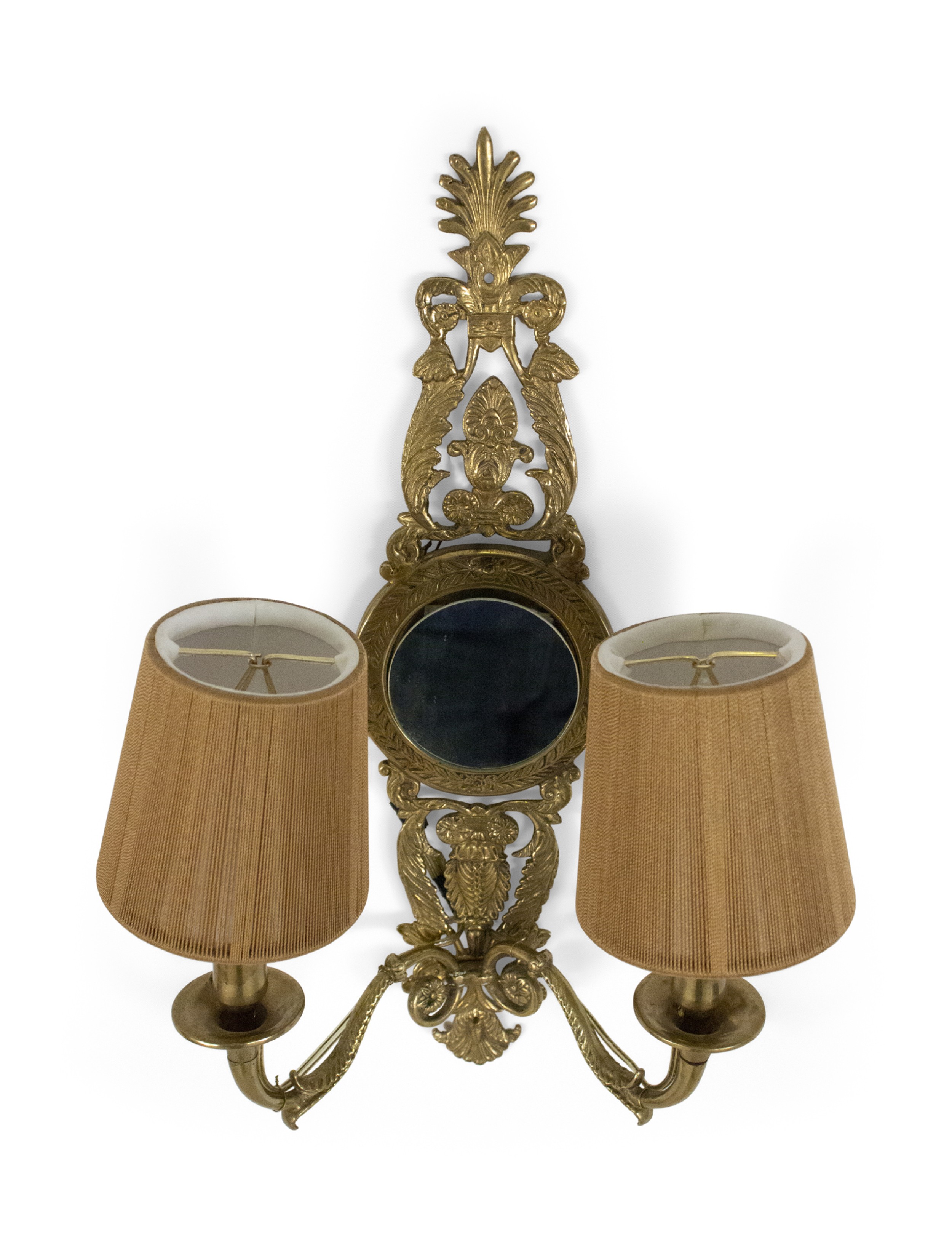 French Mid-Century Brass Mirrored Two Arm Wall Sconces