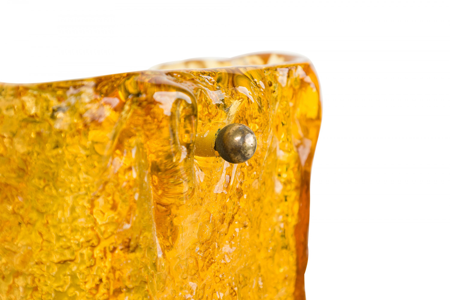 Set of 5 Mid-Century Rectangular Textured Amber Glass Wall Sconces