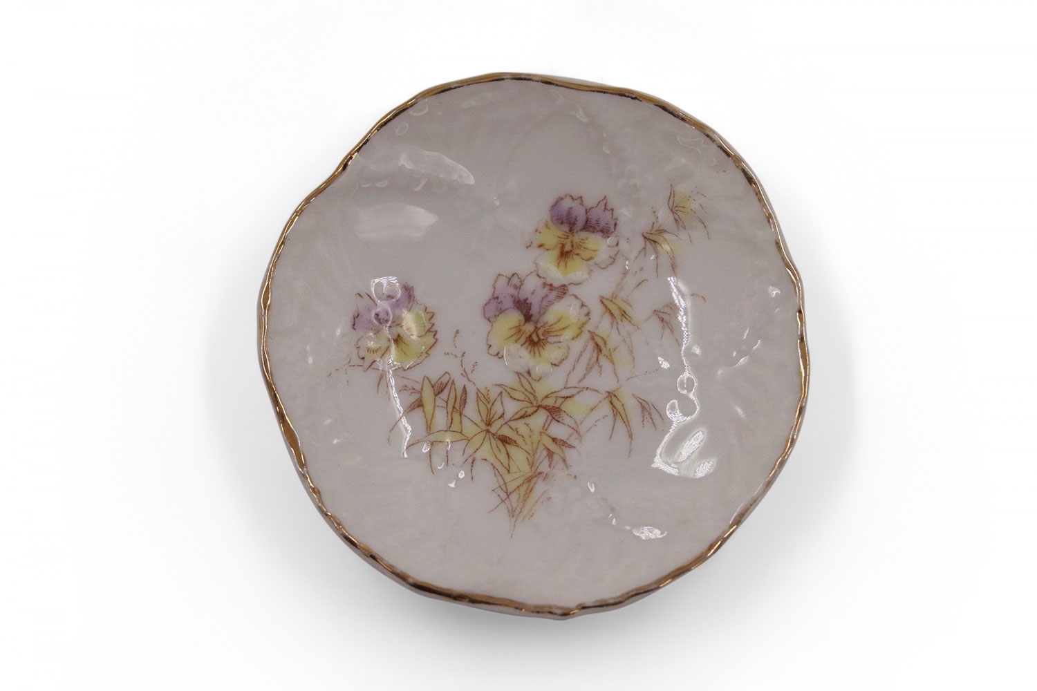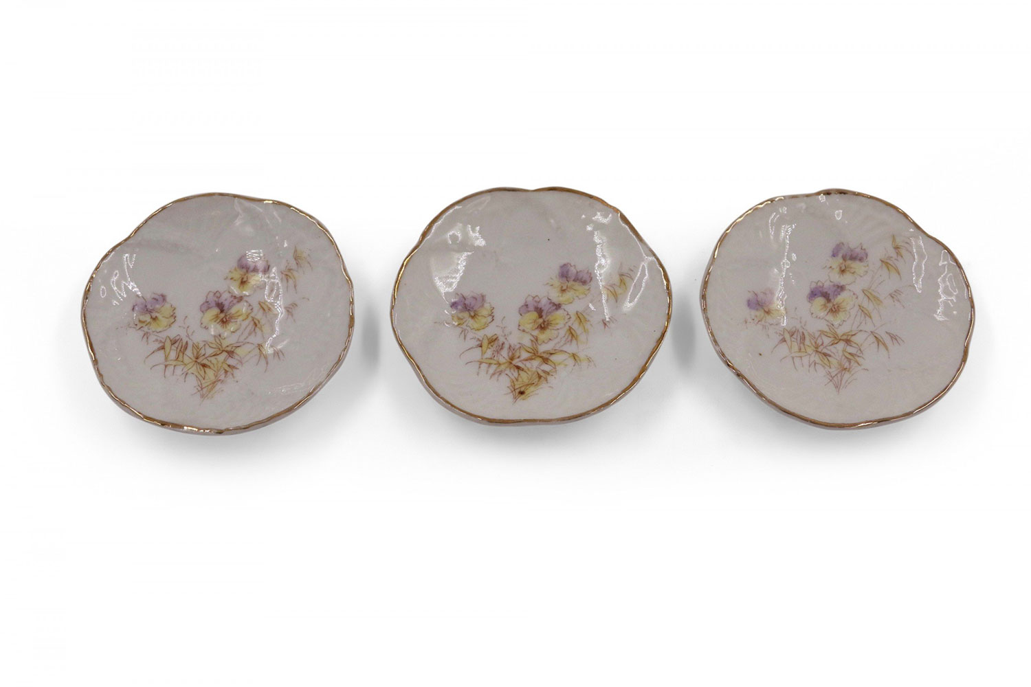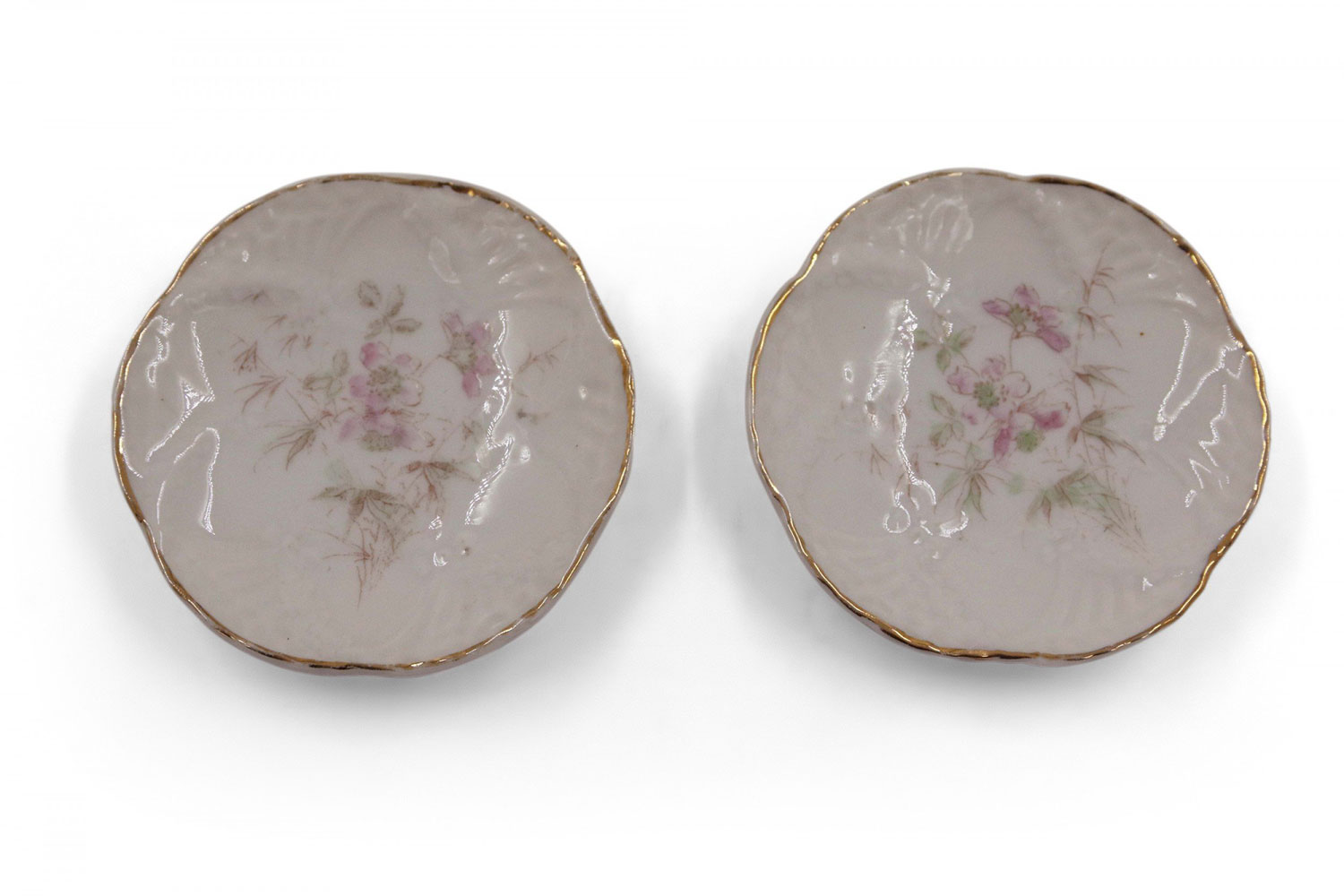 Set of 7 French Victorian Small Gilt Rim Floral Porcelain Plates