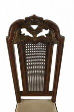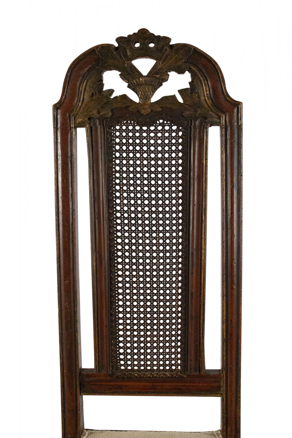 SET of 8 English Renaissance style side chairs with narrow caned backs, carved walnut frames and beige upholstered seats (PRICED AS SET)