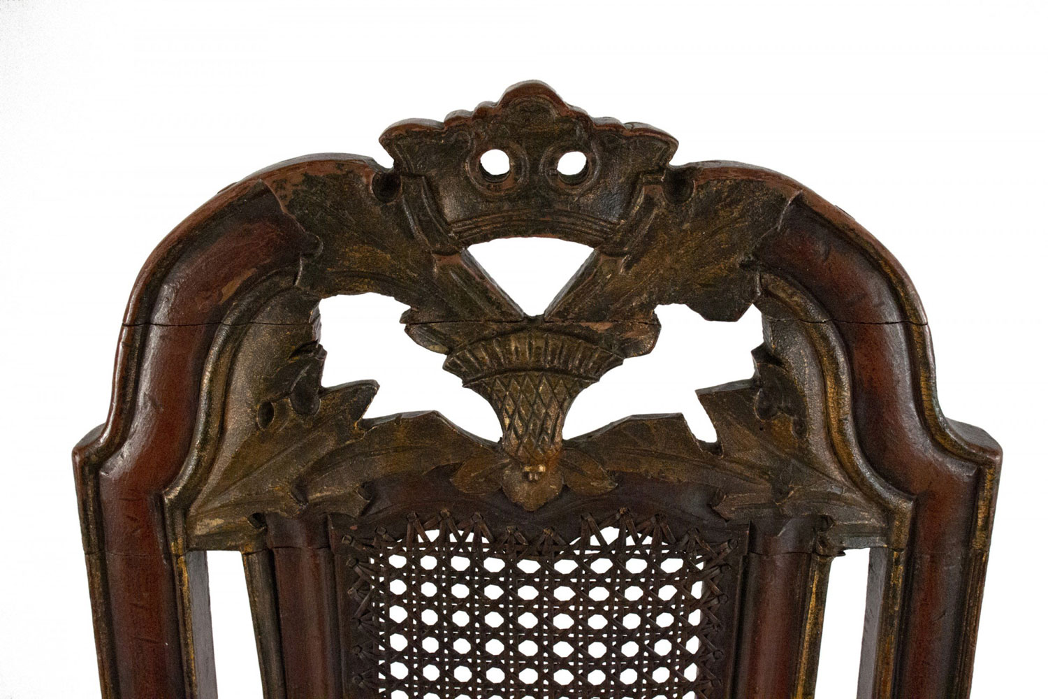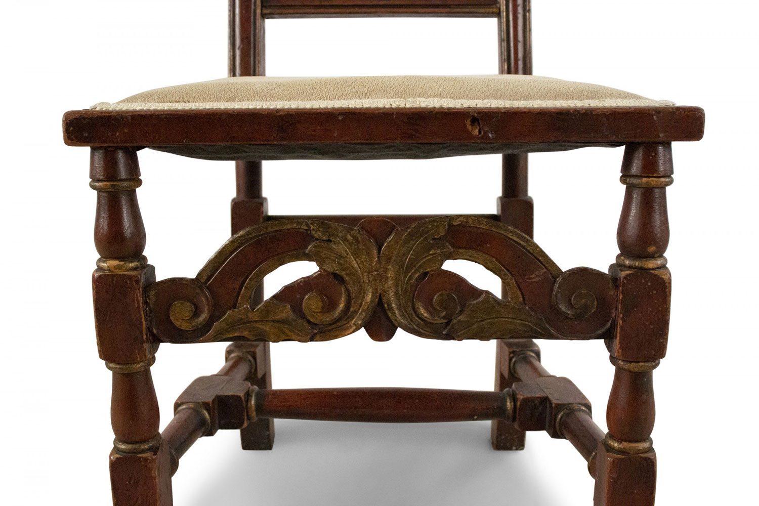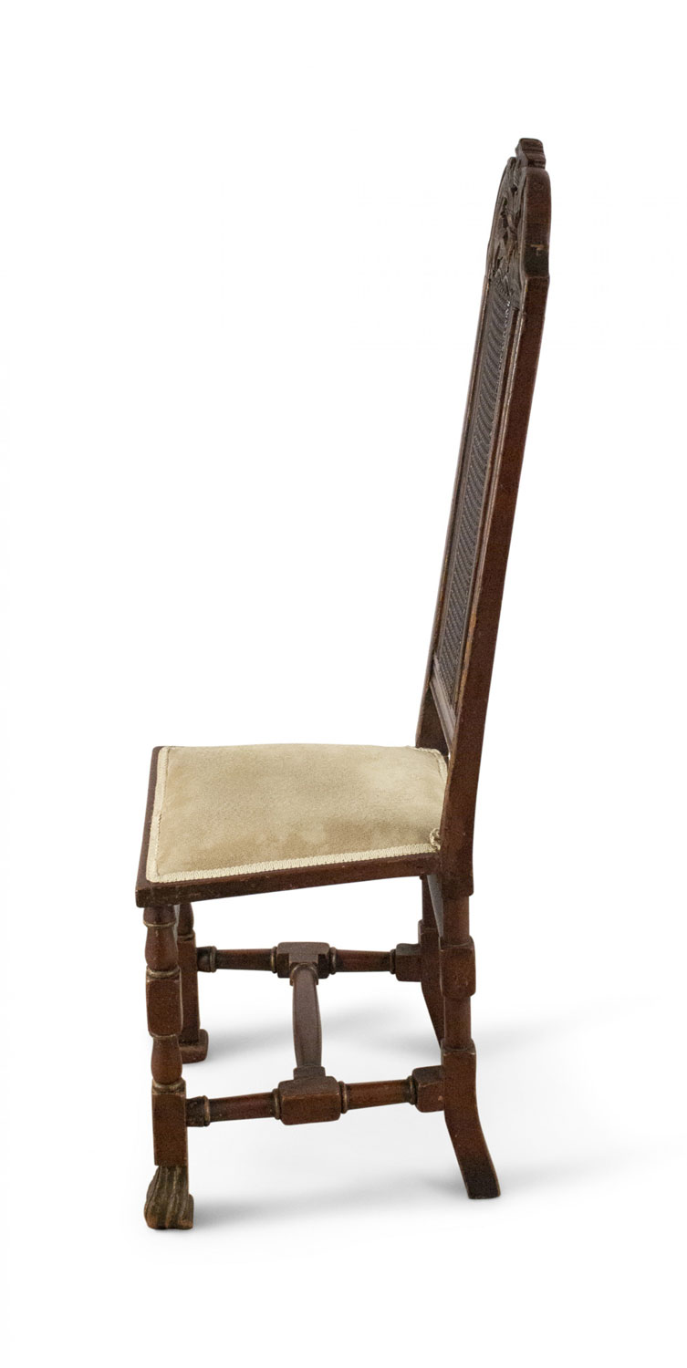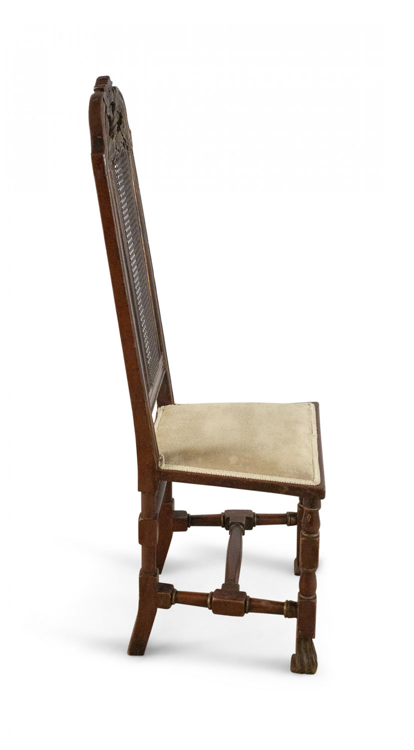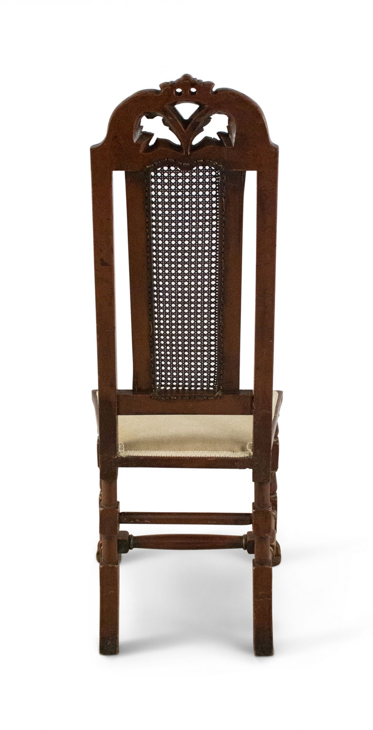SET of 8 English Renaissance style side chairs with narrow caned backs, carved walnut frames and beige upholstered seats (PRICED AS SET).