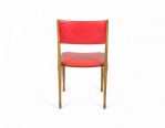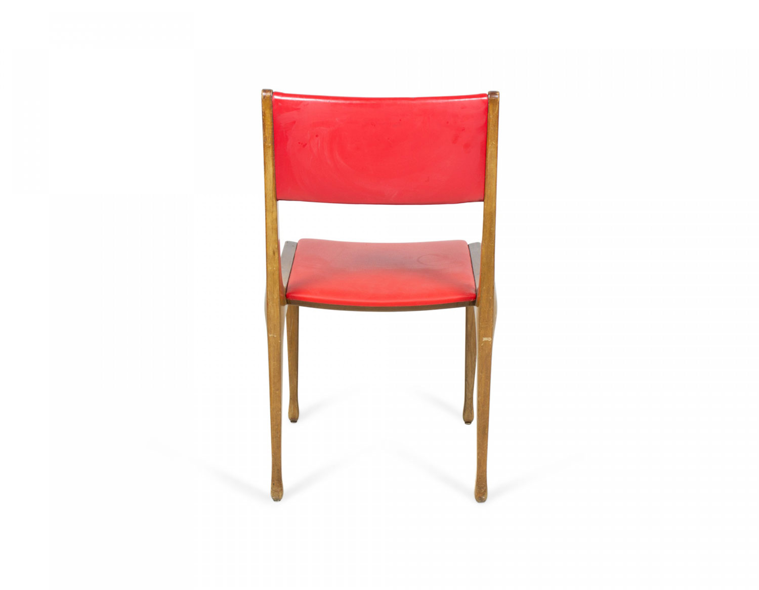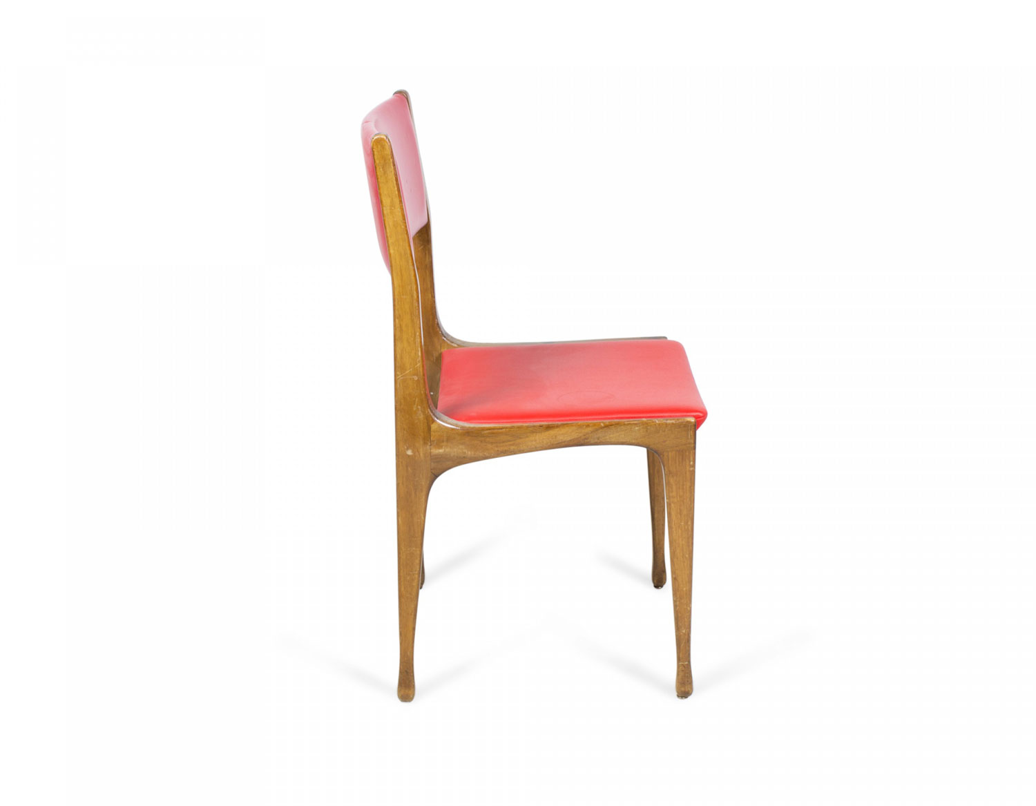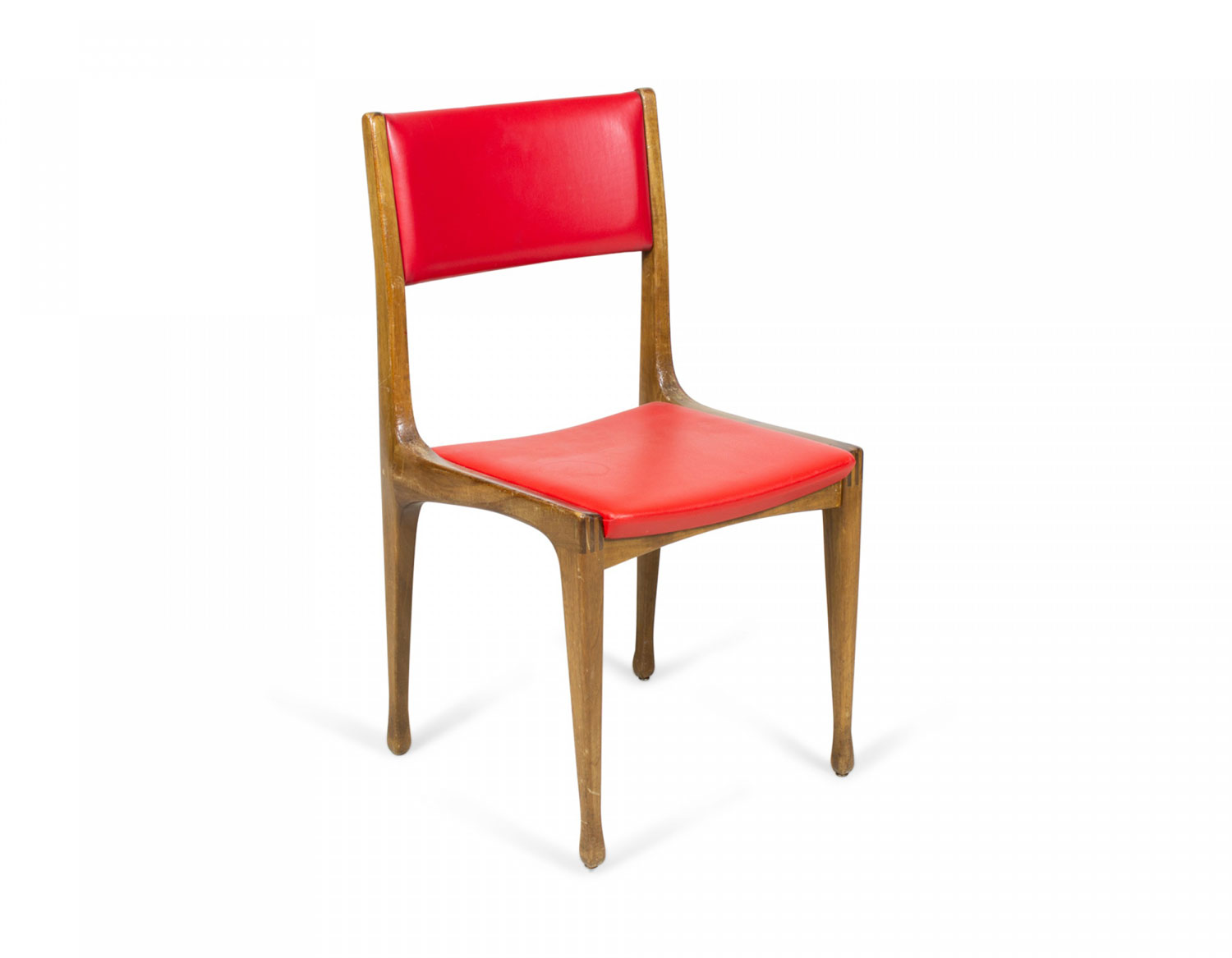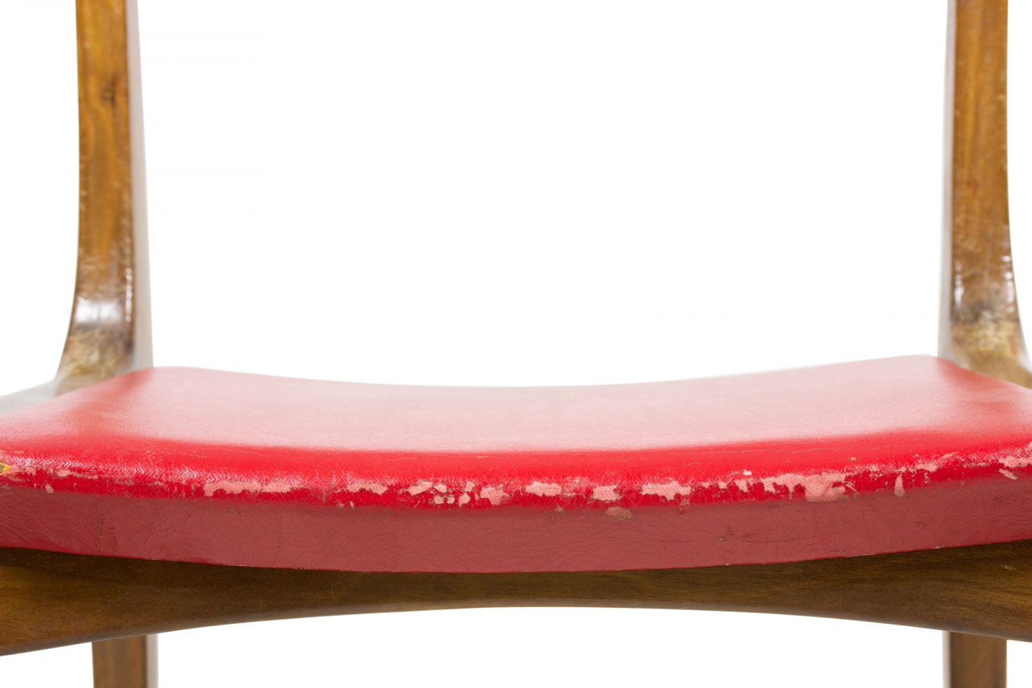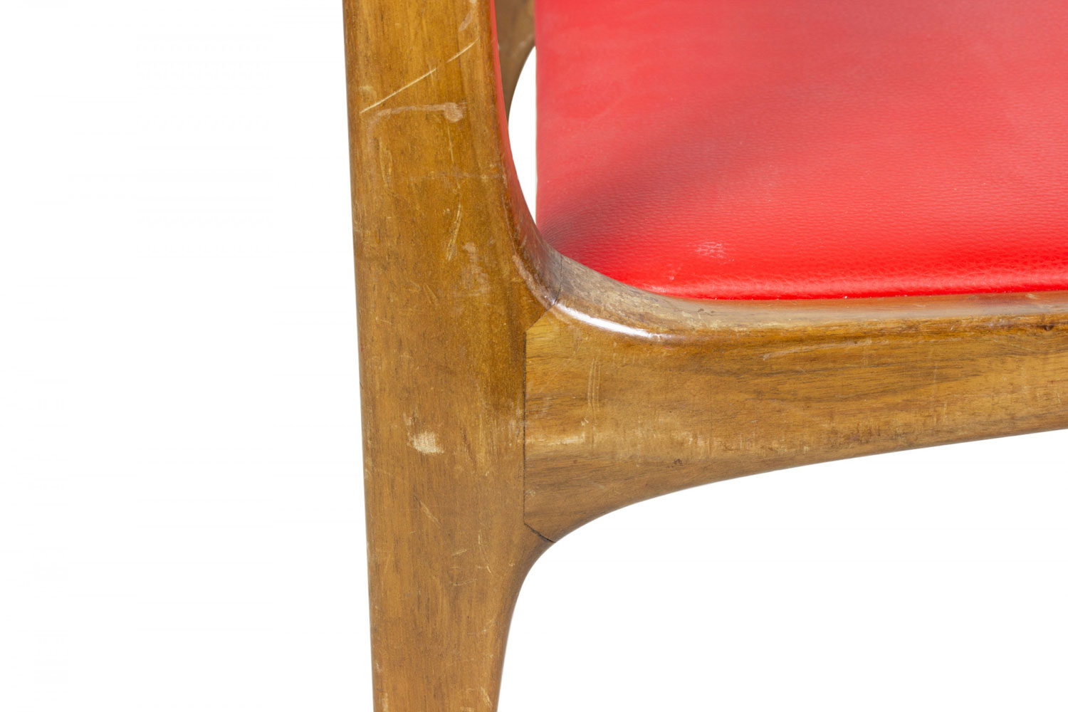 SET of 8 Mid-Century dining / side chairs with walnut frames and bright red vinyl seat and back upholstery. (PRICED AS SET)