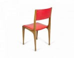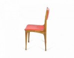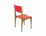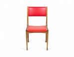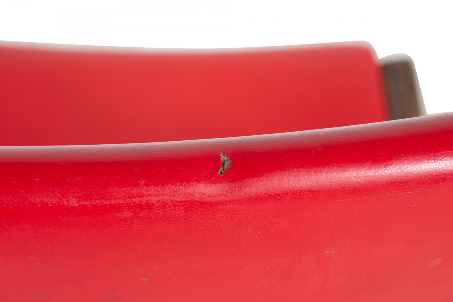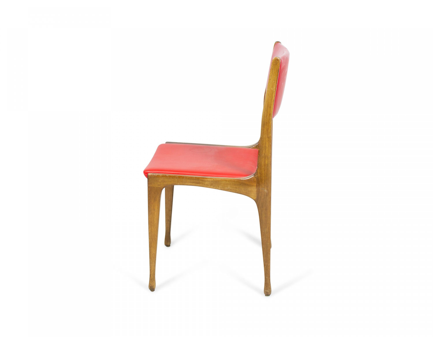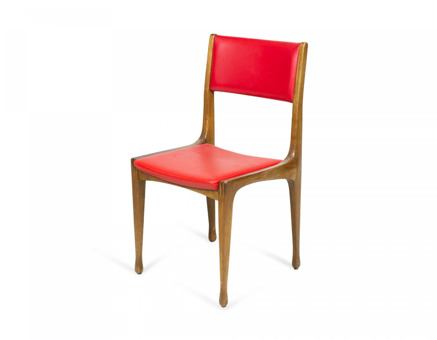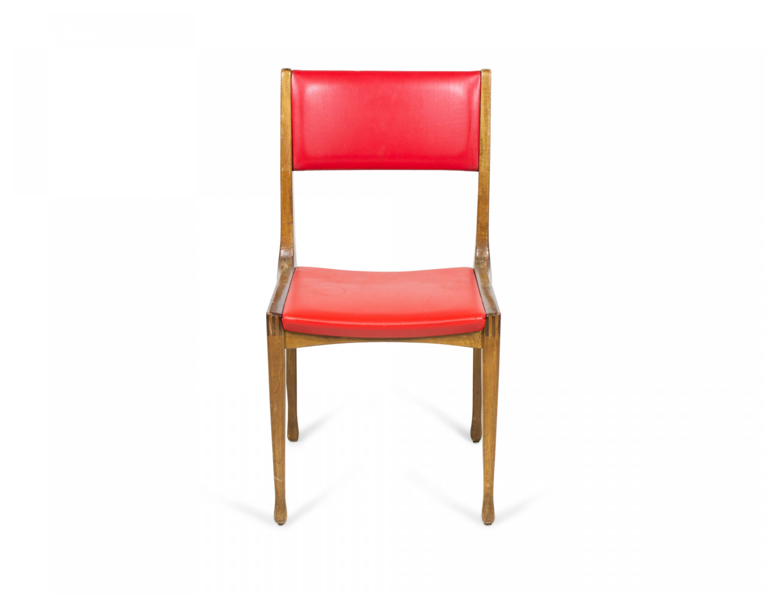 Set of 8 Mid-Century Walnut and Red Vinyl Dining / Side Chairs