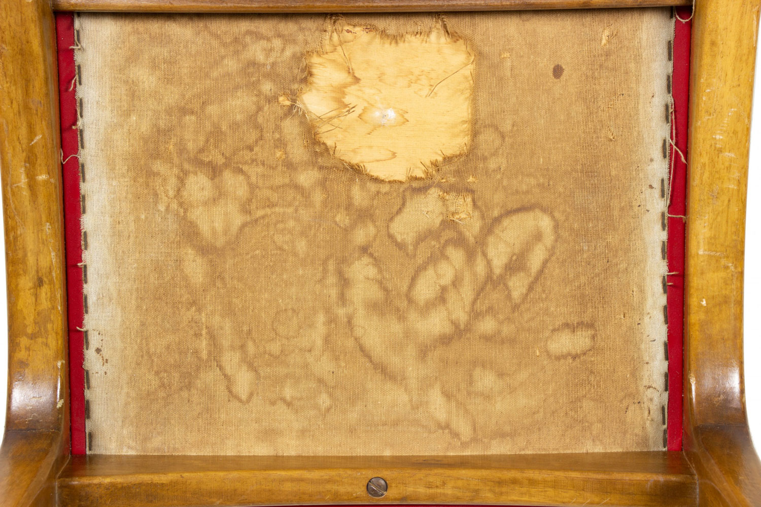 Style: Mid-Century Materials & Techniques: Upholstered, vinyl, walnut, wood Category: Seating, Office/Library, Dining Room Condition: Some scuffing to chair frames. Several chairs have wear to upholstery edges (see photos). Slight color variation in upholstery.