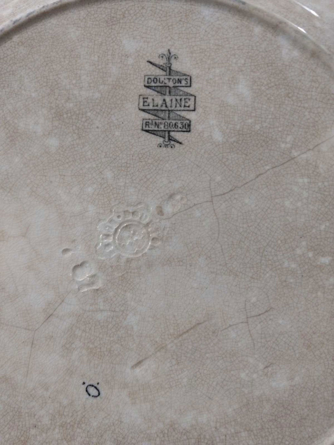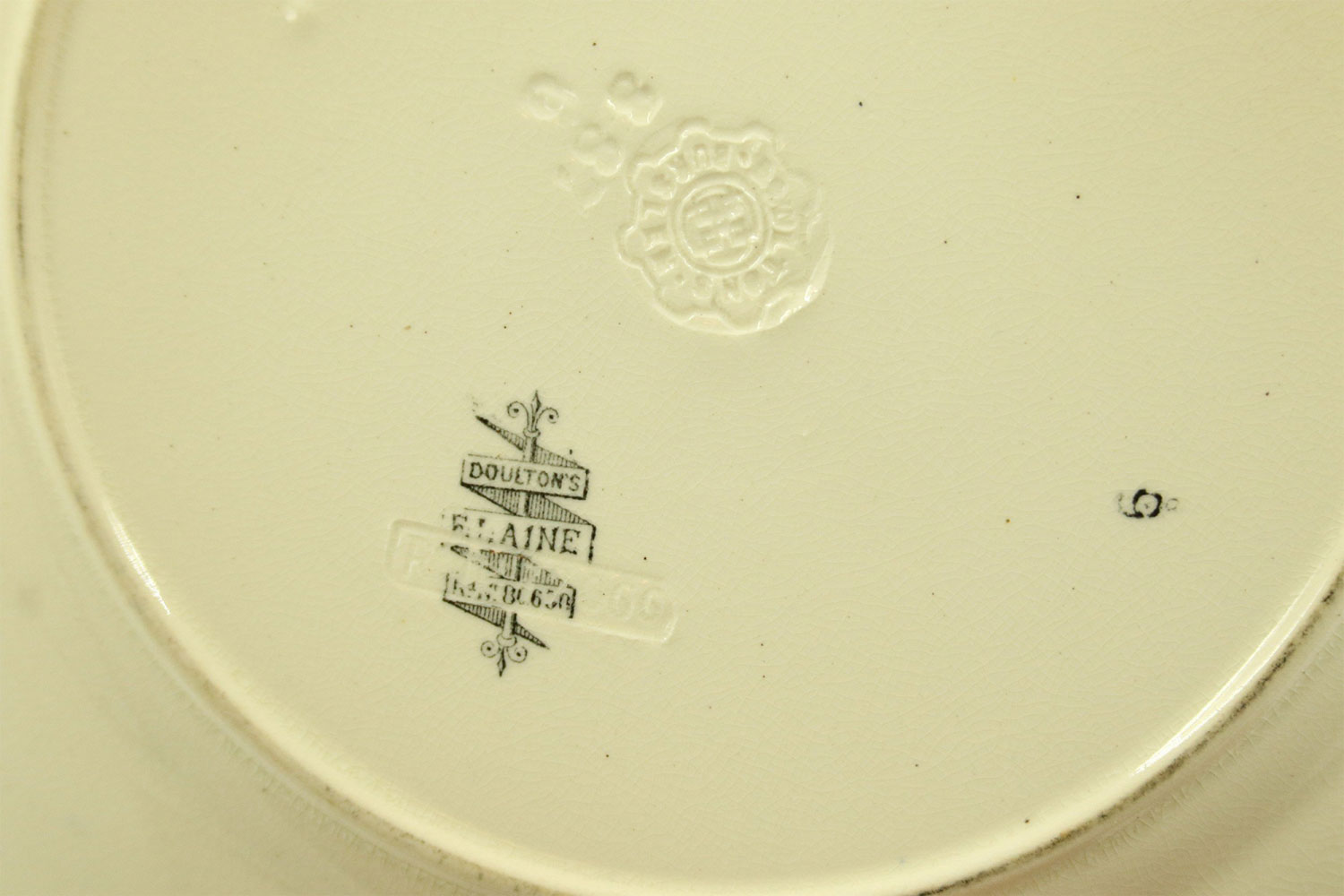 Set of 7 English (19th Century) black and cream floral transferware plates with center depiction of a vase of flowers. (DOUTON'S ELAINE) (PRICED AS SET).