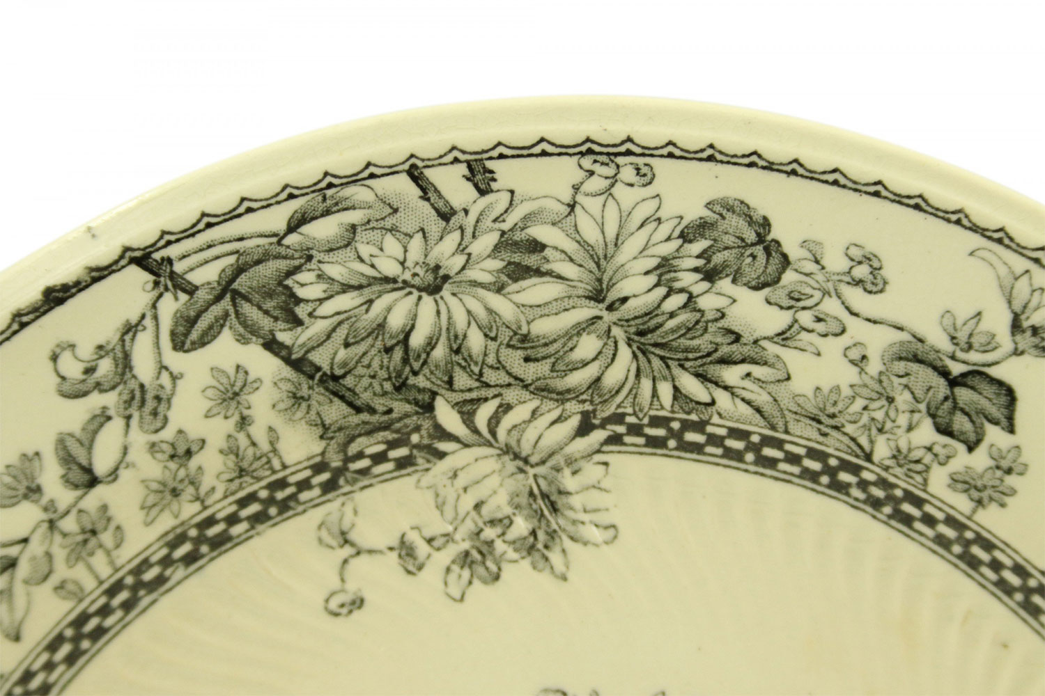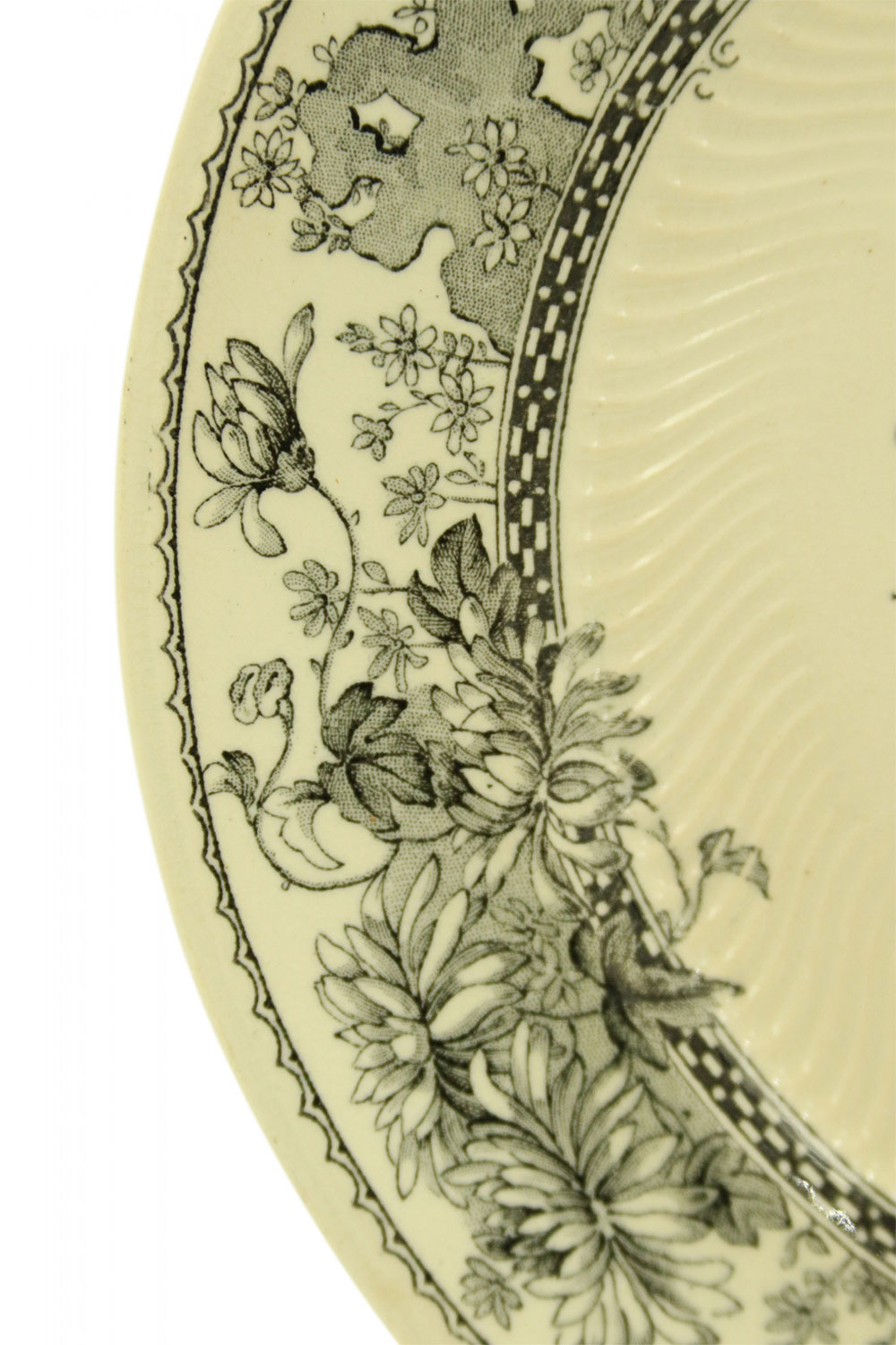 Set of 7 English Victorian Black and Cream Floral Transferware Plates