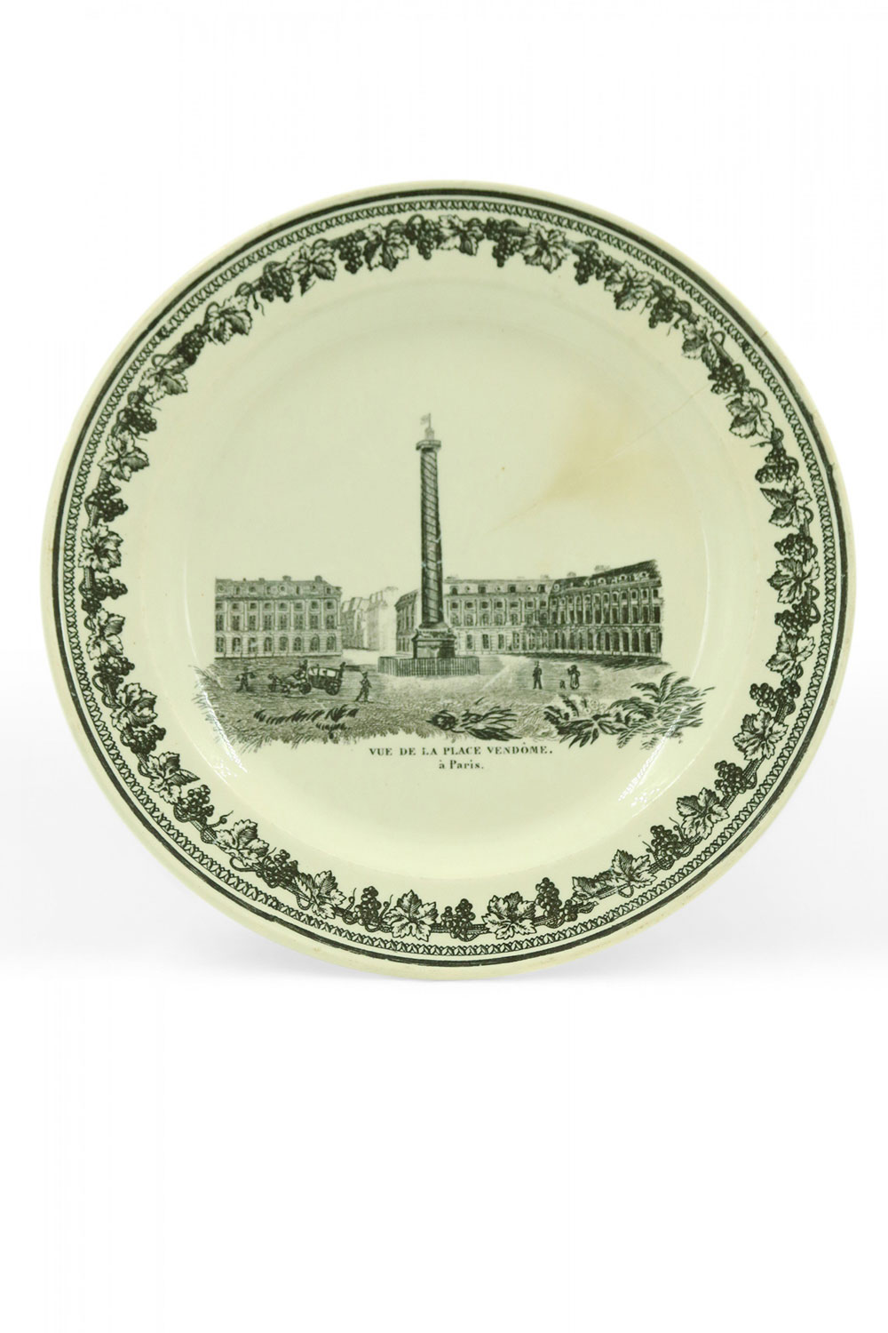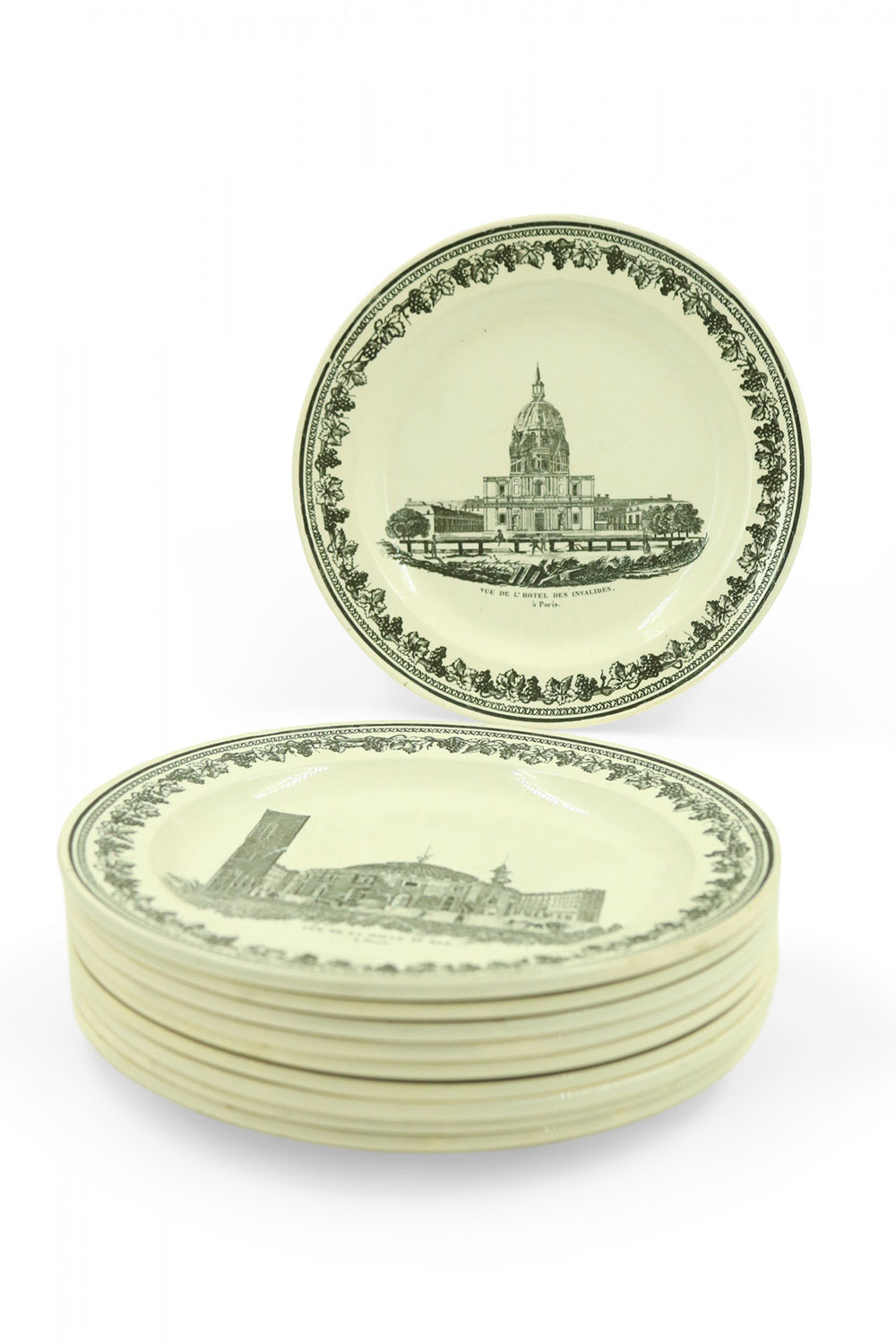 Set of 10 French Black and White Creamware Plates of French Landmarks