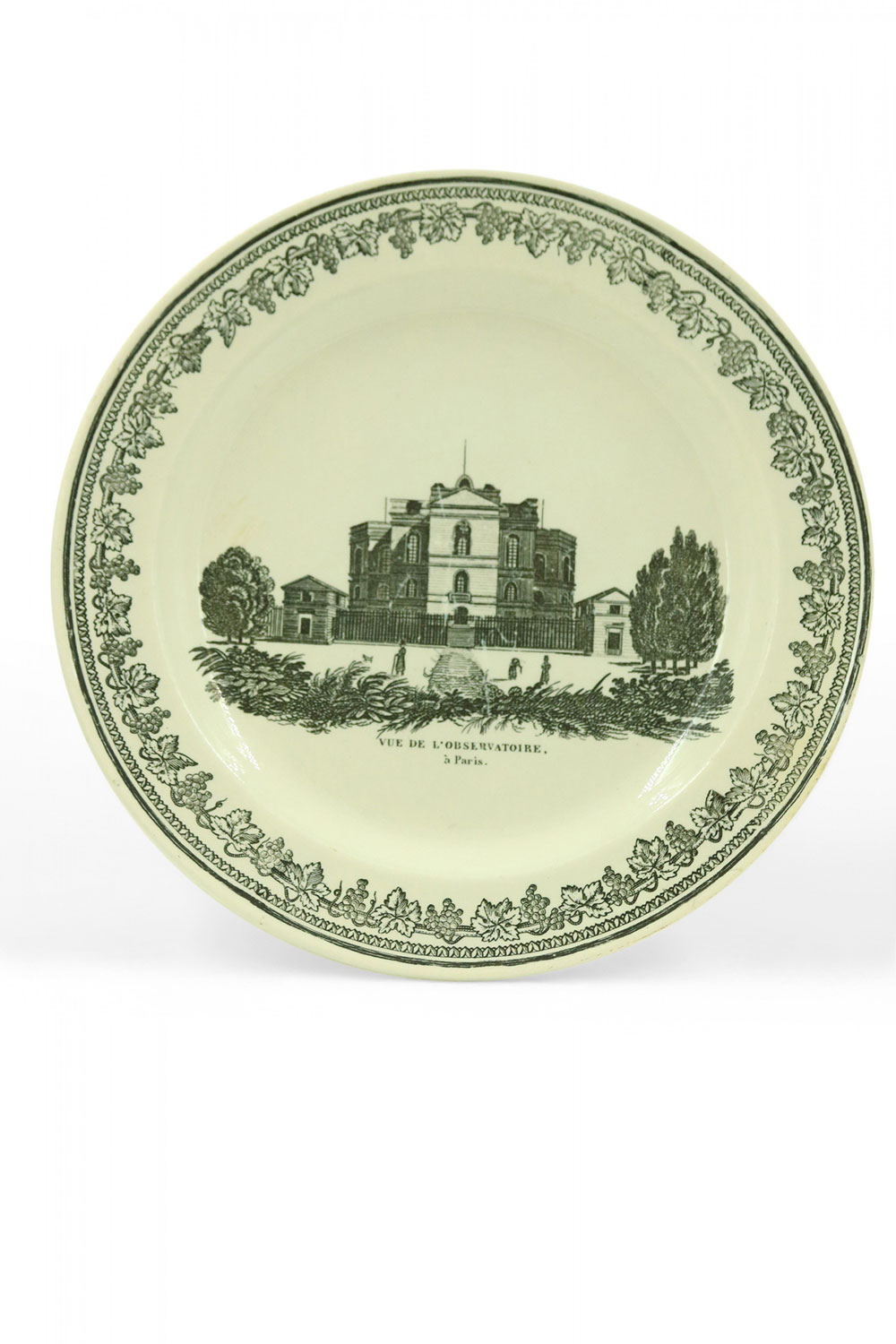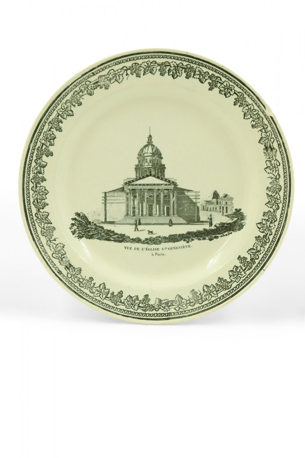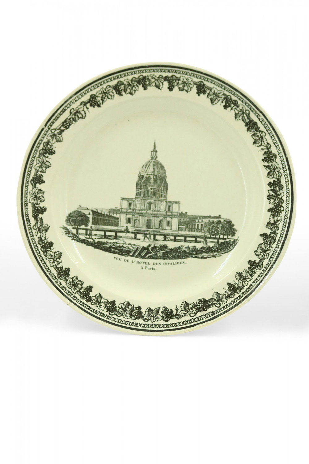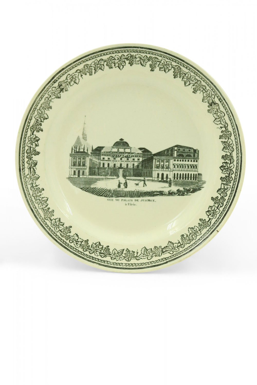 Set of 10 French (19th Century) black and white transfer creamware plates of historic French landmarks. (PRICED AS SET)