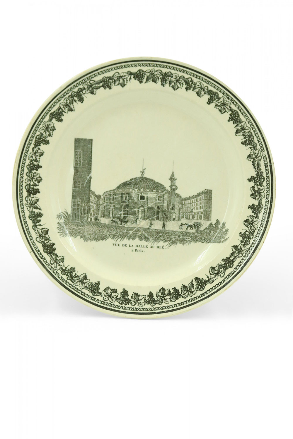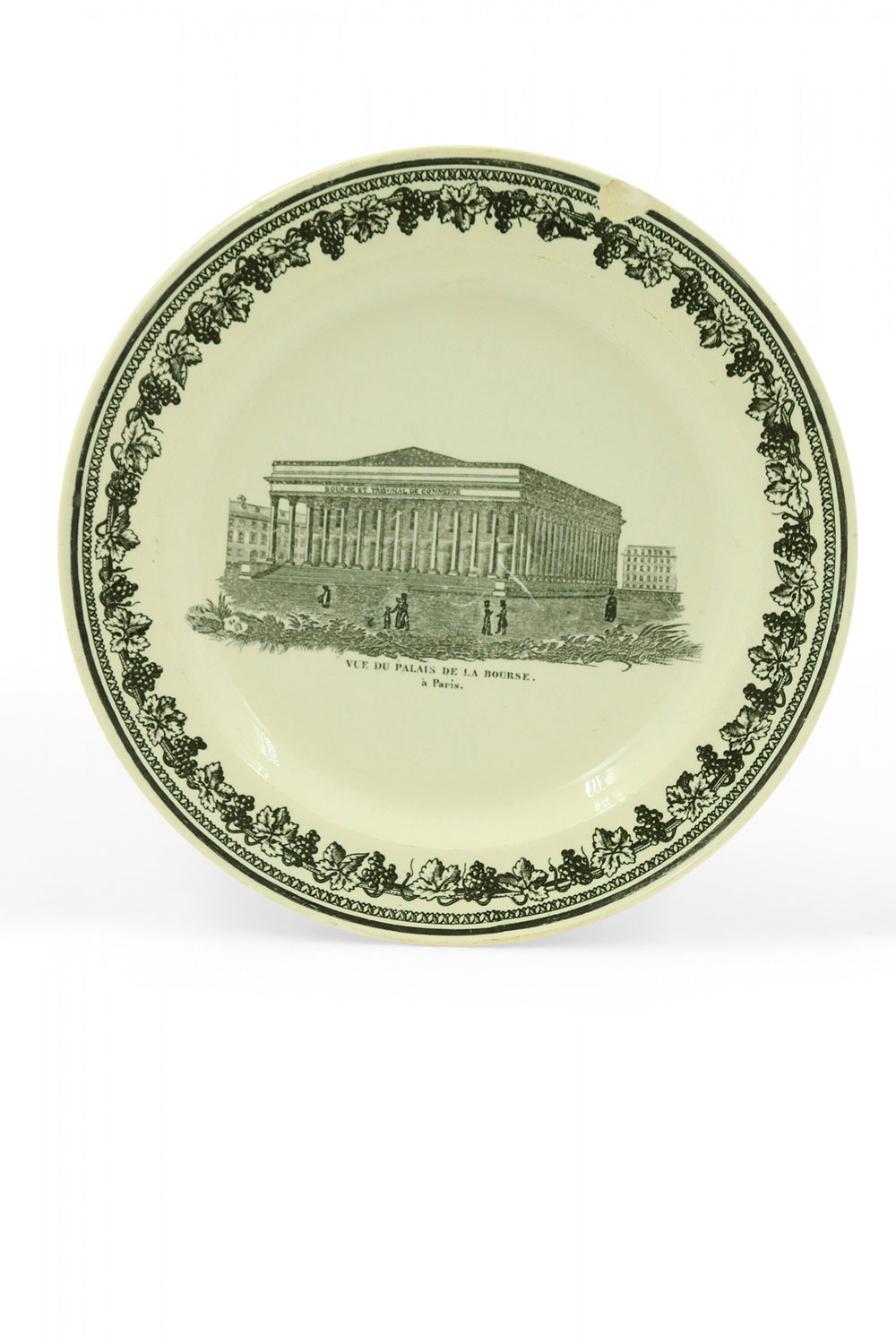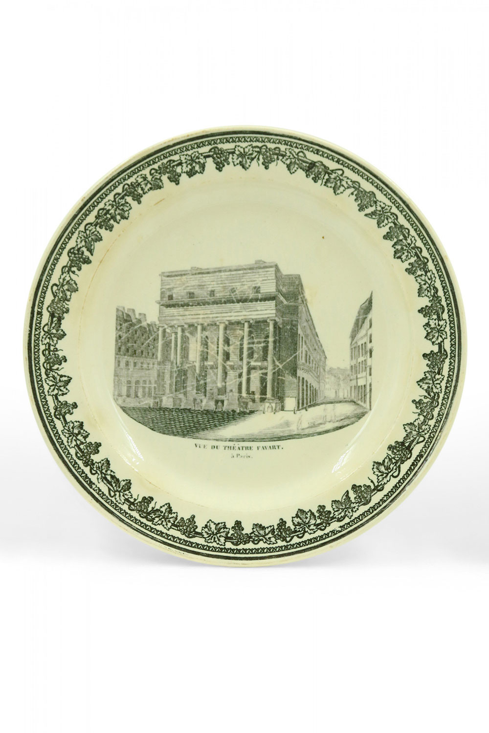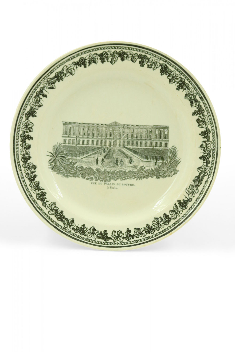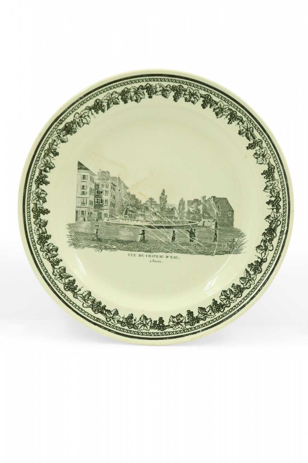 Set of 10 French (19th Century) black and white transfer creamware plates of historic French landmarks. (PRICED AS SET)