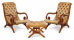 Style: French Materials & Techniques: Wood, mahogany, leather, button, tufted Category: Seating