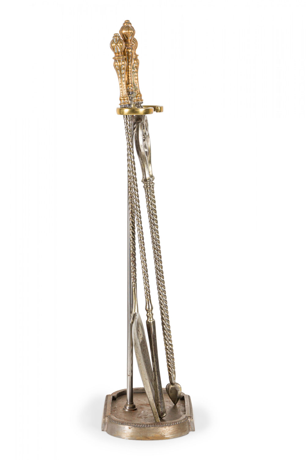 Set of French Victorian Style Twisted Rope Design Iron Fire Tools