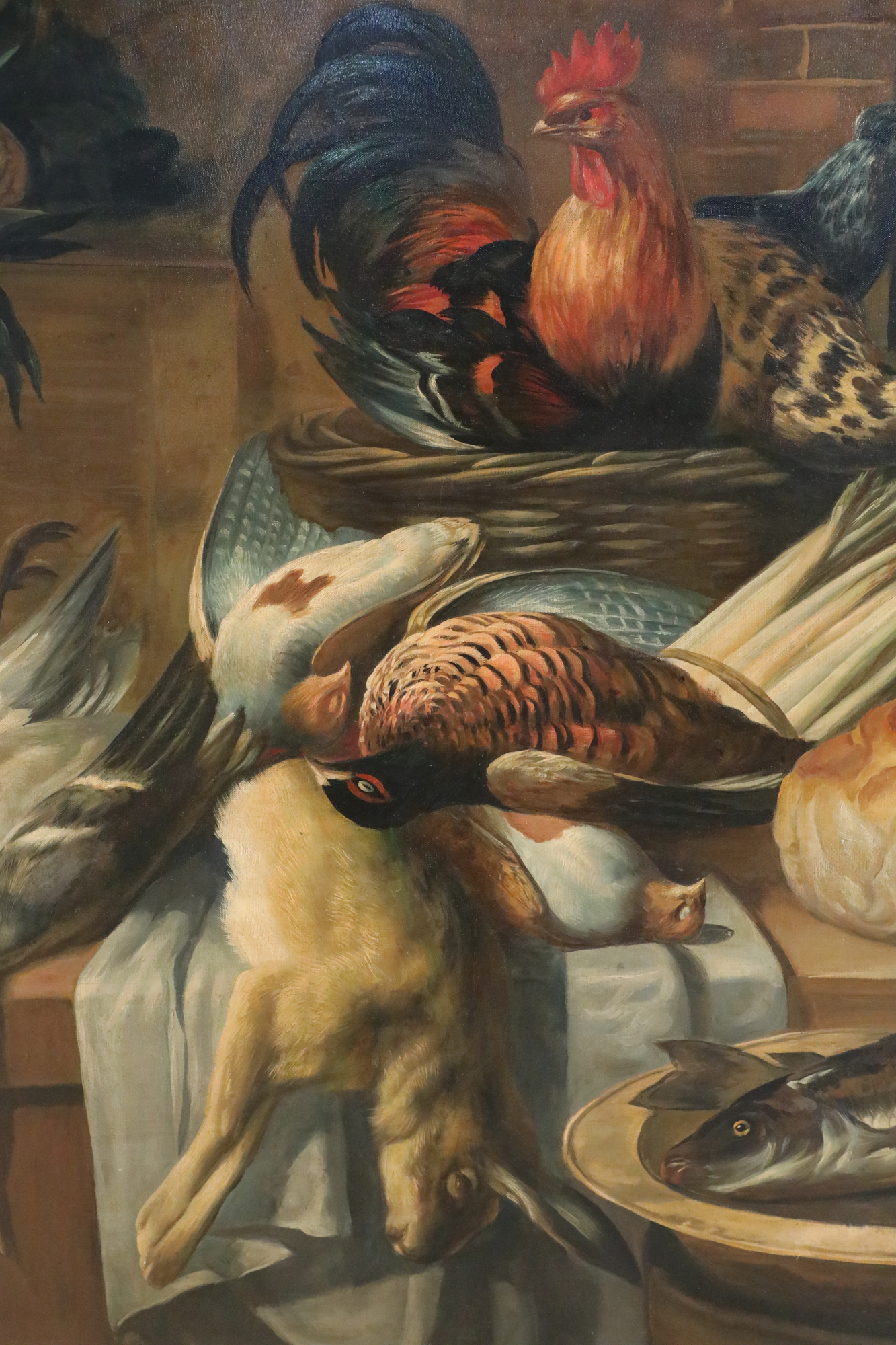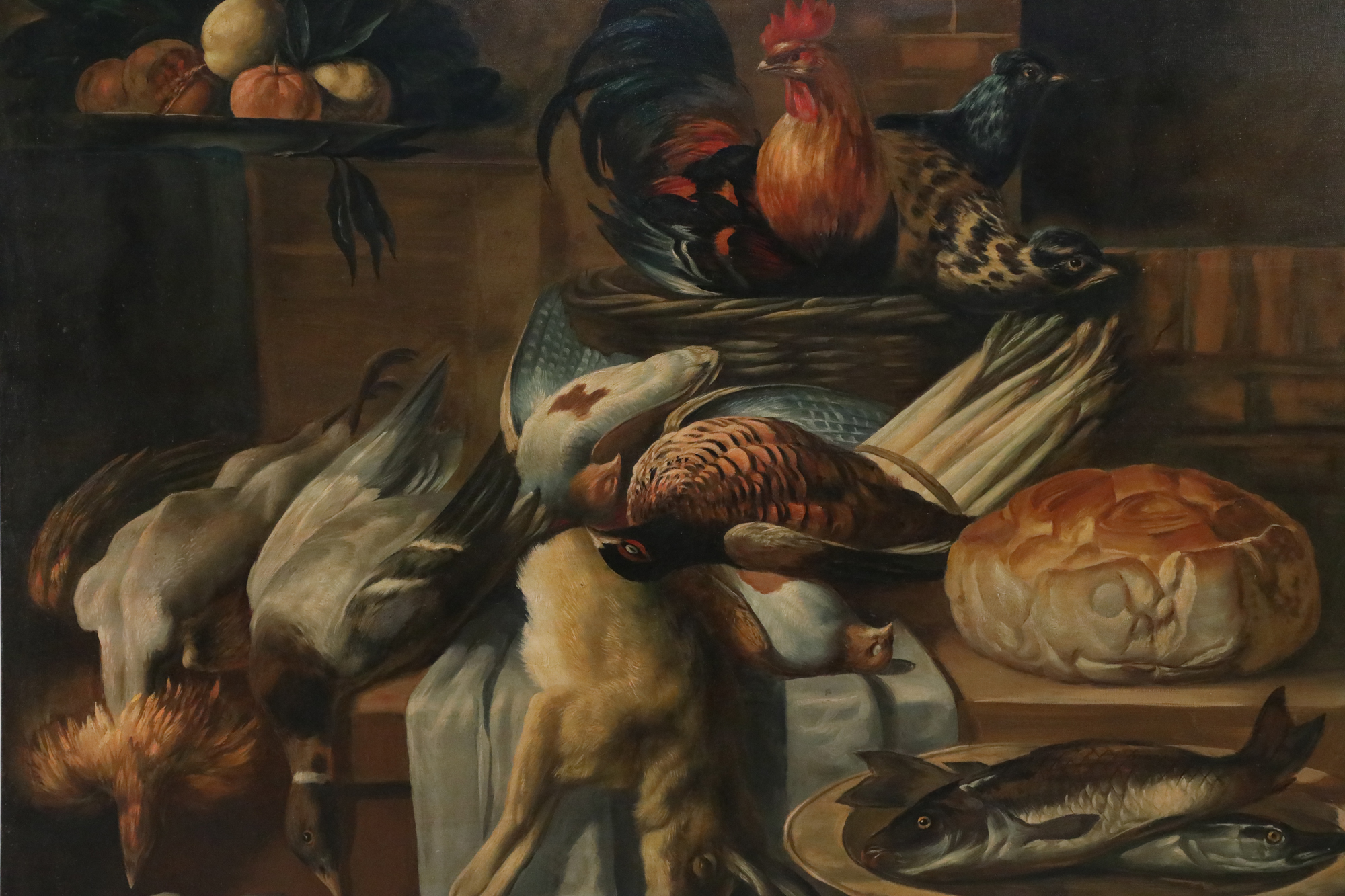 Still Life of Game, Fowl, Fish and Food Painting on Canvas