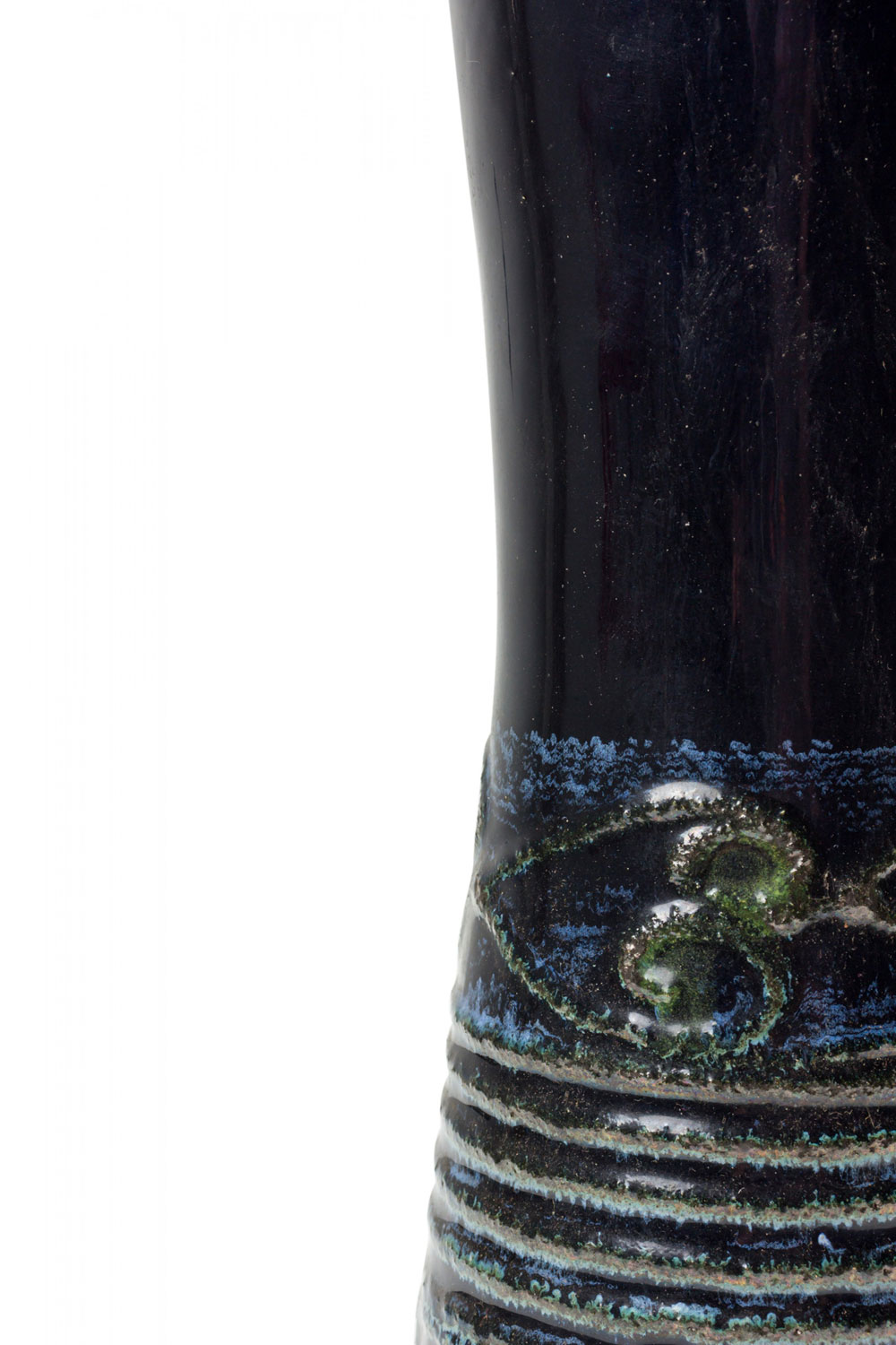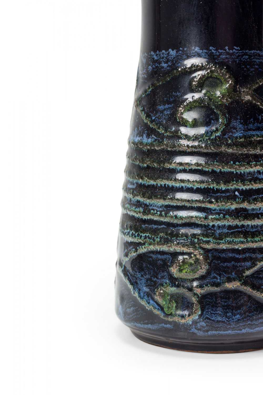 Strehla Keramik East German Mid-Century Deep Blue Raised Banded Pattern Glazed Ceramic Vase