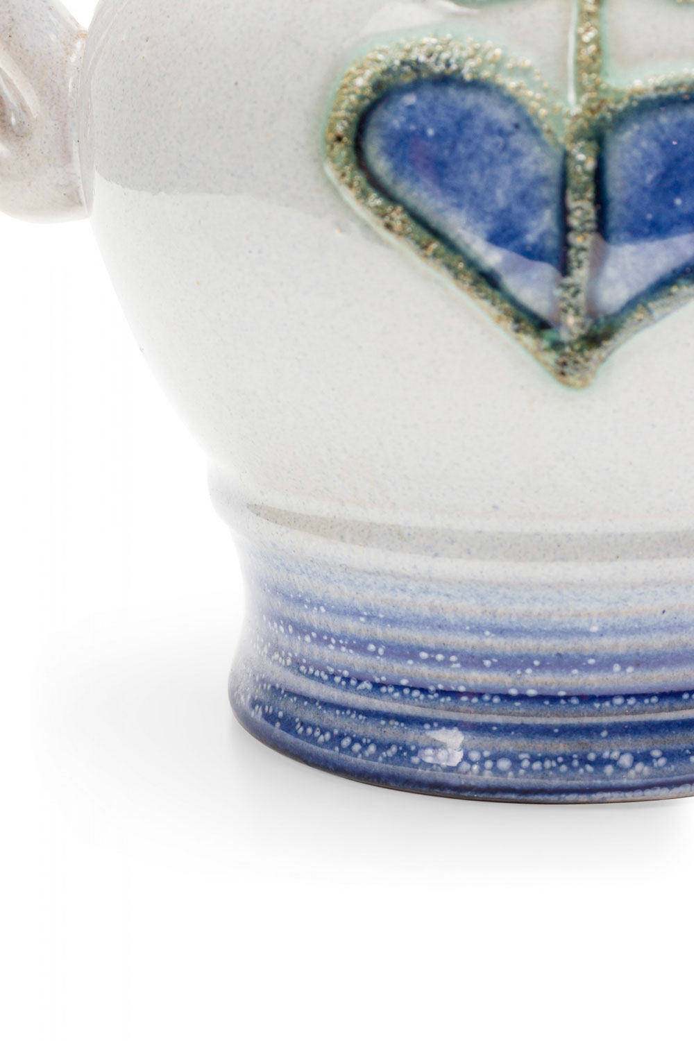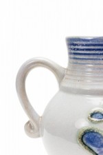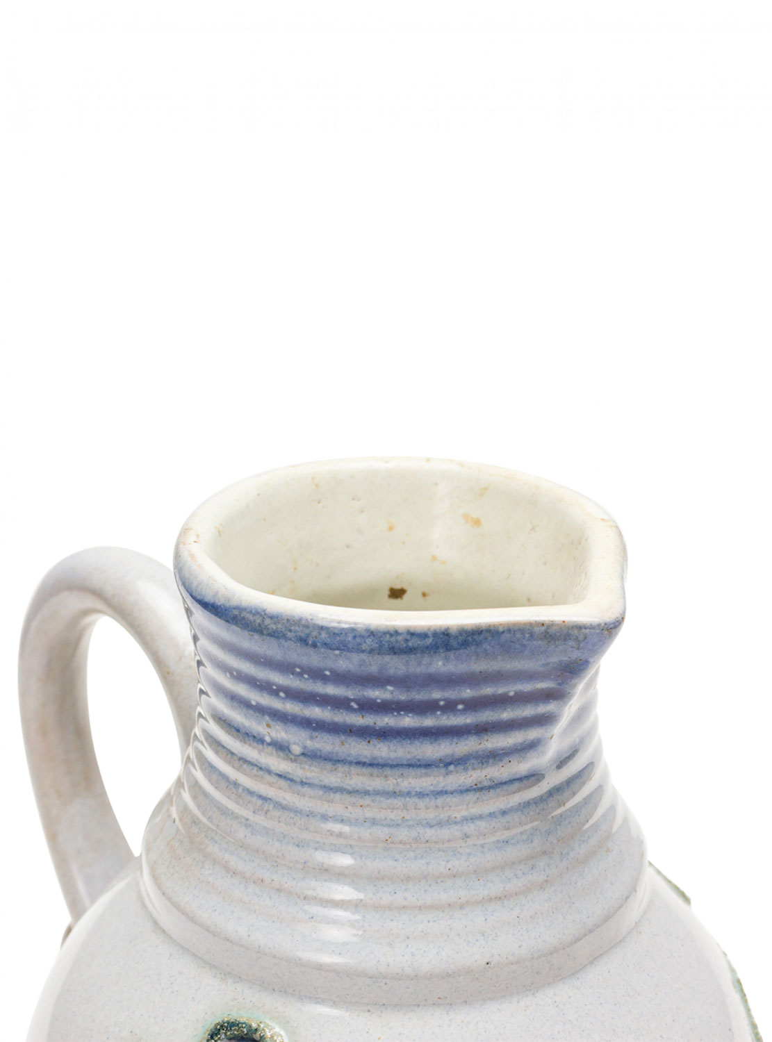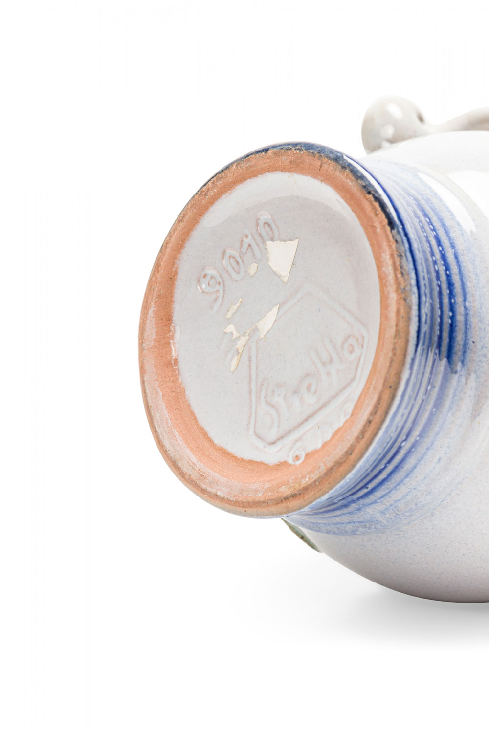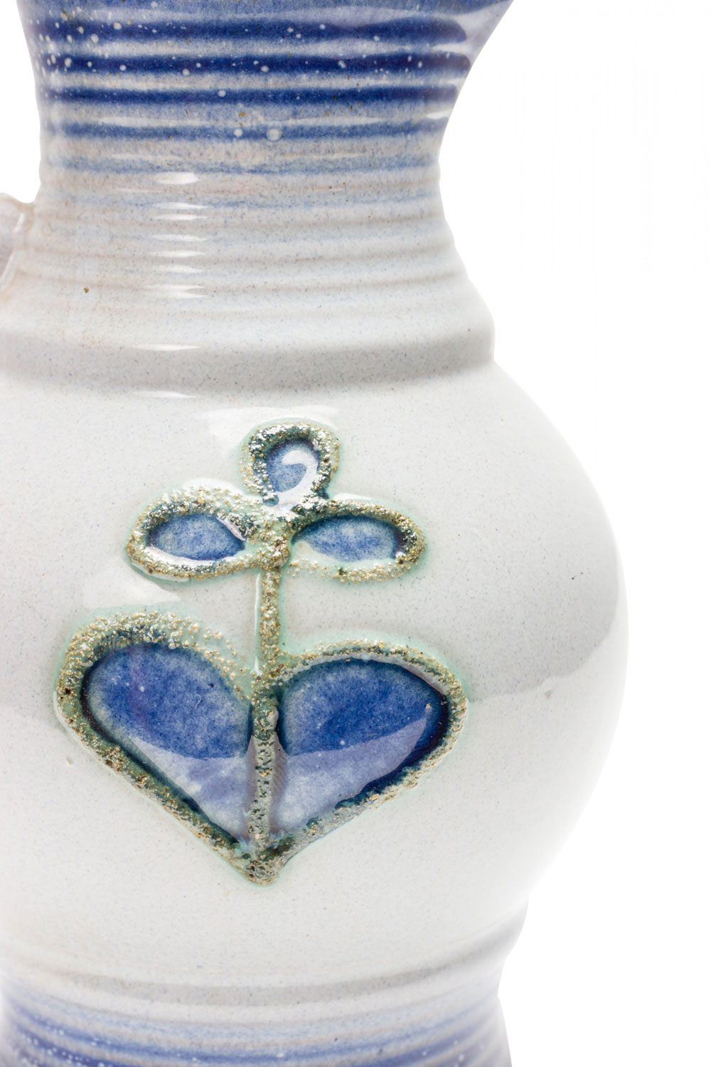 Strehla Keramik East German Mid-Century Raised Floral Design Blue and Gray Ceramic Pitcher