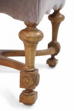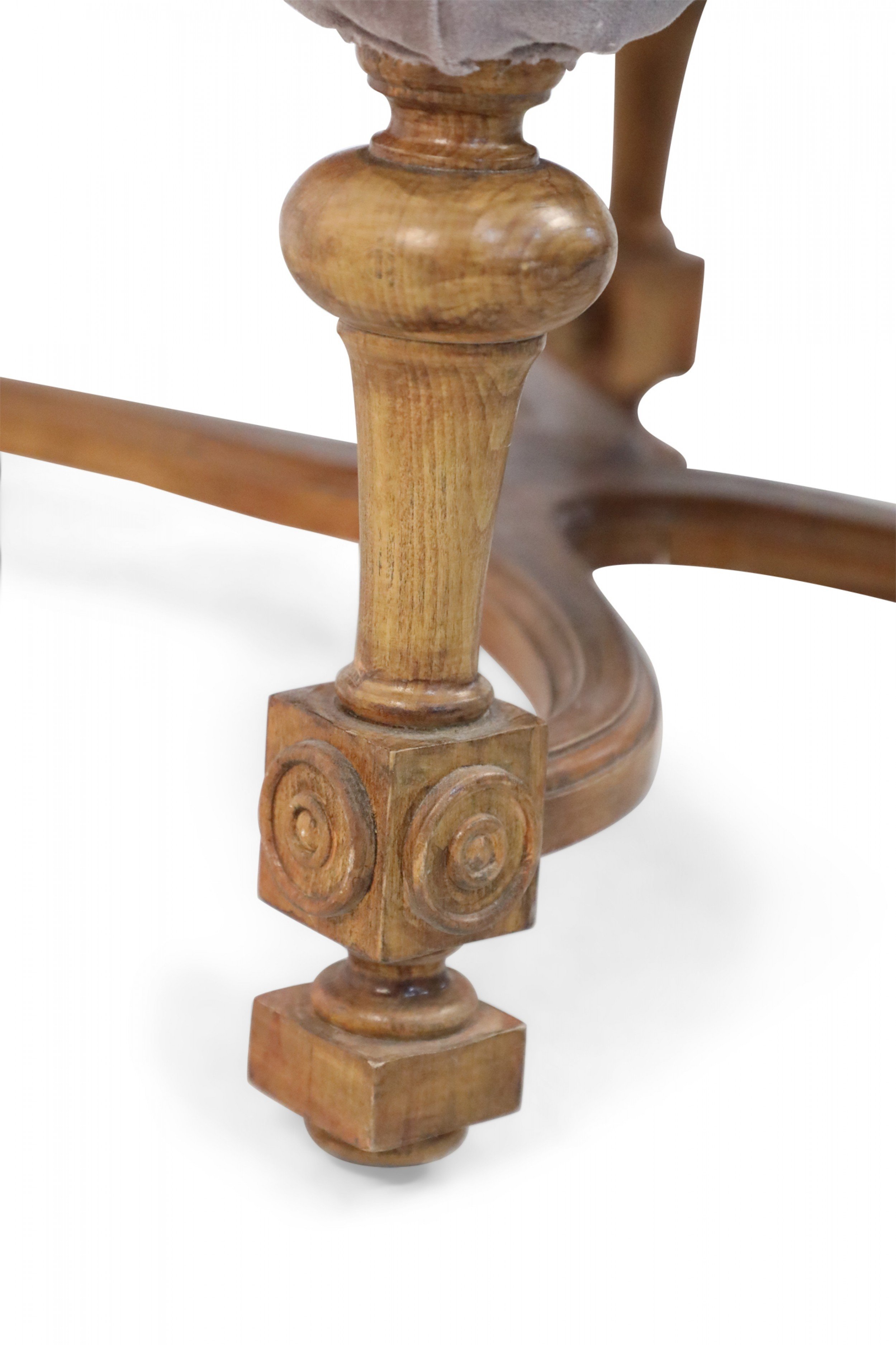 Style: Continental Materials & Techniques: Oak, upholstered, velvet, wood Category: Seating Good; Wear consistent with age and use