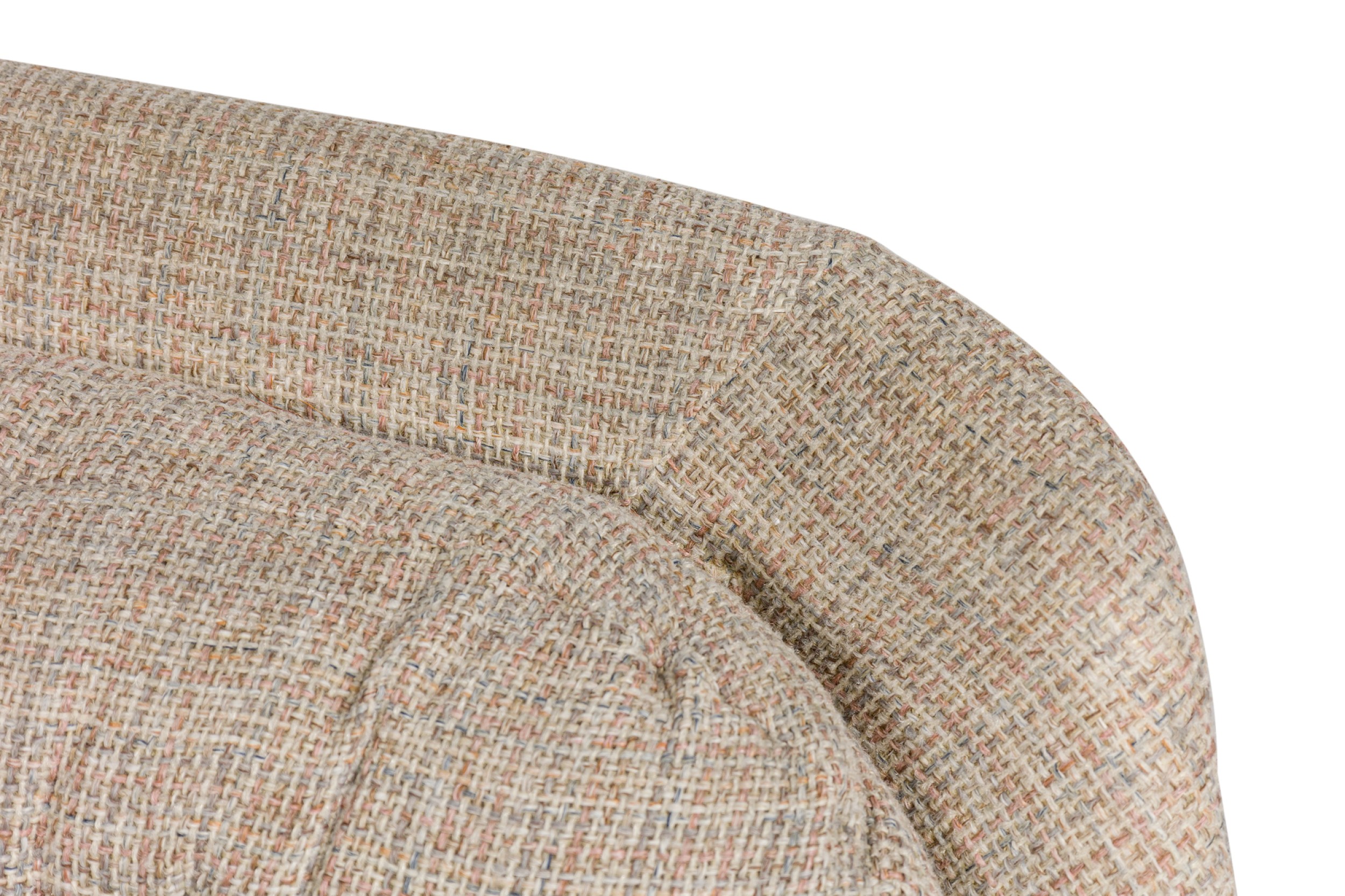 Swedish MCM 3-seat sofa in an off-white tweed blend with sewn-in tufted back and bolster cushions with floating style chrome base.