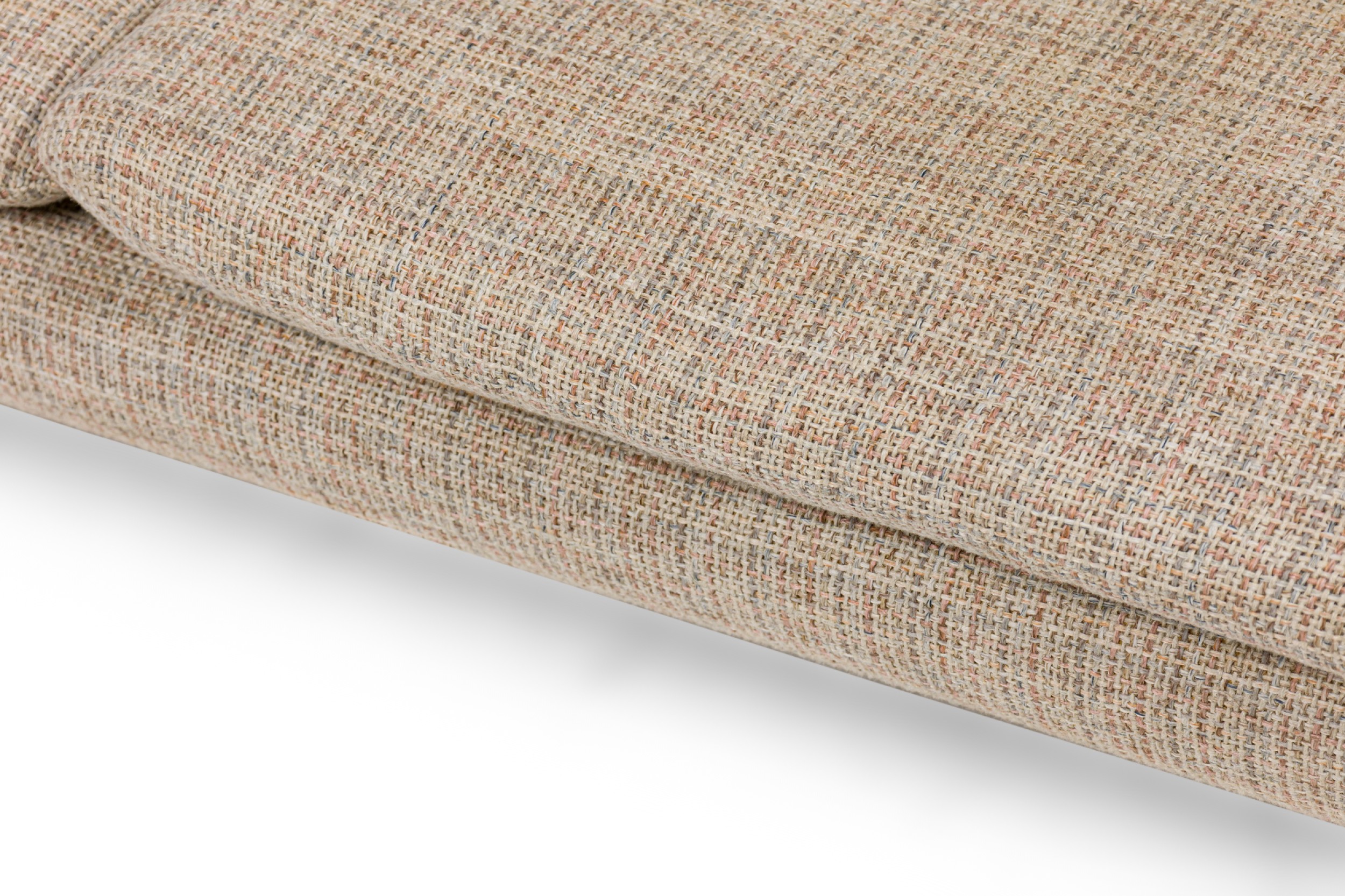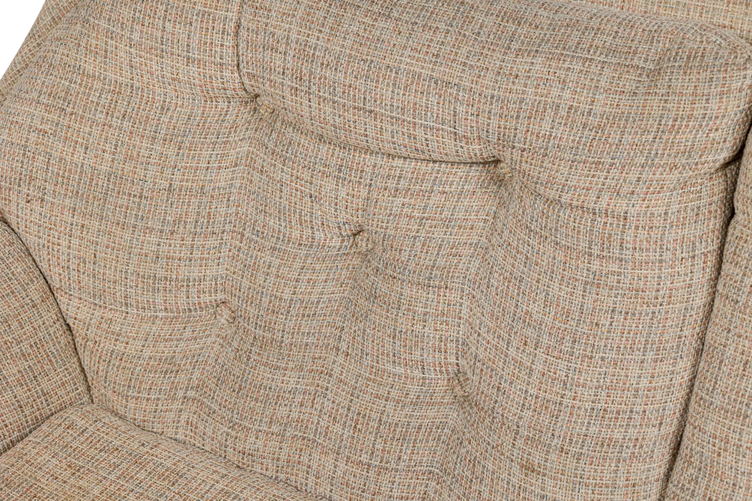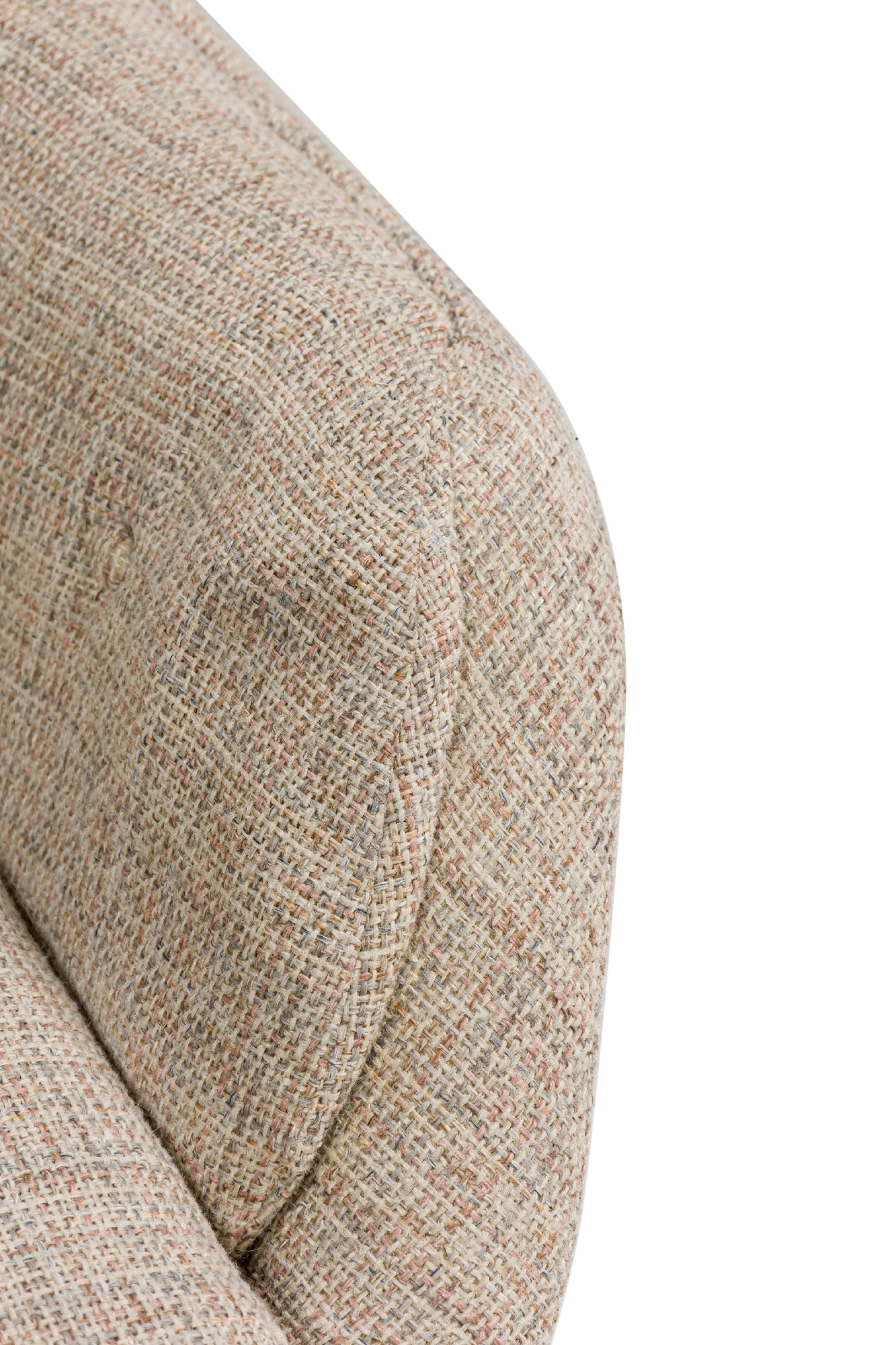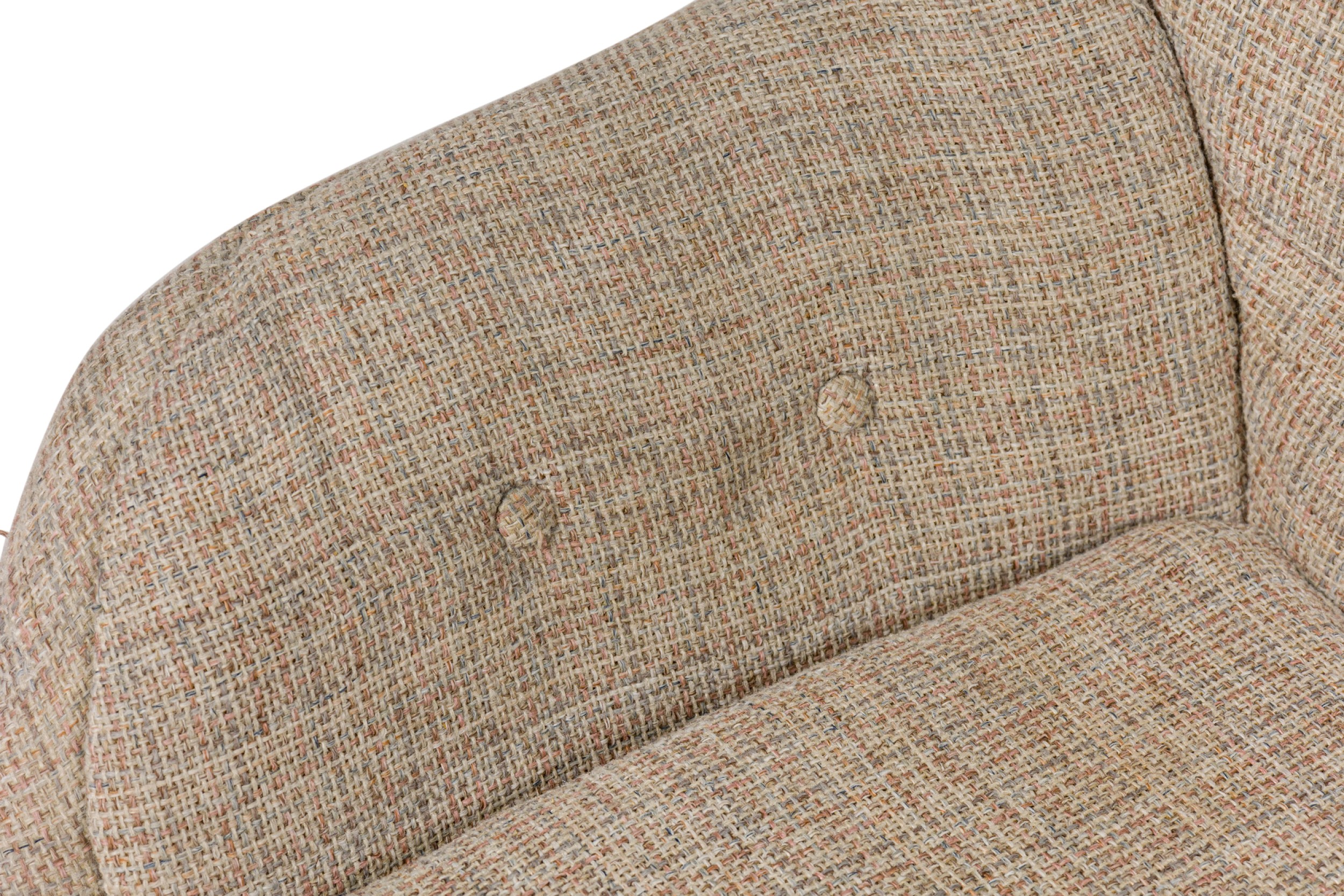Swedish MCM 3-seat sofa in an off-white tweed blend with sewn-in tufted back and bolster cushions with floating style chrome base