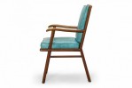 T.H. Robsjohn-Gibbings for Widdicomb American Mid-Century Walnut and Blue Vinyl Dining Armchair