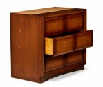 T.H. Robsjohn-Gibbings (1905-1976) was a renowned furniture and decorative arts designer of the mid-20th century. Born Terence Harold Robsjohn-Gibbings on March 17, 1905, in London, England, he later became known for his significant contributions to the field of modern design. Robsjohn-Gibbings initially pursued a career in architecture, studying at the Architectural Association School of Architecture in London. However, his passion for furniture and interior design soon led him to shift his focus. In the early 1930s, he relocated to New York City, where he began working as an interior designer and decorator. During his career, Robsjohn-Gibbings developed a unique design aesthetic characterized by clean lines, simplicity, and a focus on natural materials. He drew inspiration from classical Greek and Egyptian designs, combining elements of antiquity with modern sensibilities. His furniture pieces often featured bold geometric shapes, solid wood construction, and minimal ornamentation. In 1936, Robsjohn-Gibbings gained widespread recognition with the publication of his book "Goodbye, Mr. Chippendale: Being a Series of Occasional Observations on the Manners and Customs of the People Who Make Furniture." This influential work criticized the prevailing taste for ornate and heavily carved furniture, advocating for a more streamlined and contemporary approach. Robsjohn-Gibbings' career flourished in the 1940s and 1950s, during which he collaborated with prestigious clients such as Doris Duke, Elizabeth Arden, and Helena Rubinstein. His designs were sought after by affluent individuals who appreciated his ability to create elegant and functional interiors. In addition to his work as a furniture designer, Robsjohn-Gibbings also ventured into other creative endeavors. He designed textiles, ceramics, and even ventured into the realm of theater and film set design. His versatility and artistic vision allowed him to leave a lasting impact on various aspects of the decorative arts. Throughout his career, Robsjohn-Gibbings received numerous accolades and honors for his contributions to the field of design. His work was exhibited in prestigious museums and galleries, including the Metropolitan Museum of Art in New York City. He also served as the president of the American Institute of Decorators from 1940 to 1942. T.H. Robsjohn-Gibbings passed away on March 6,