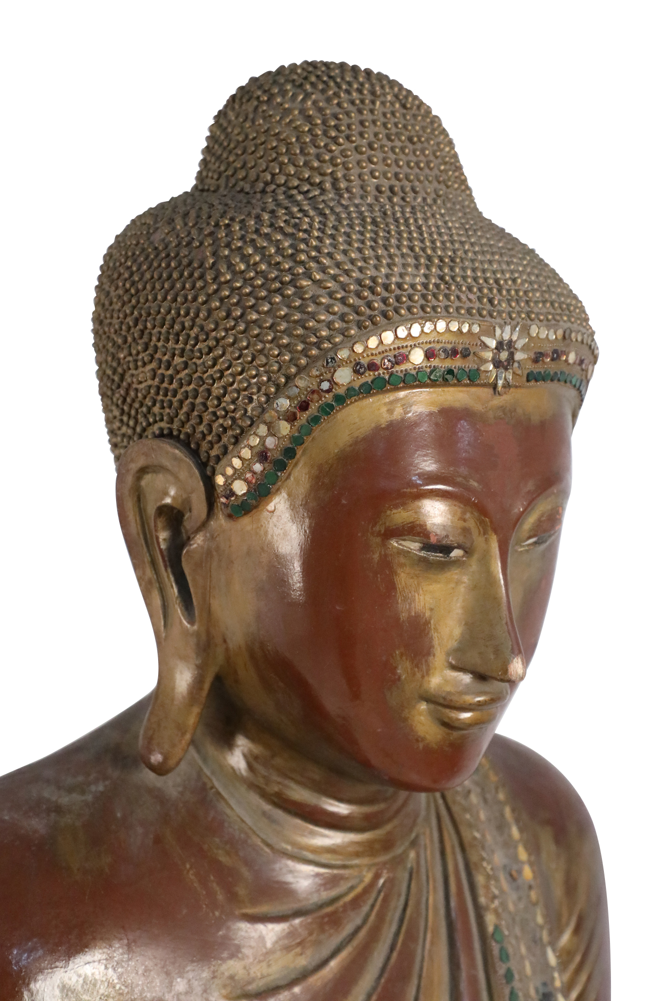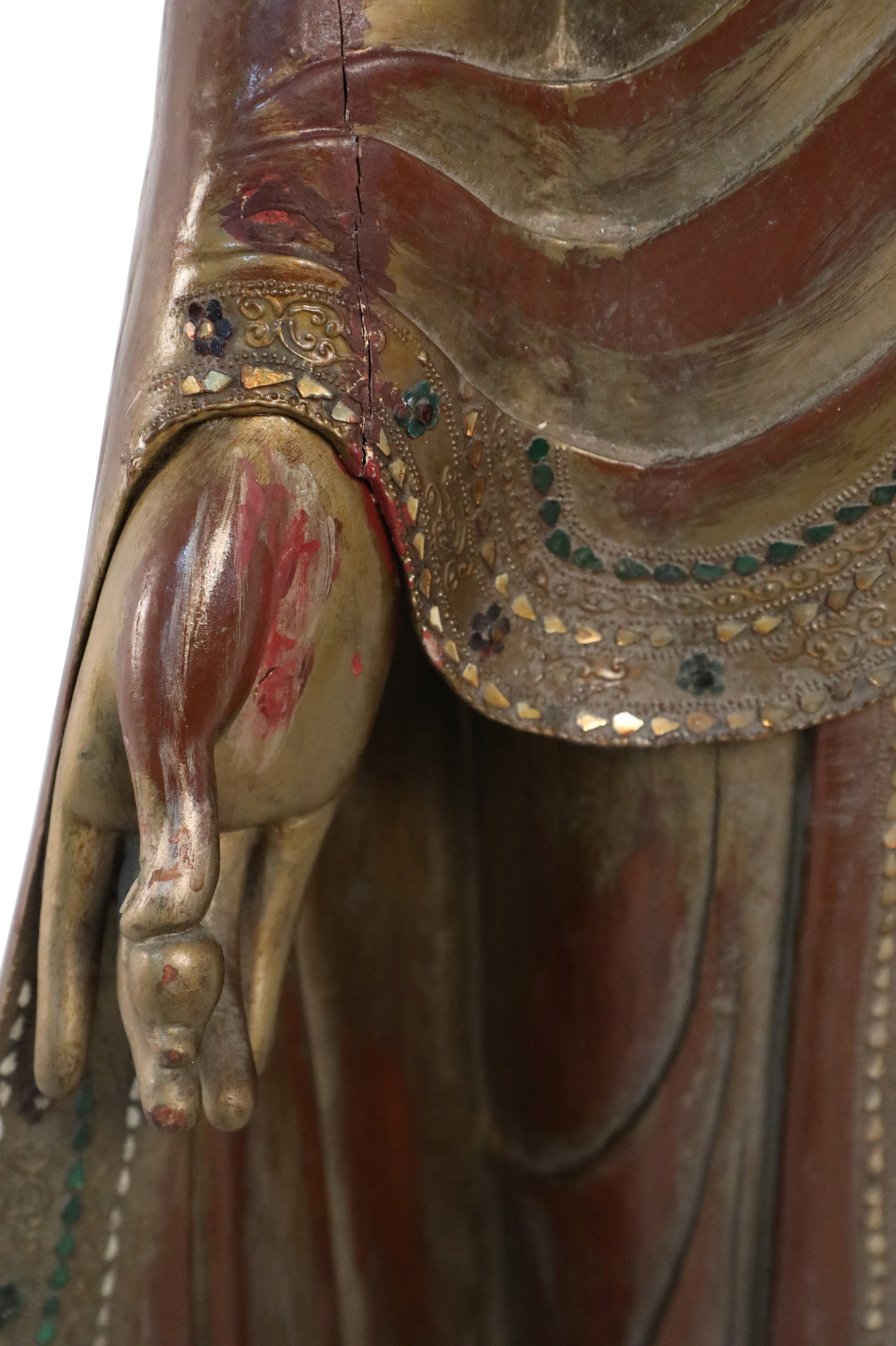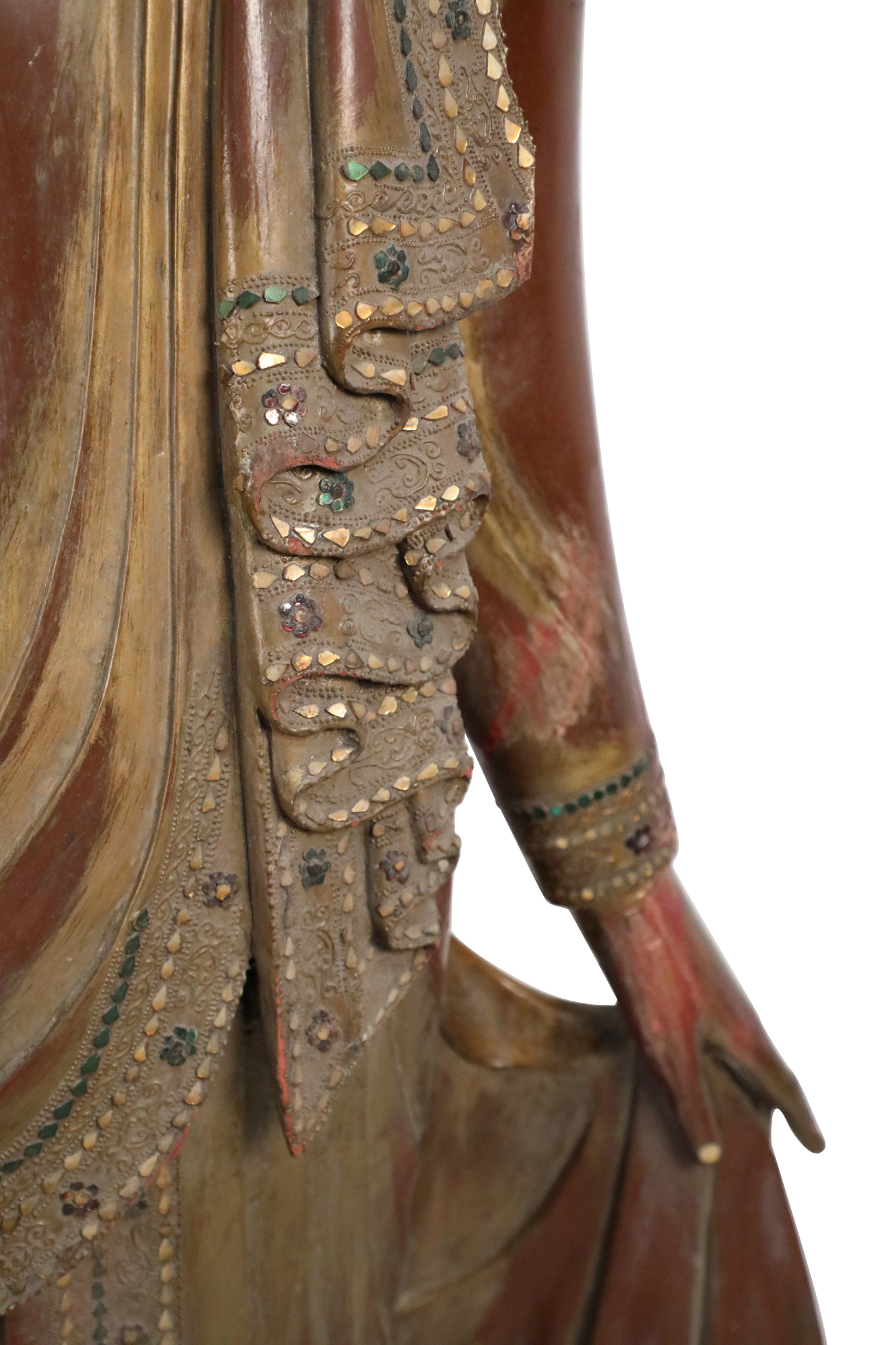 Thai Gold and Red Wooden Bodhisattva Statues