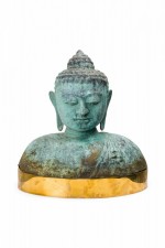 Tibetan Patinated Bronze and Brass Buddha Bust