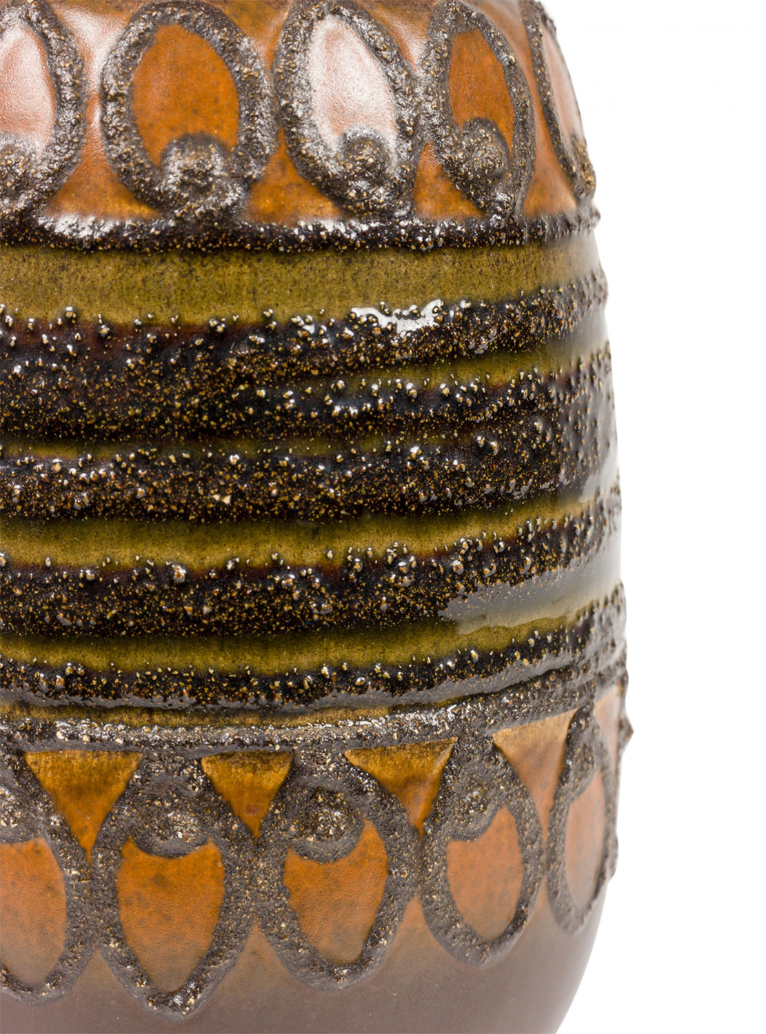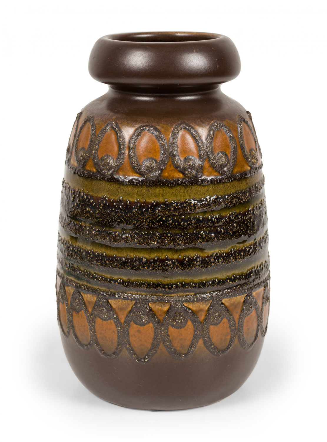 VEB Haldensleben Keramik German Mid-Century Raised Black Textured Banded Design and Brown Glazed Vas