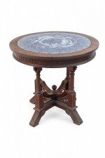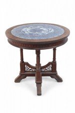 Victorian Oak and Chinese Porcelain Inlay Center Table