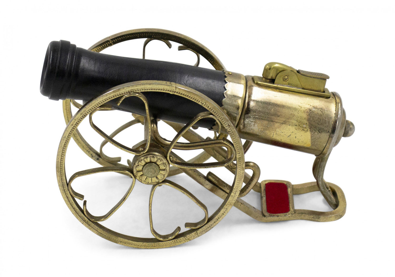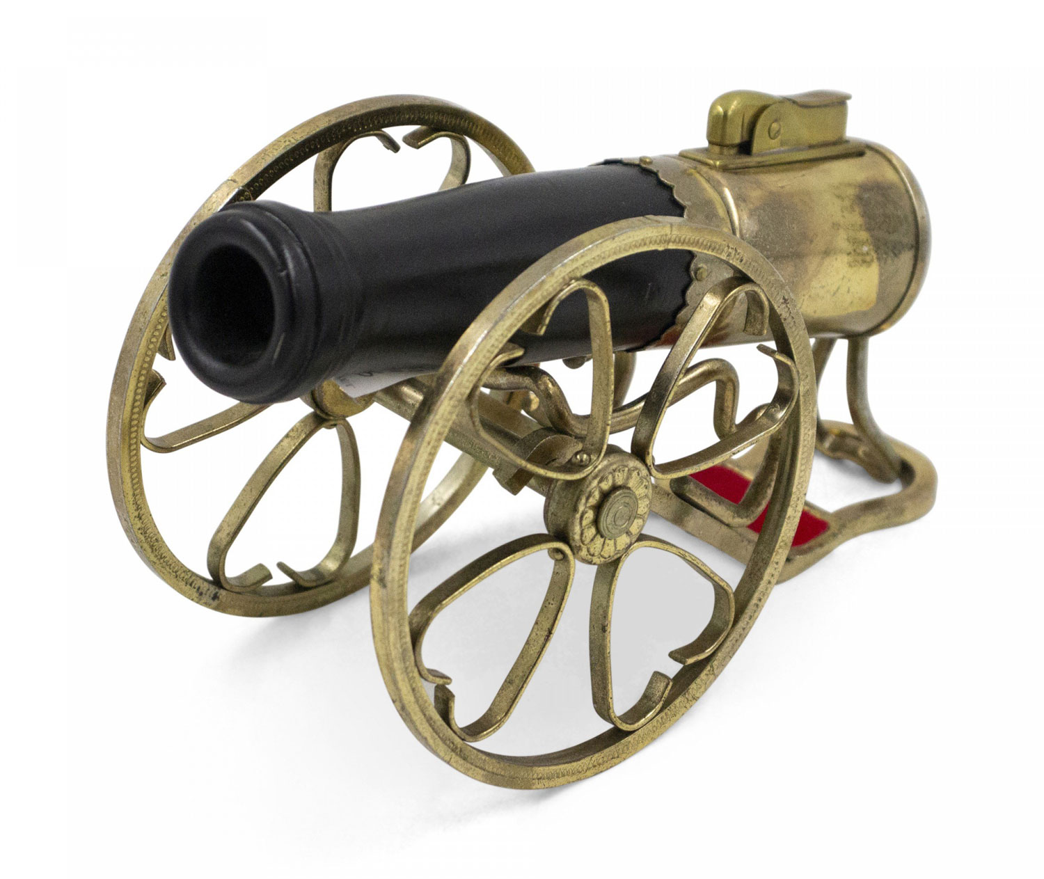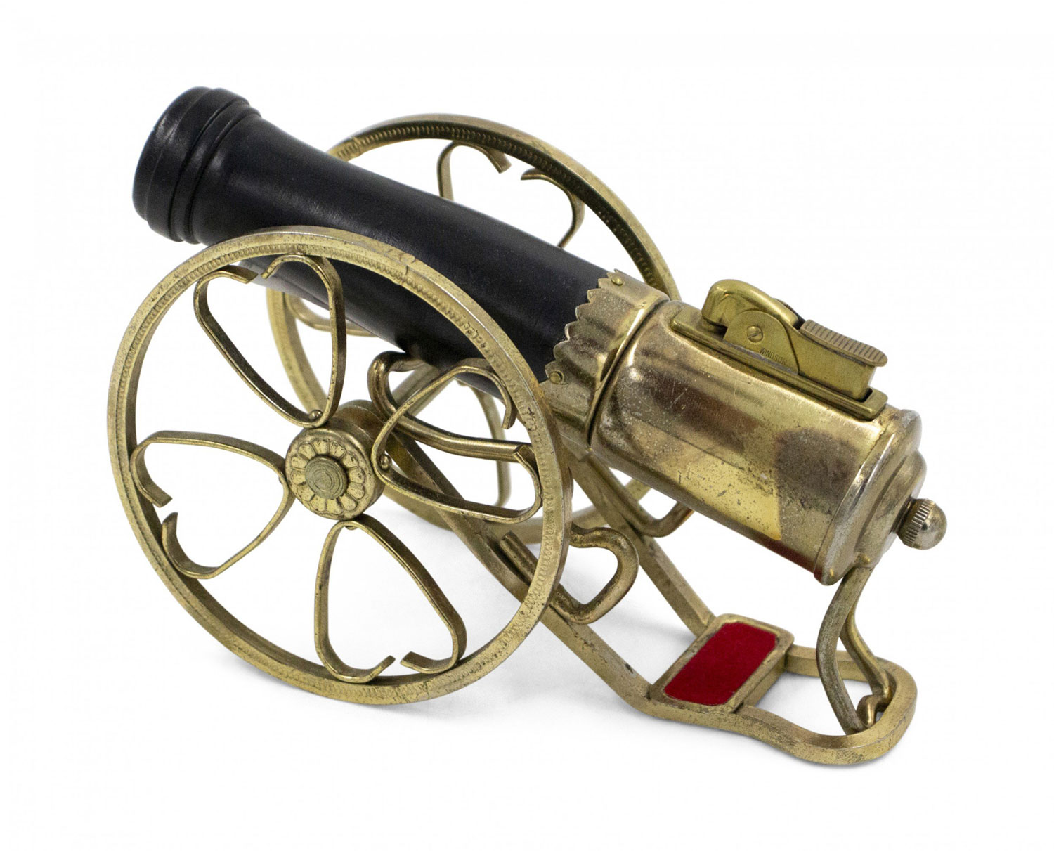 Vintage cannon shaped iron and brass novelty table lighter..