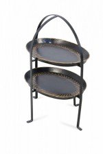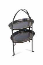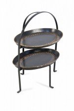 Vintage Chinese Black Two-Tiered Tole Oval Server