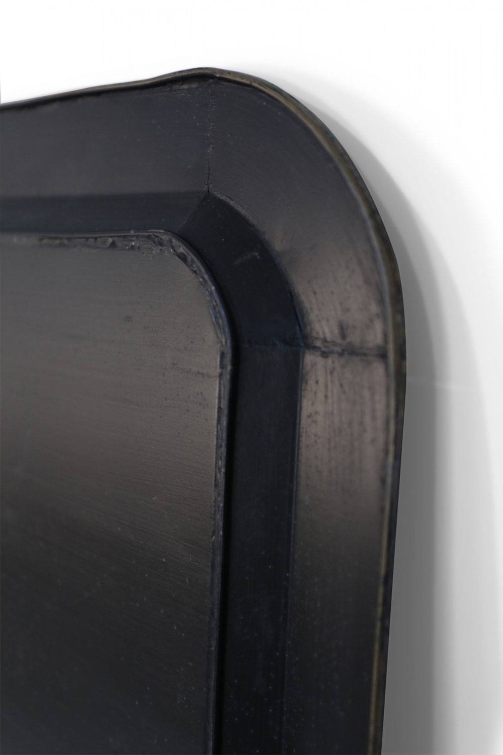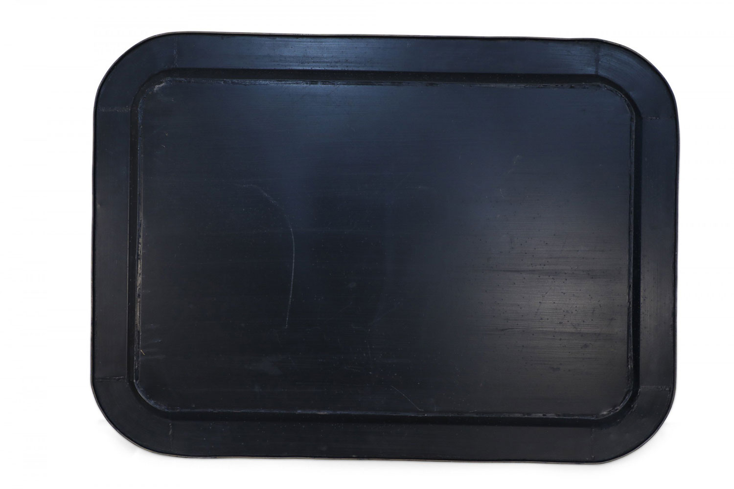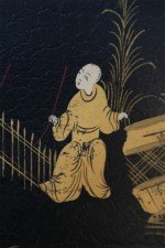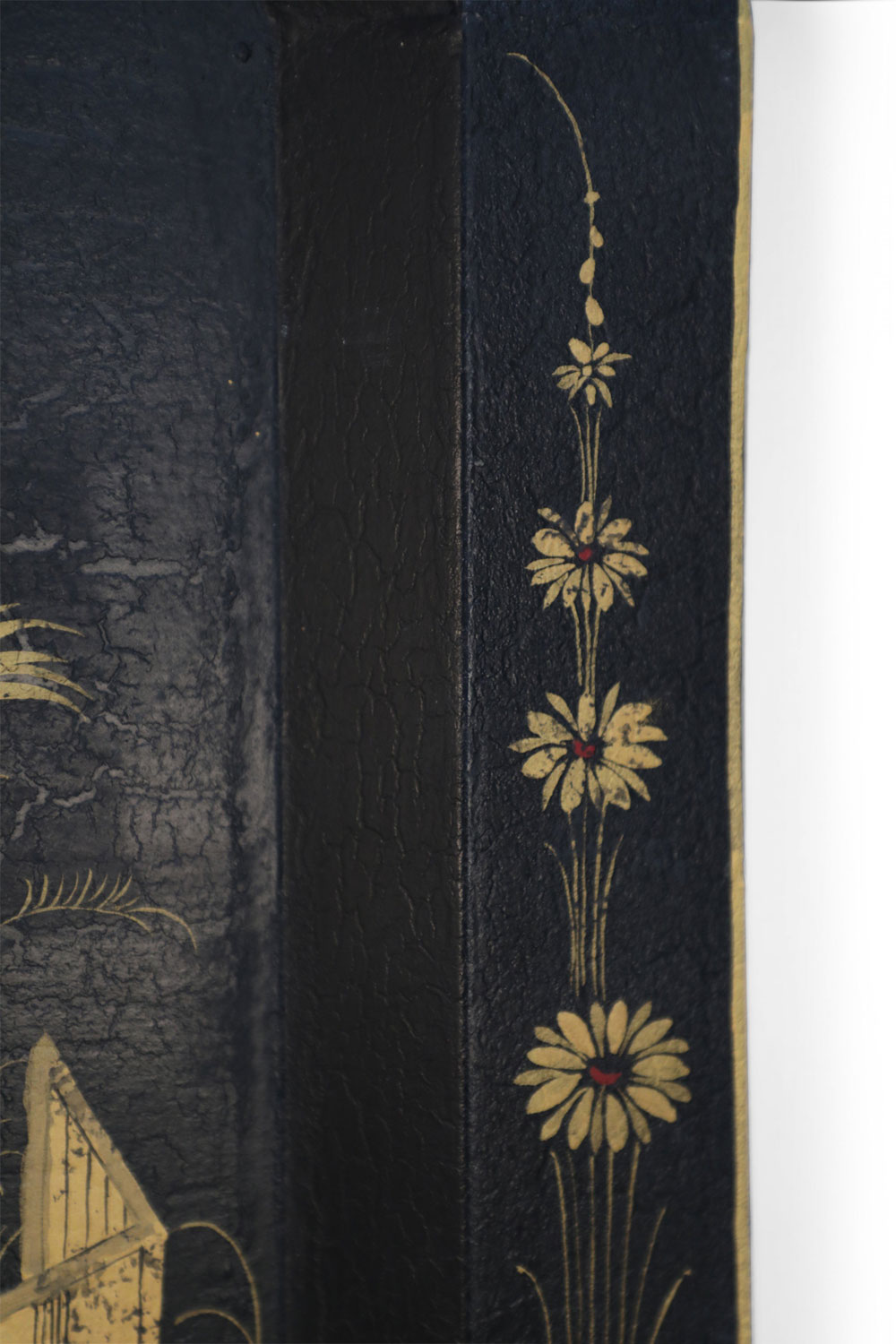 Vintage Chinese Rectangular Tole Black and Gold Monestary Scene Tray