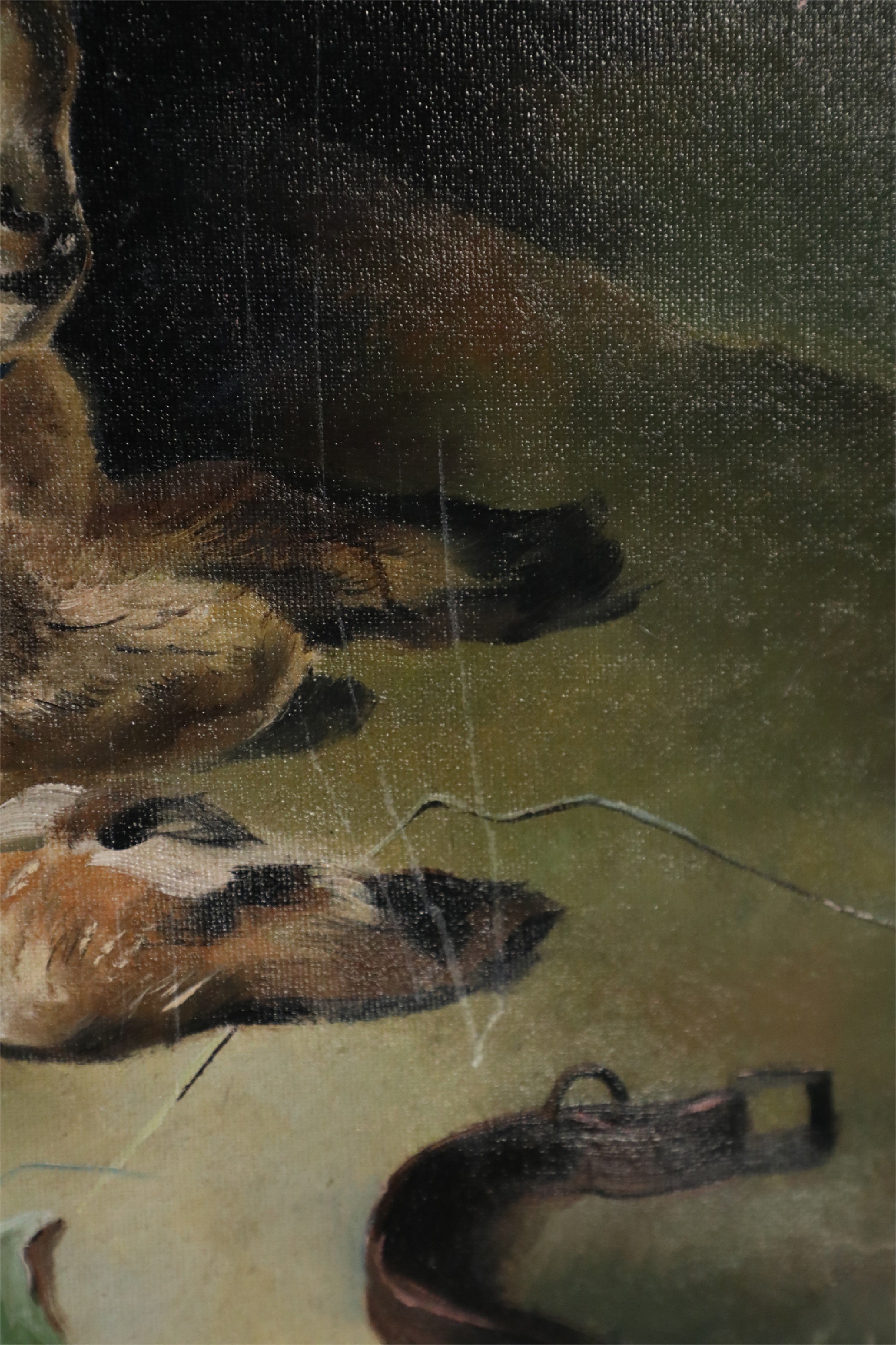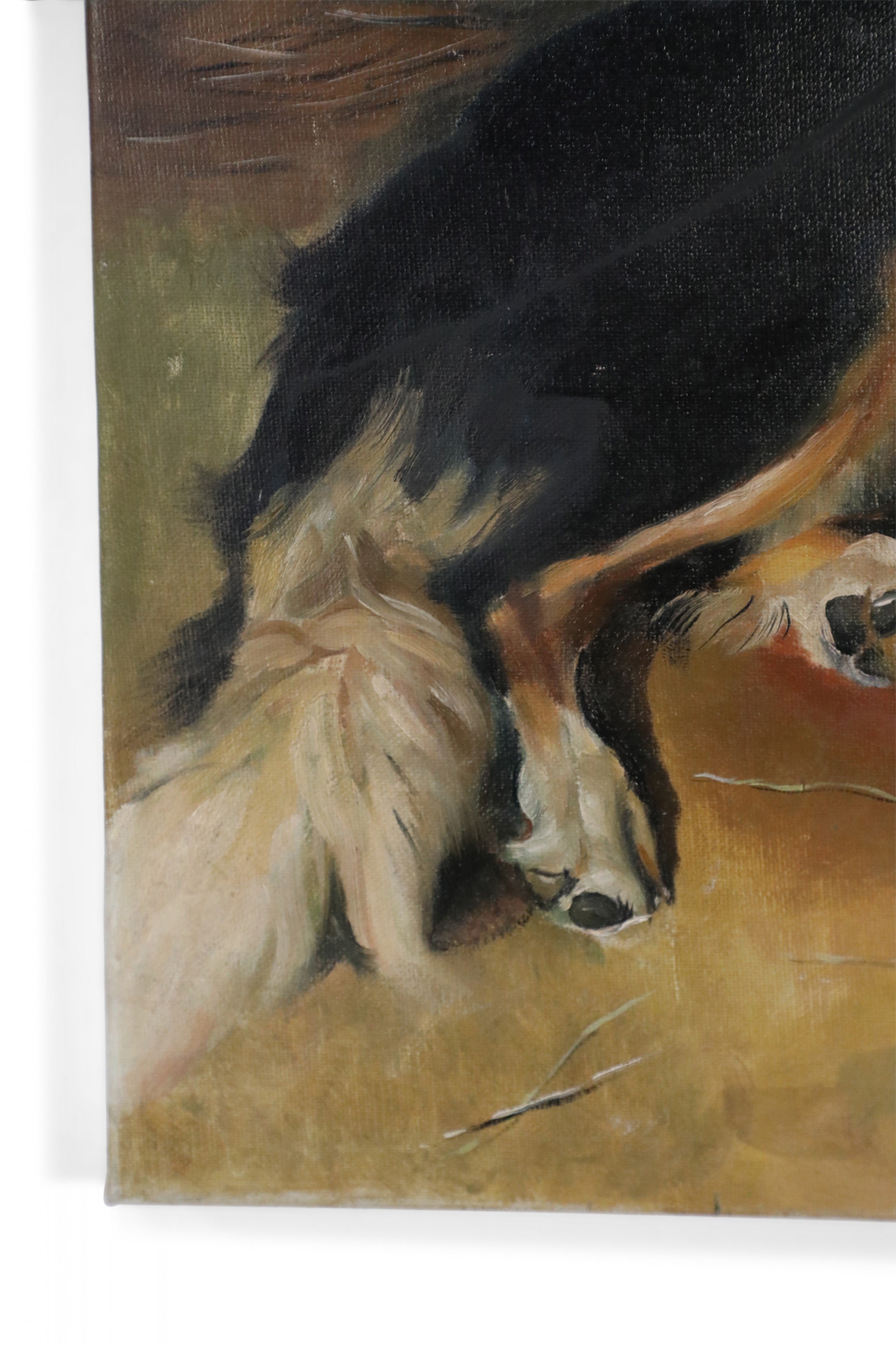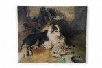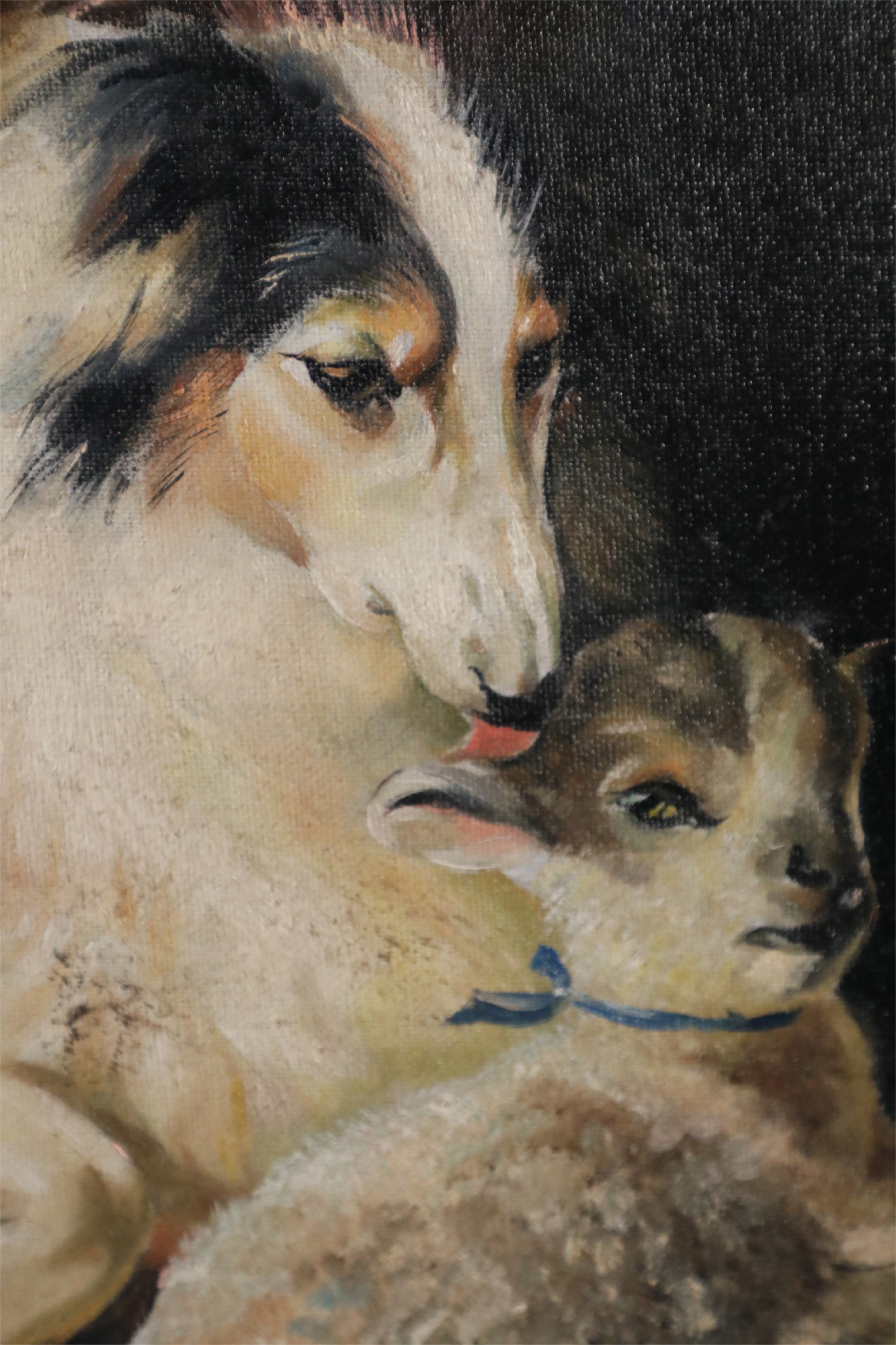 Vintage Dog and Lamb Oil Painting on Canvas