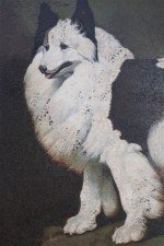 Vintage Oval Tole Fluffy Black and White Dog Portrait Serving Tray