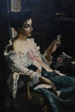 Vintage Victorian Woman at Desk Oil Painting on Canvas