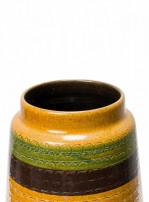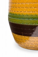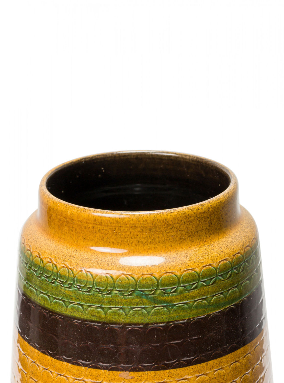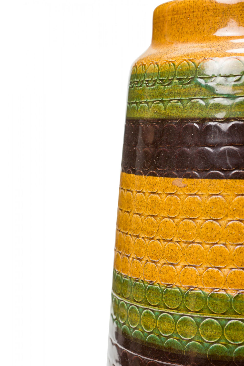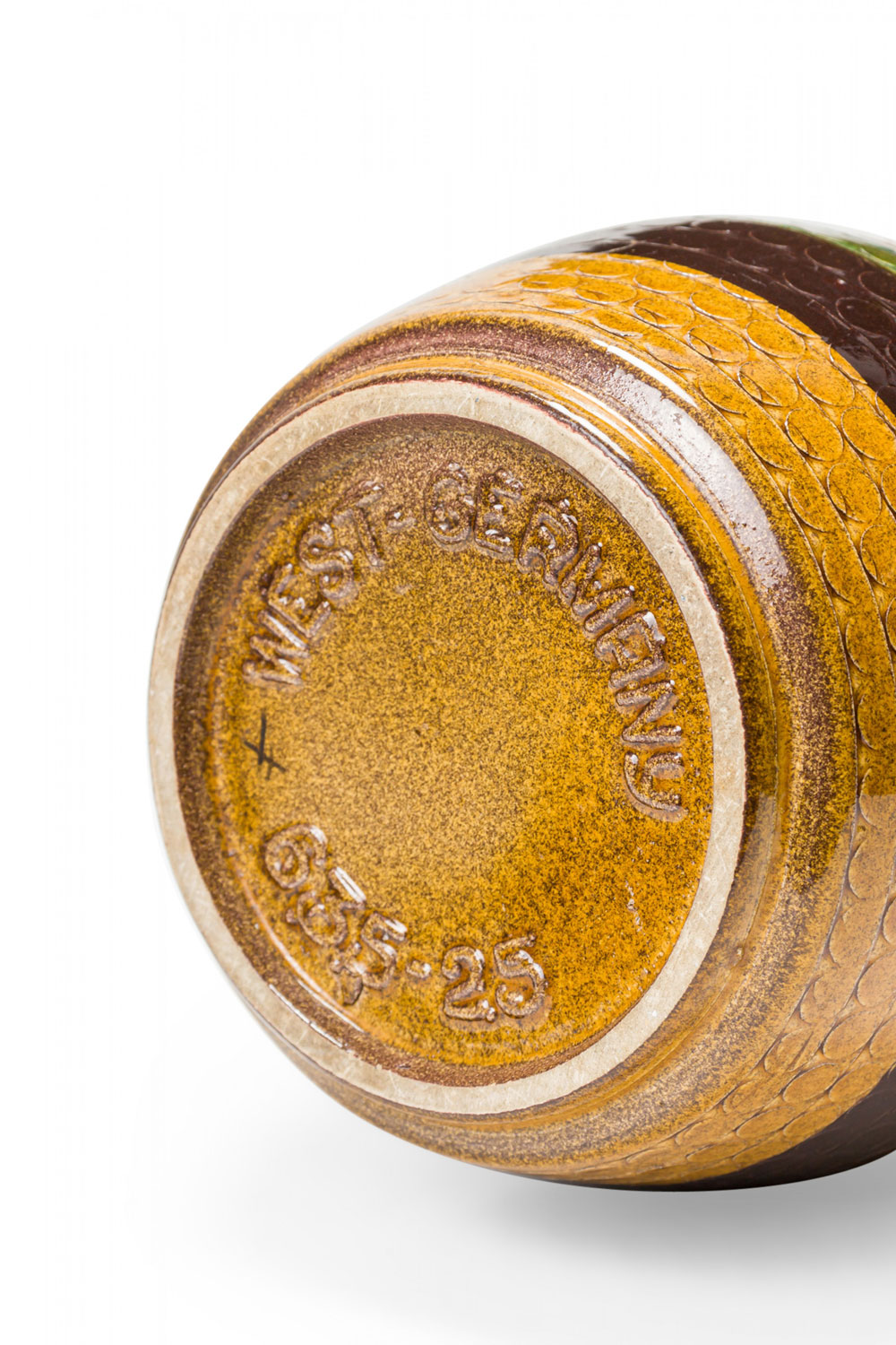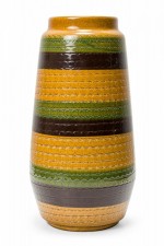 West German Mid-Century Brown Gold and Green Textured Striped Glazed Ceramic Vase