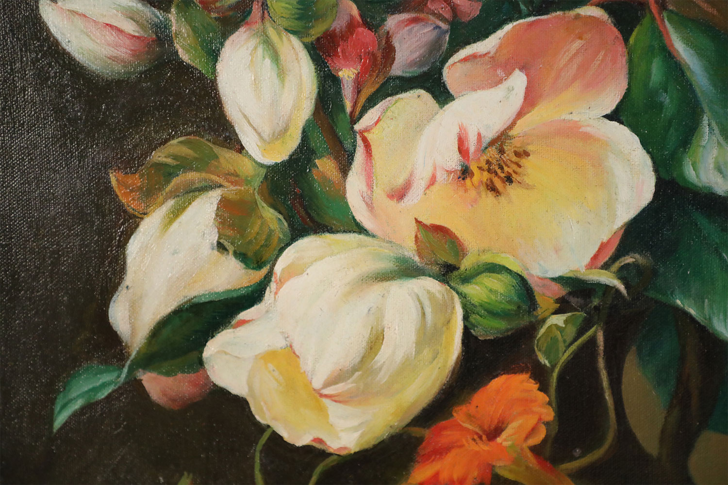 White and Pink Floral Arrangement Still Life Painting on Canvas