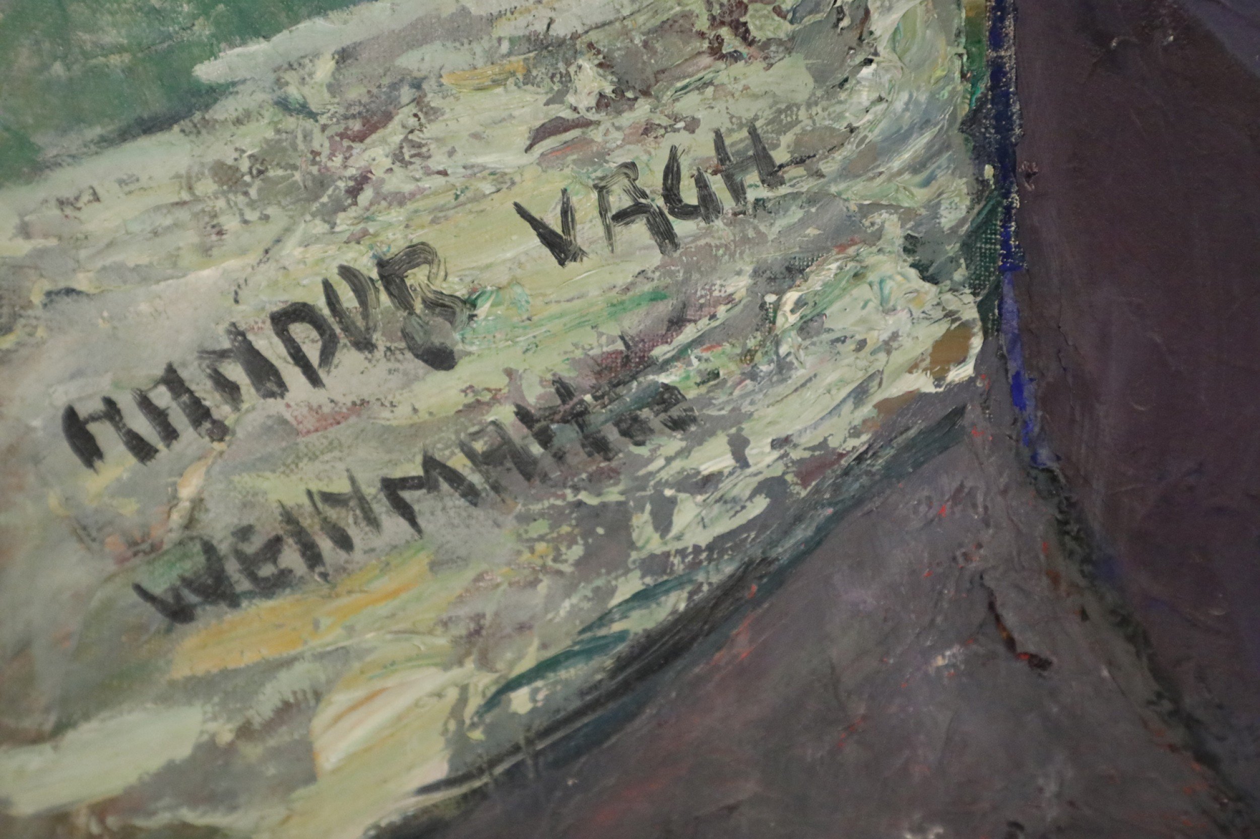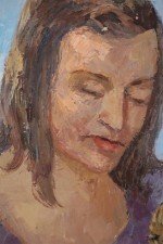 Style: Mid-Century Materials & Techniques: Canvas, giltwood, wood Category: Cleared Art Condition: Minor losses to frame finish.