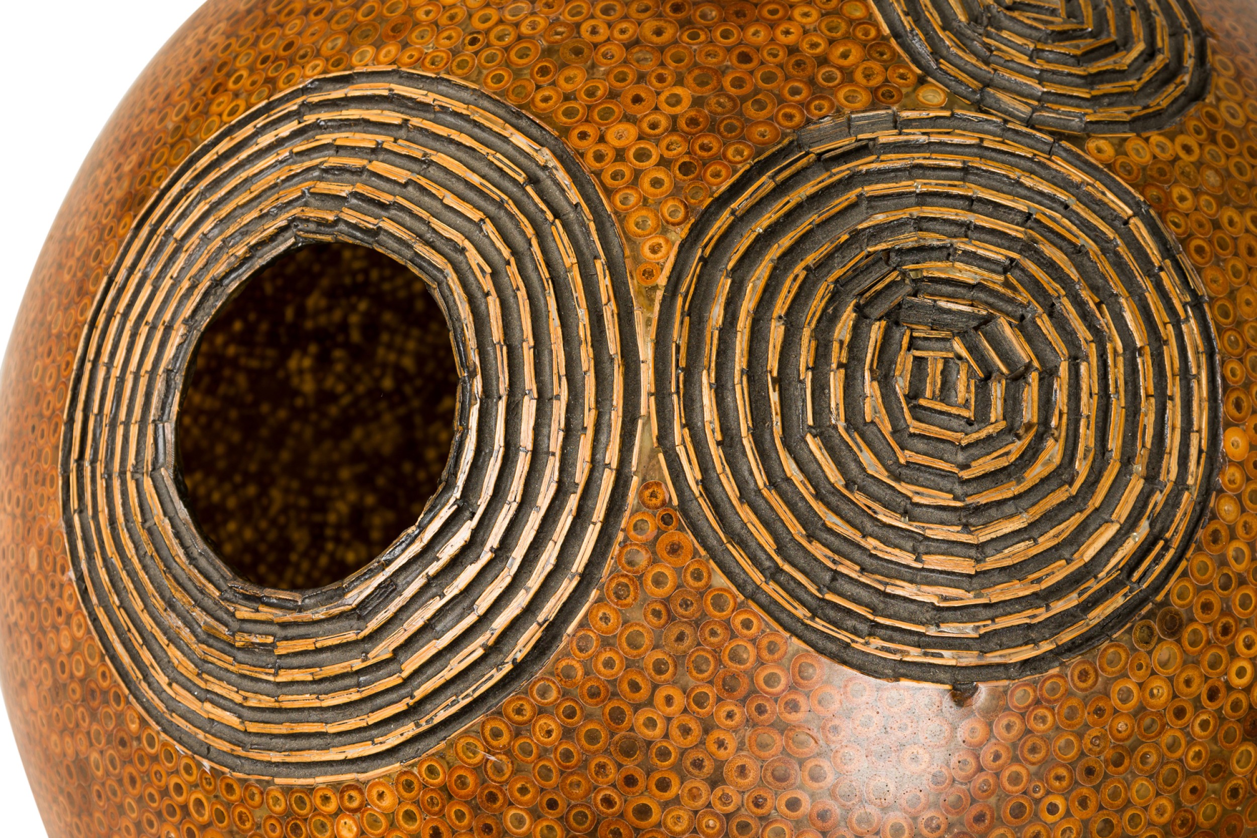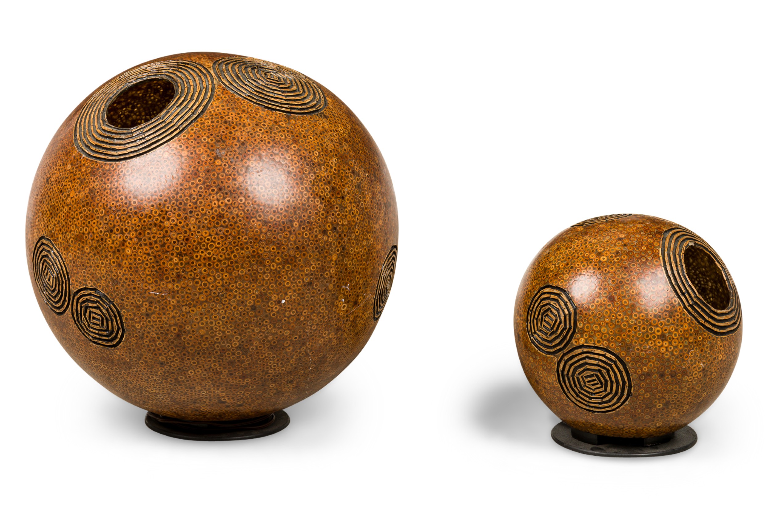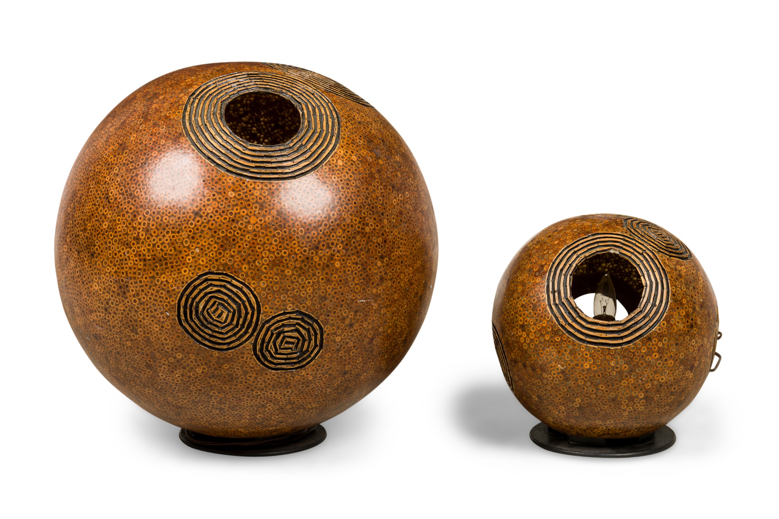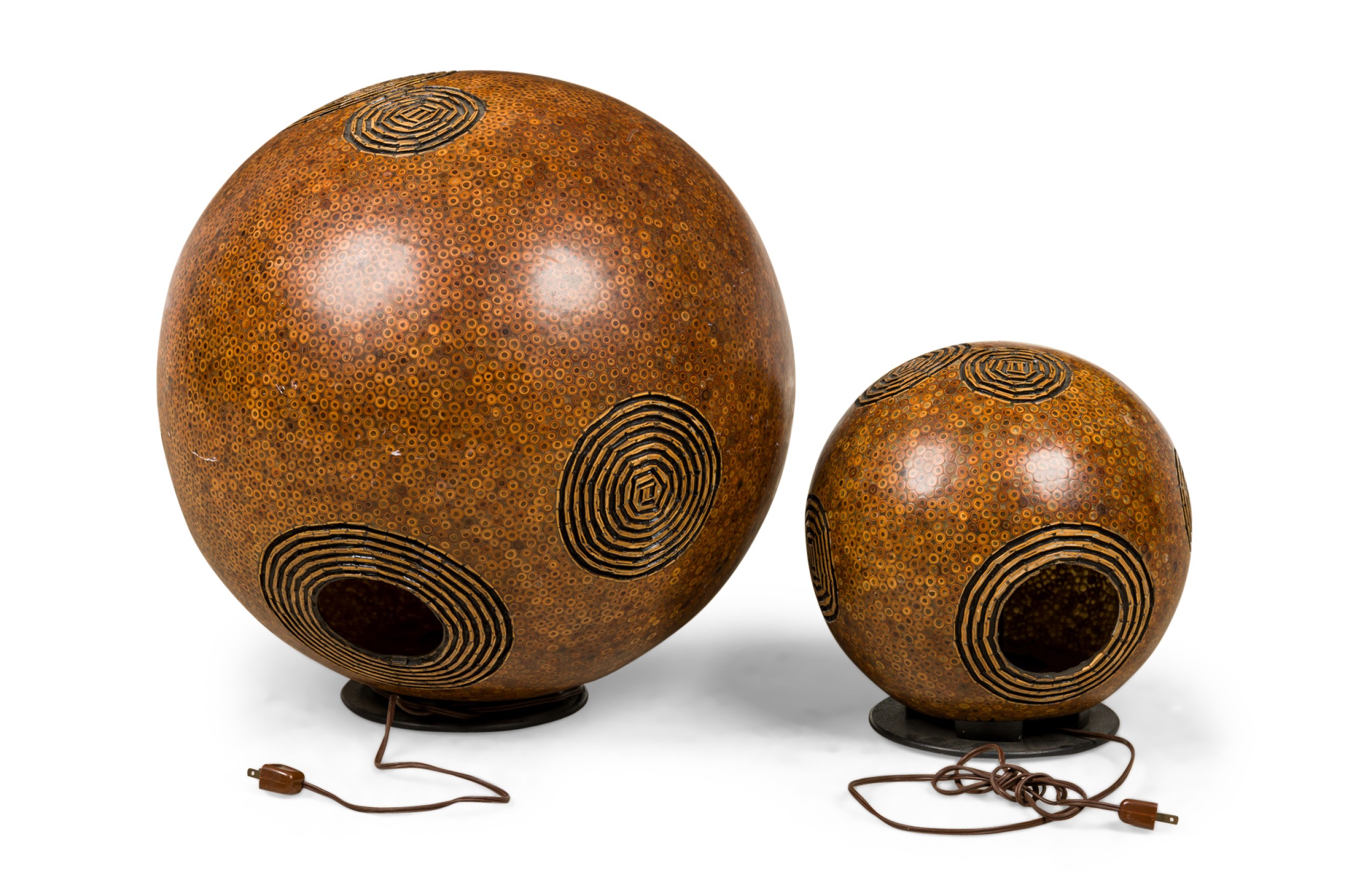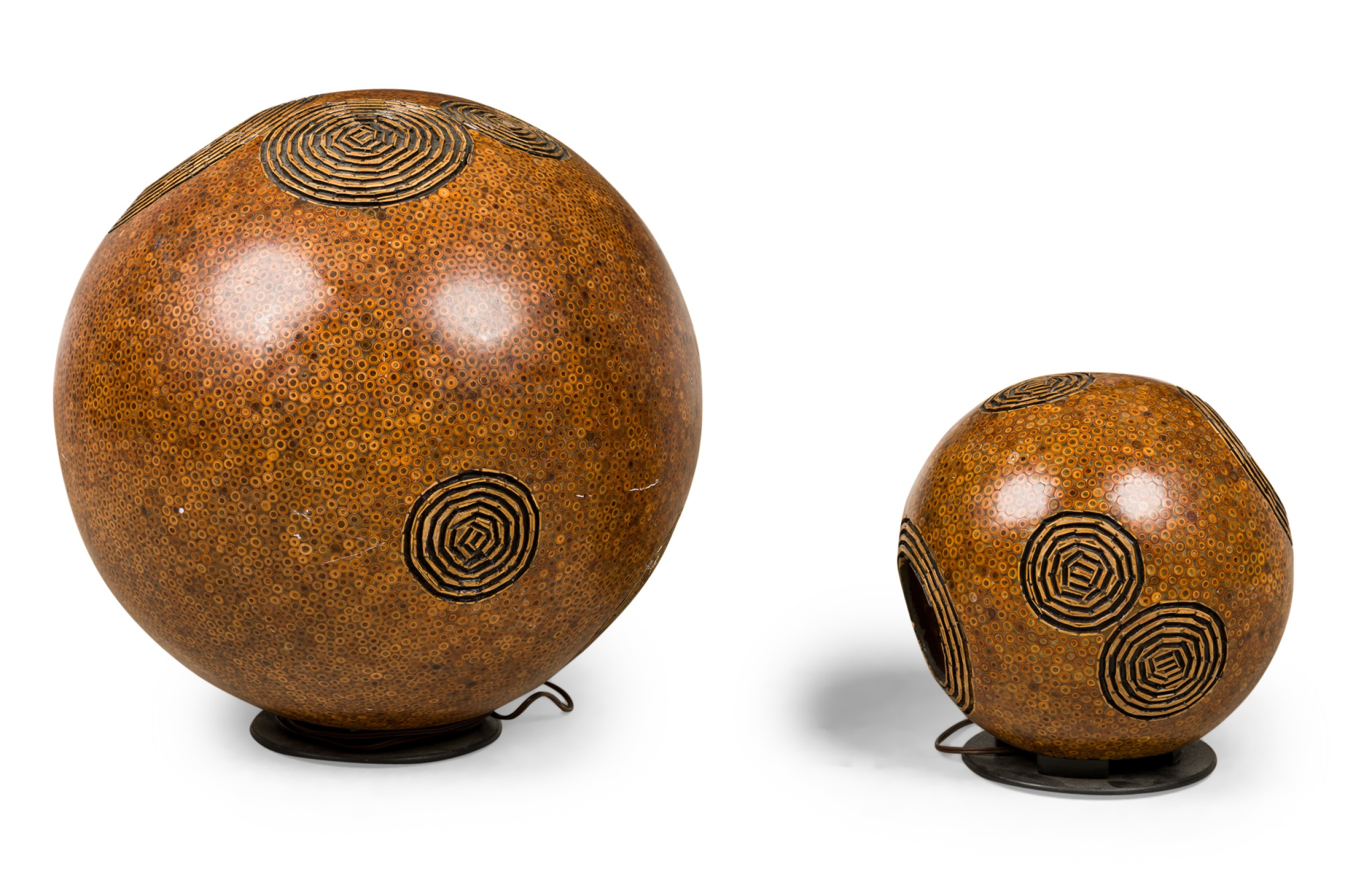 A Set of 4 American Modern Bamboo and Resin Composite Sphere Lights.
