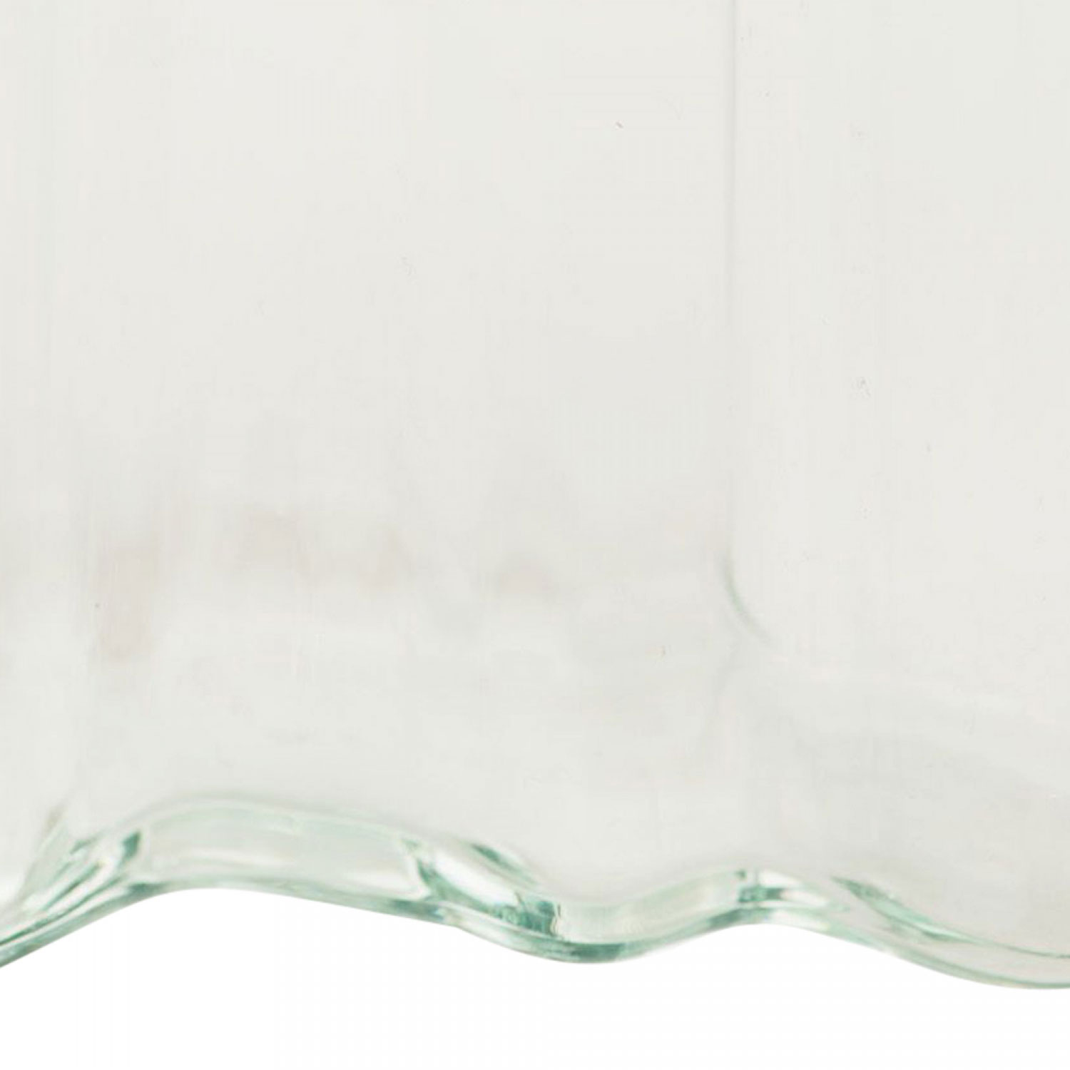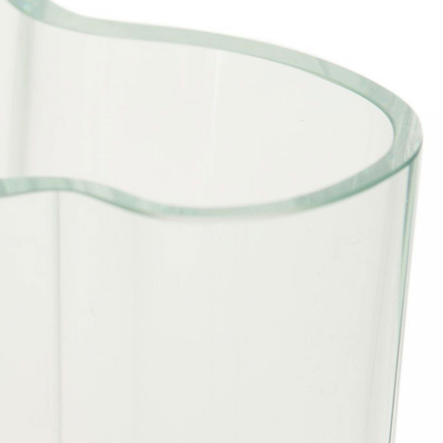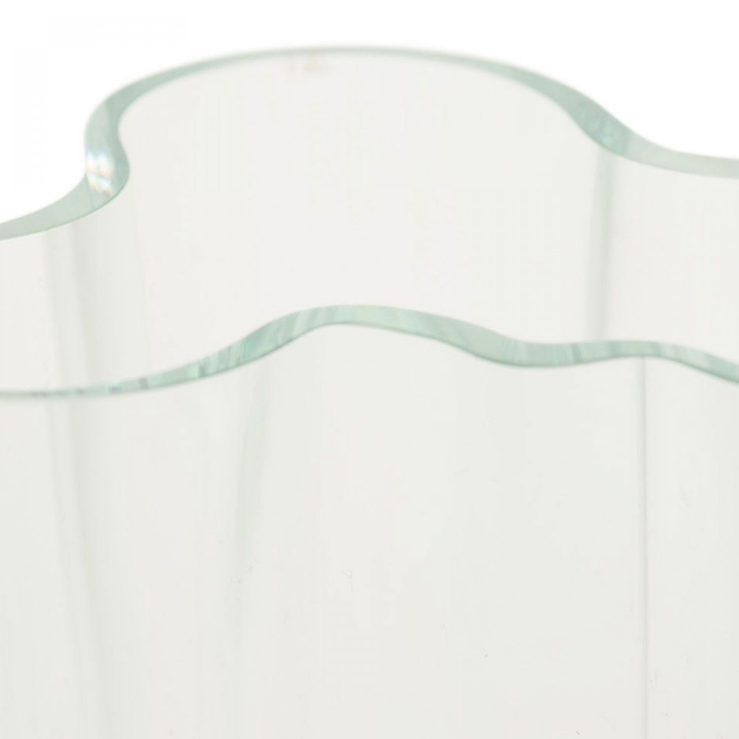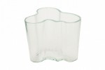 Clear, irregularly-shaped glass vase signed "Alvar Aalto 1998".
