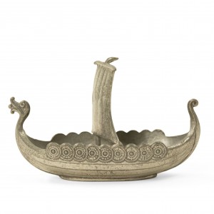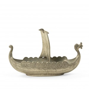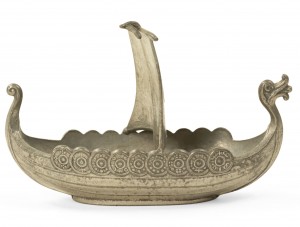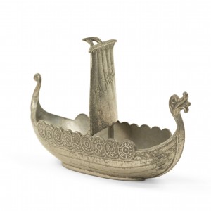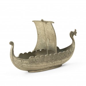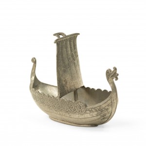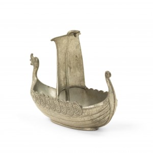 Small pewter viking ship with "Norge" embossed on the sail