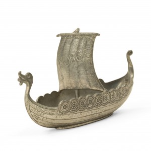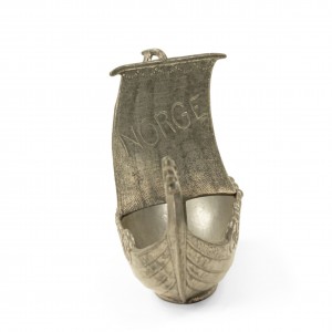 Small pewter viking ship with "Norge" embossed on the sail.