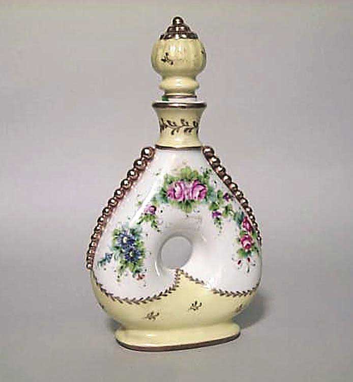 French Victorian style white-and-yellow porcelain shaped perfume bottles