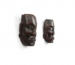 PAIR of African (20th Century) carved wood mask wall plaques (PRICED AS PAIR).