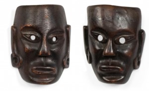 PAIR of African (20th Century) carved wood mask wall plaques (PRICED AS PAIR)..