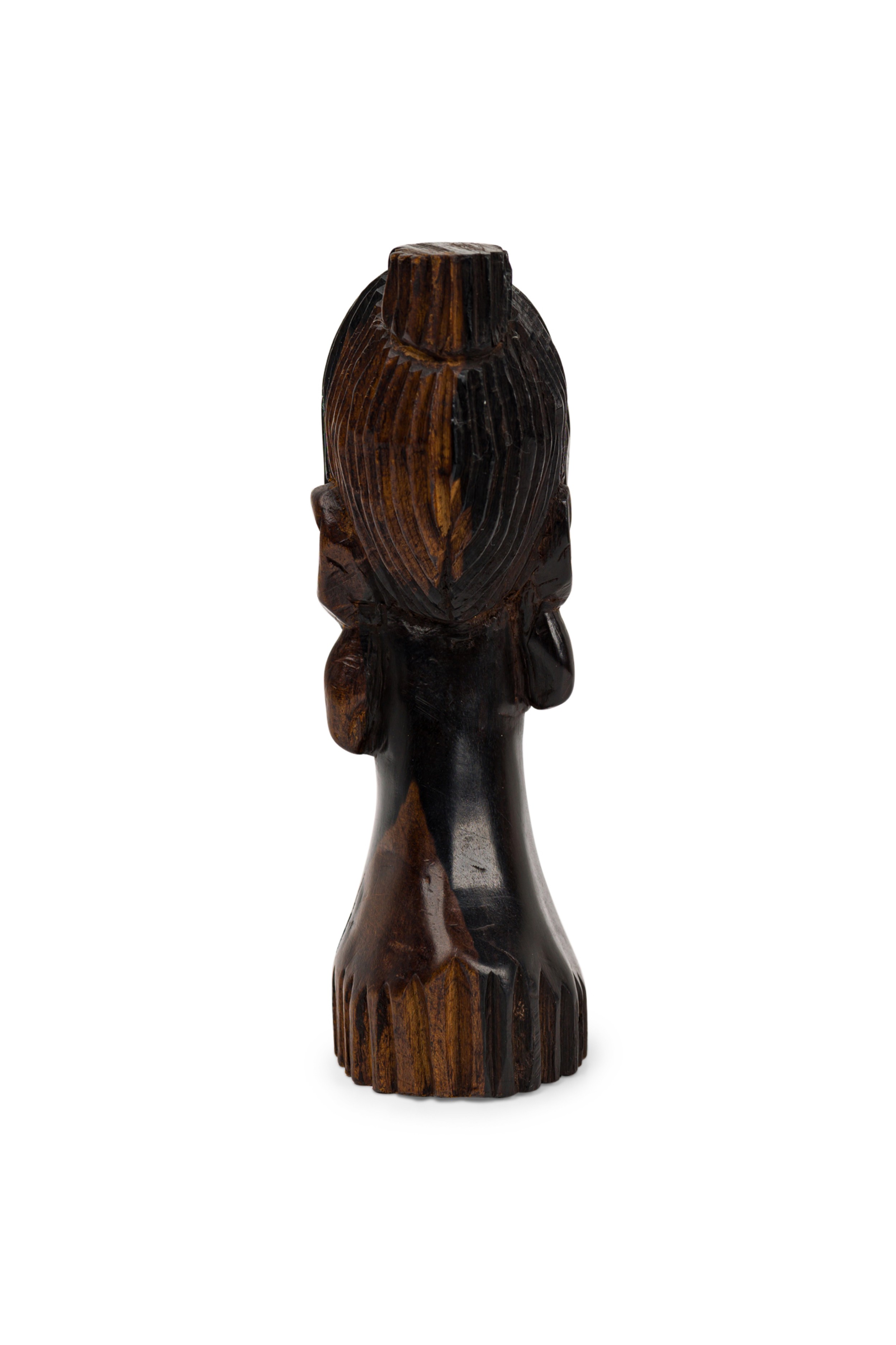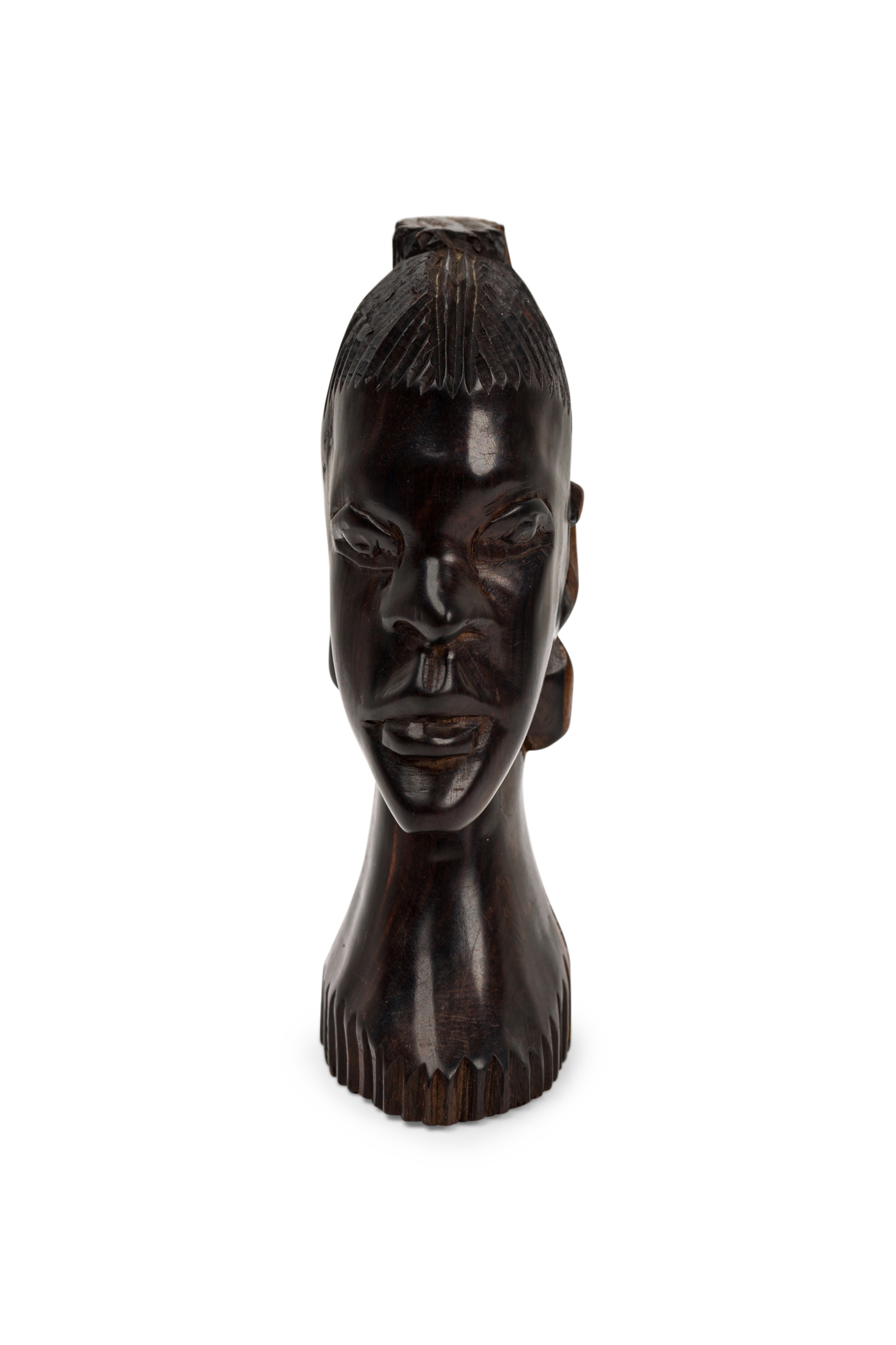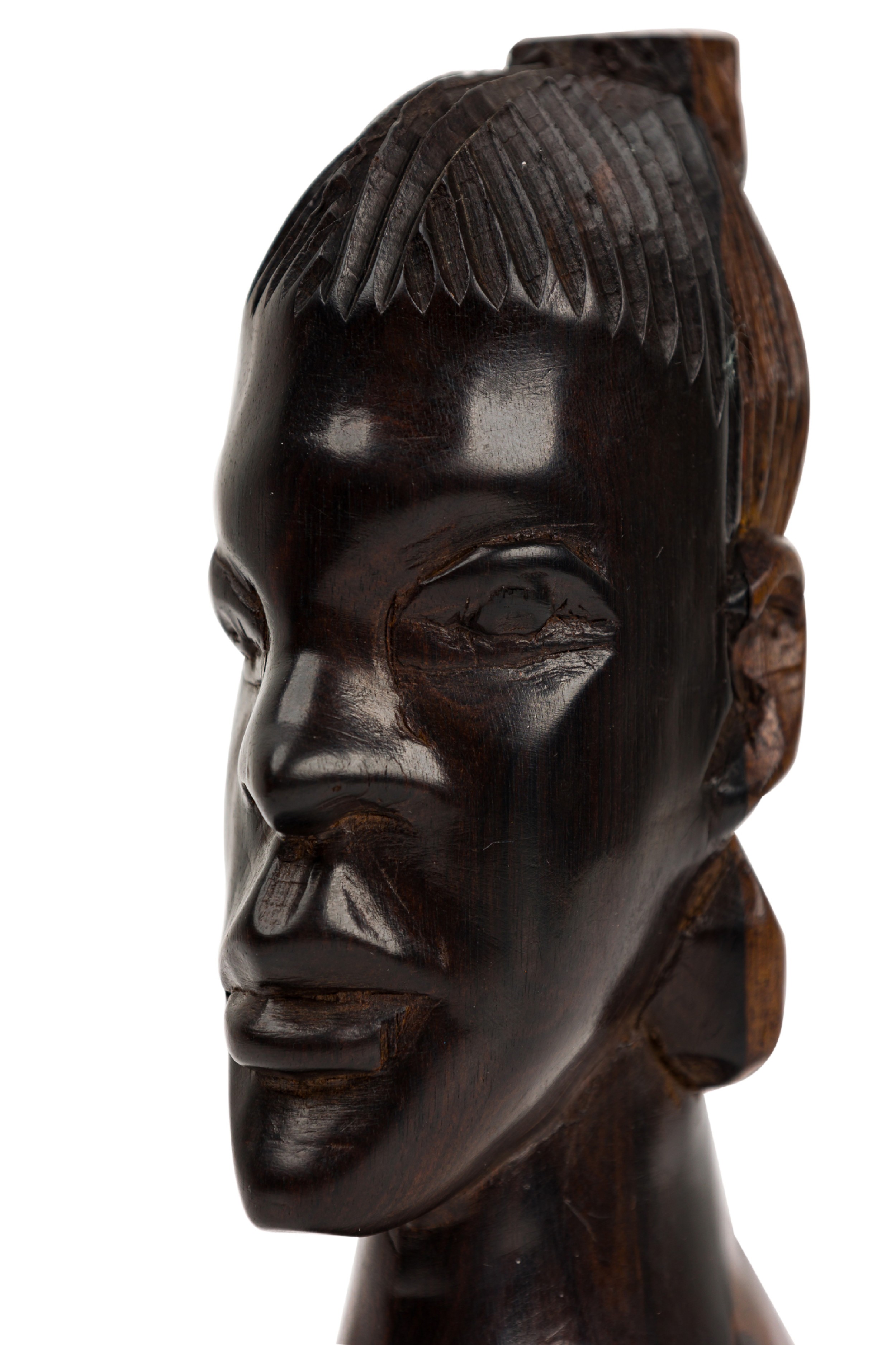 Vintage African ebony carved bust of a women from the neck up with two earrings and her hair braided