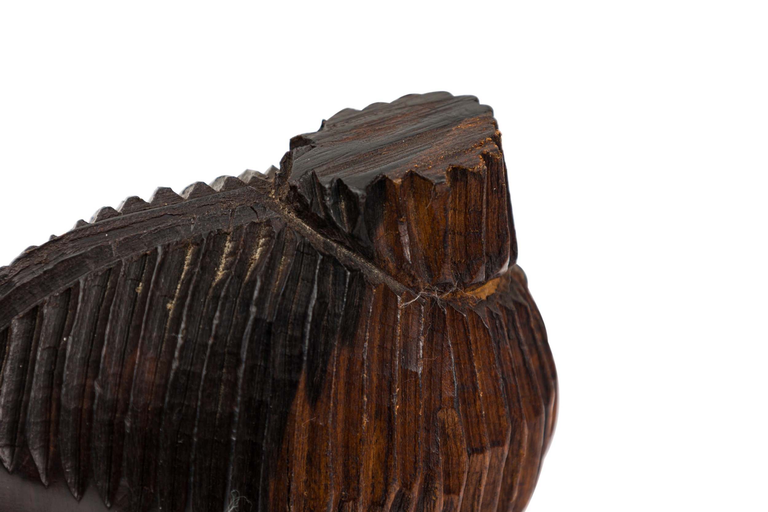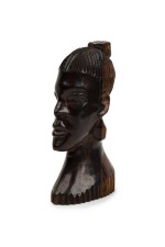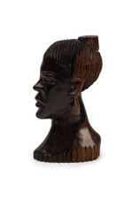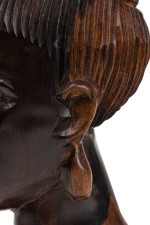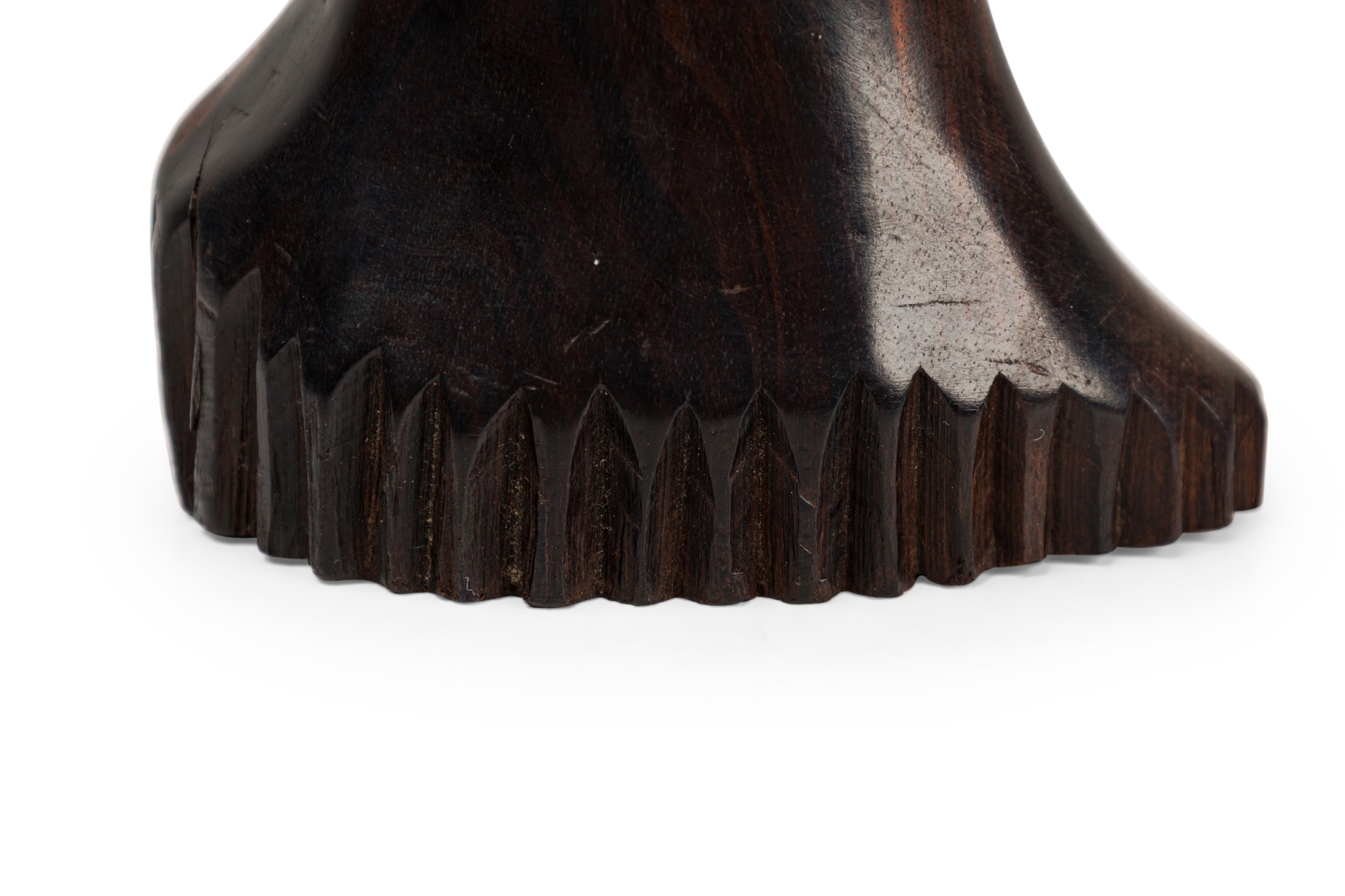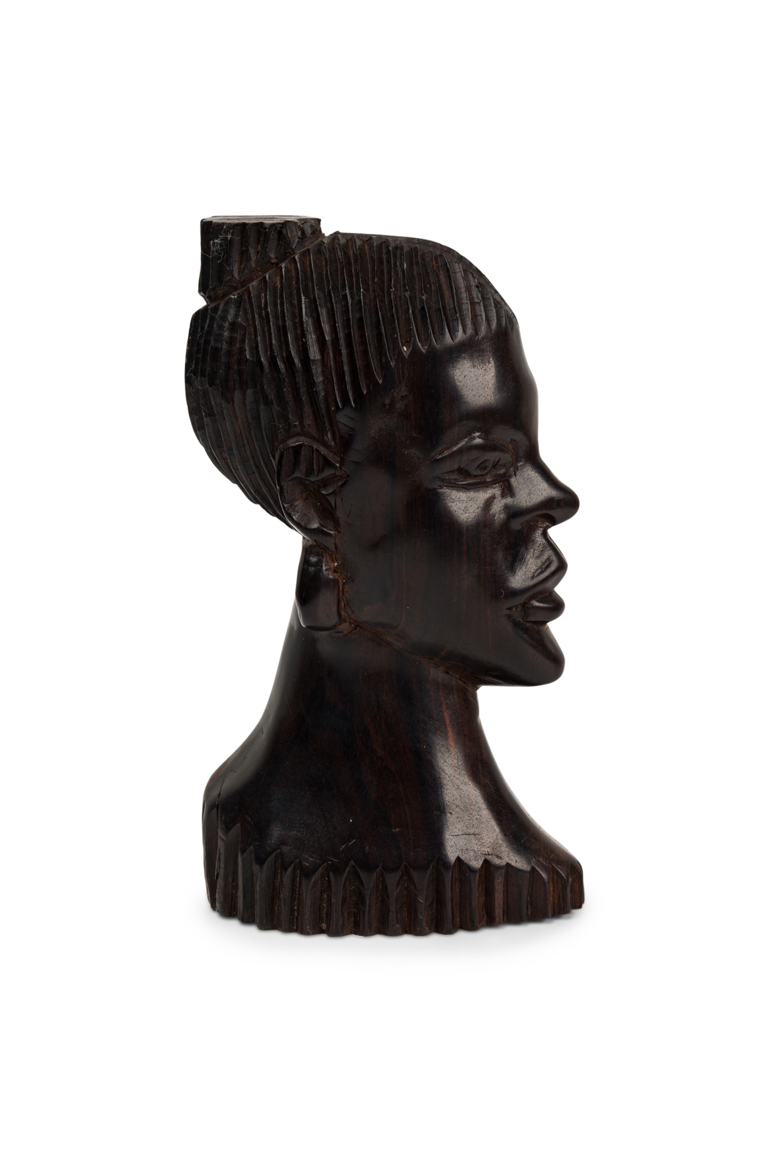 Vintage African ebony carved bust of a women from the neck up with two earrings and her hair braided