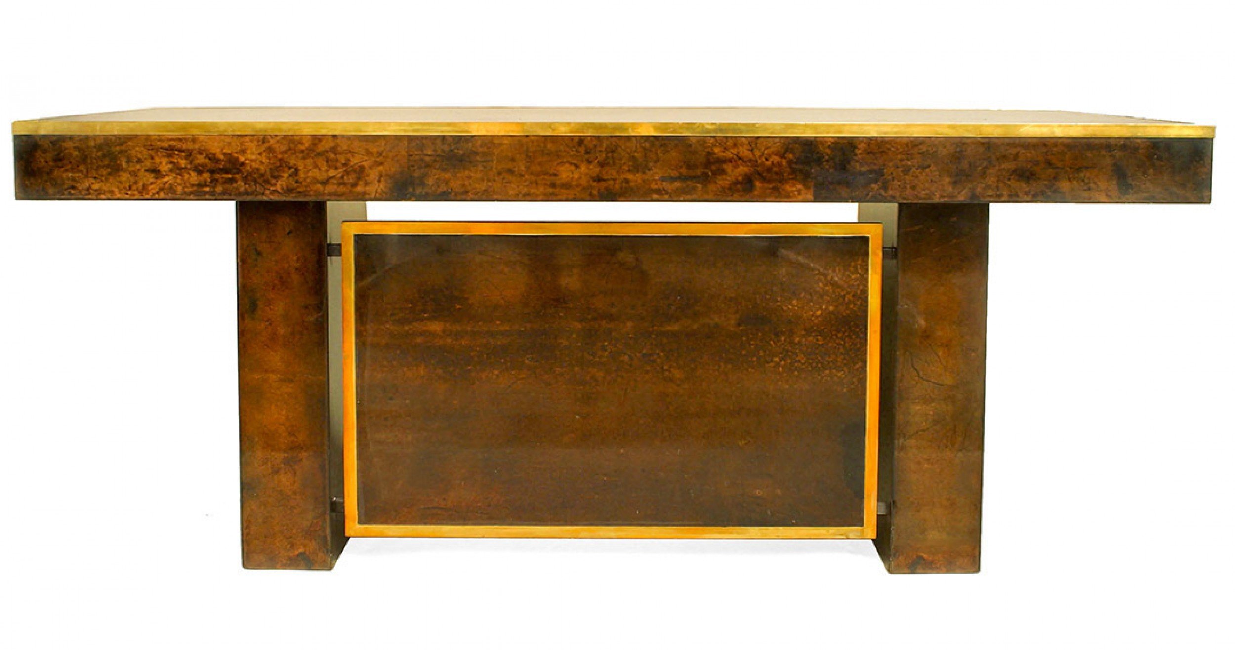 Aldo Tura Italian Brown Parchment Veneer Desk